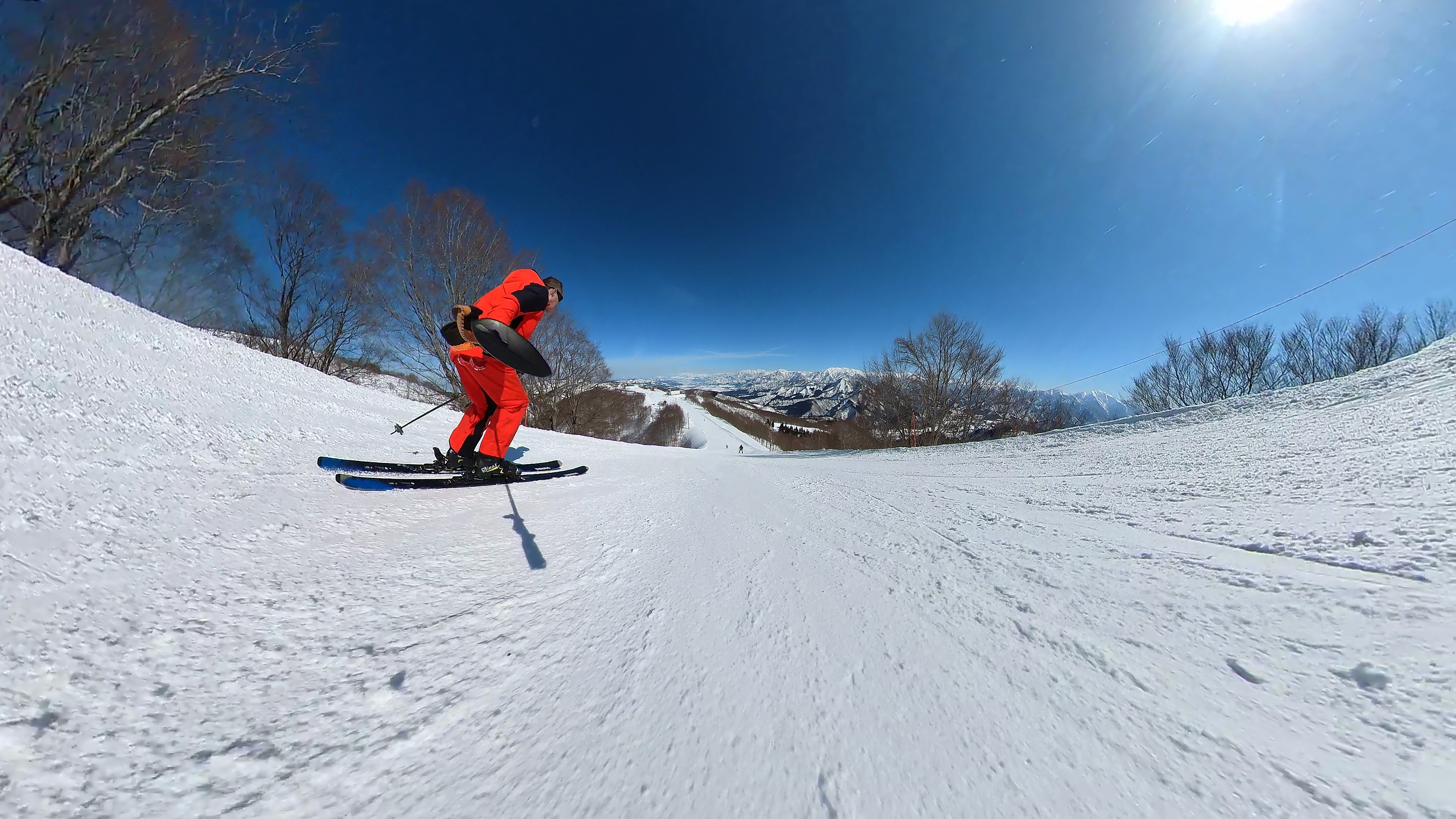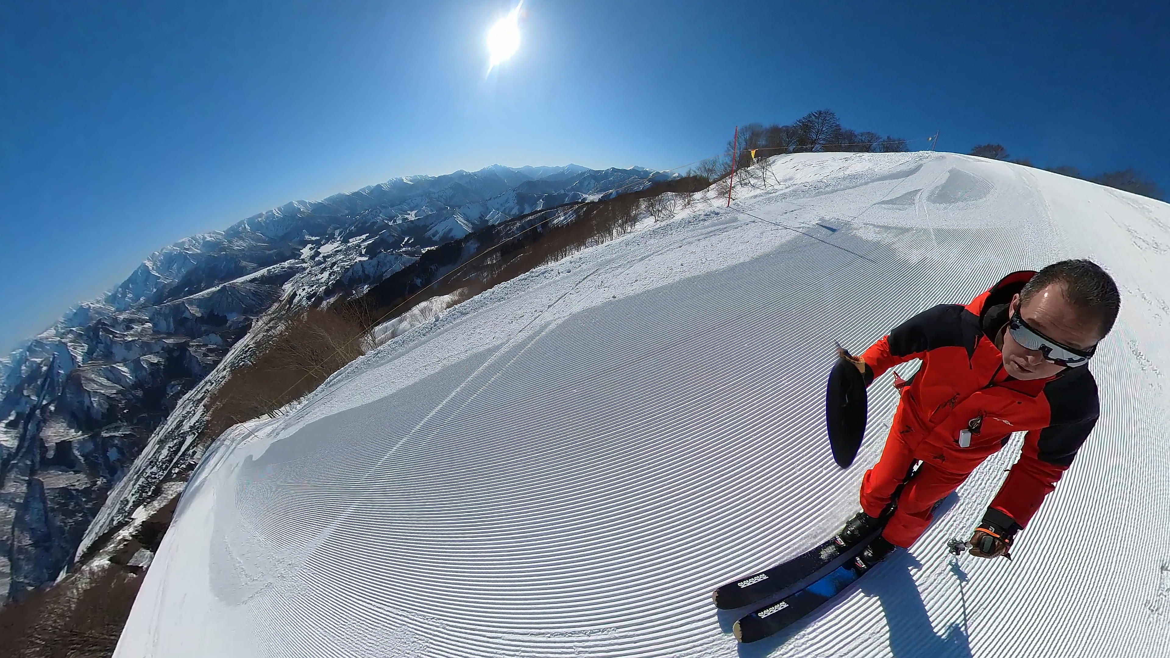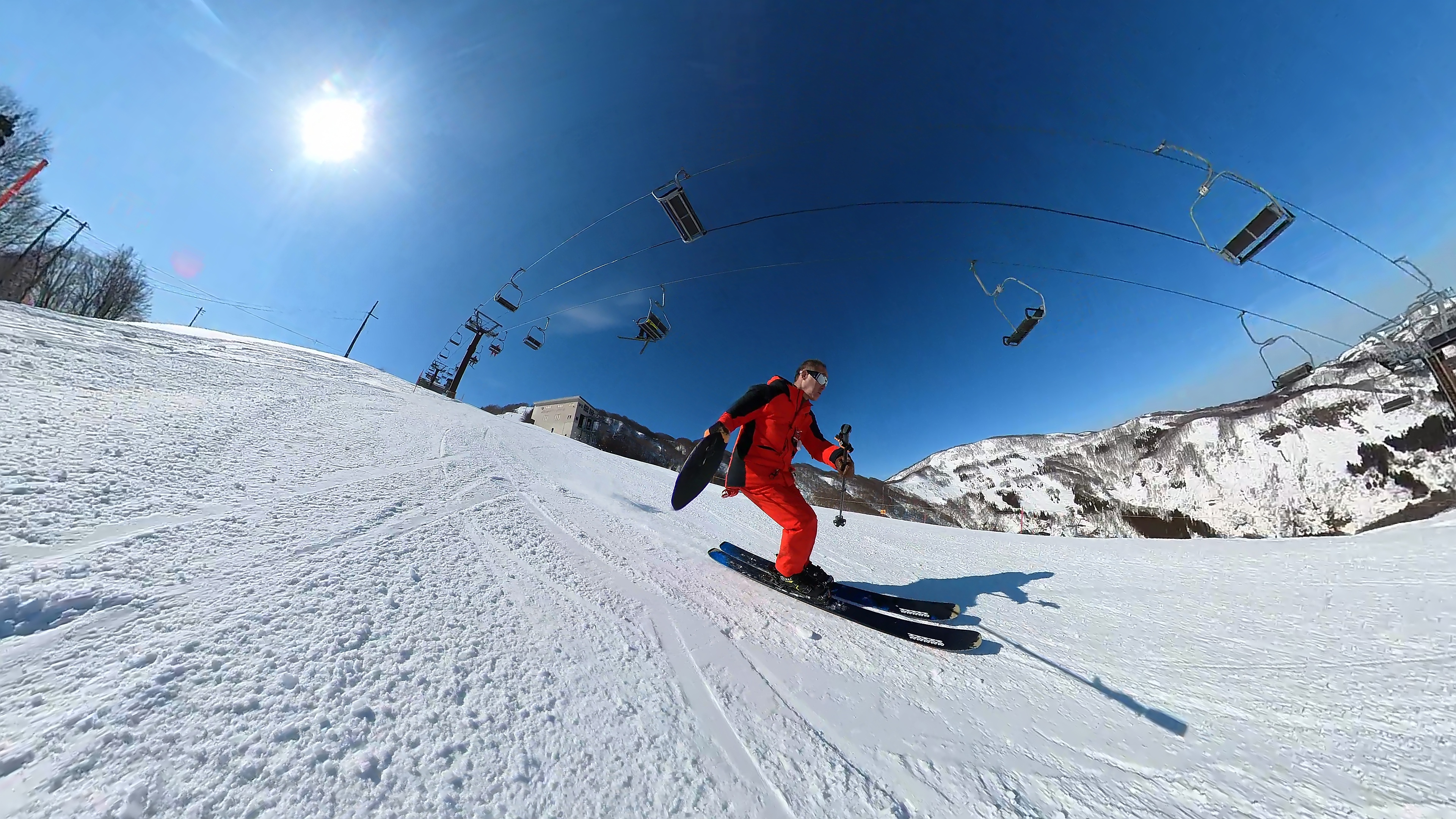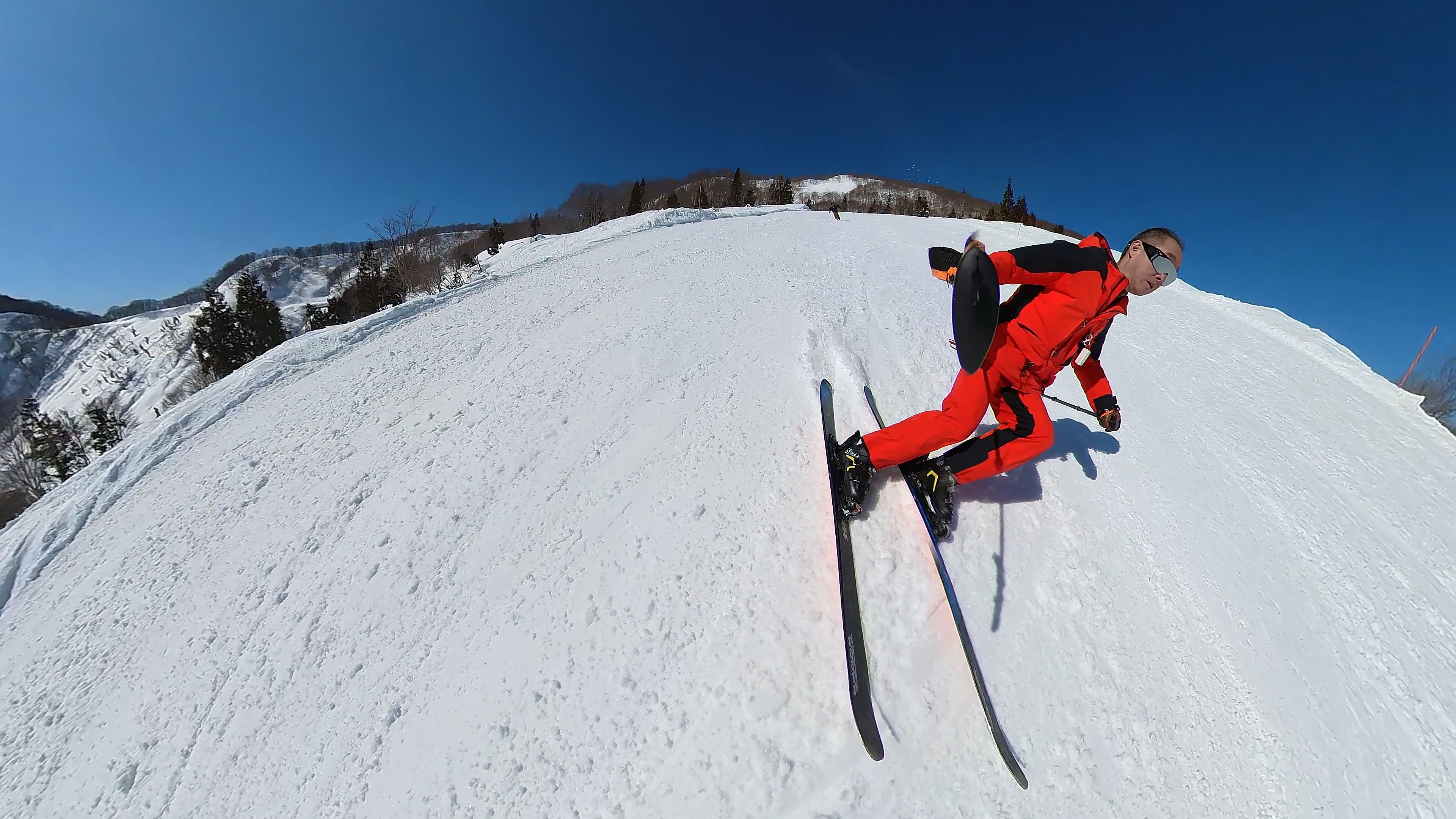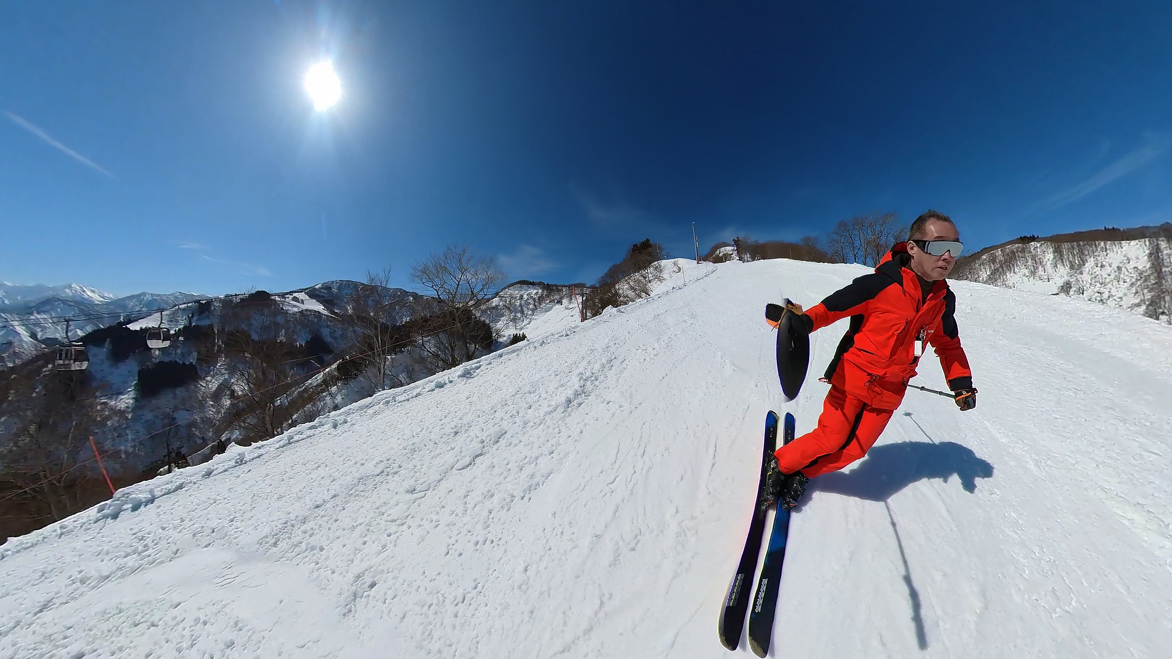 山頂からキスゲコース突っ切って高原エクスプレス。気温は5℃超え、でもまだバーンは硬いです。