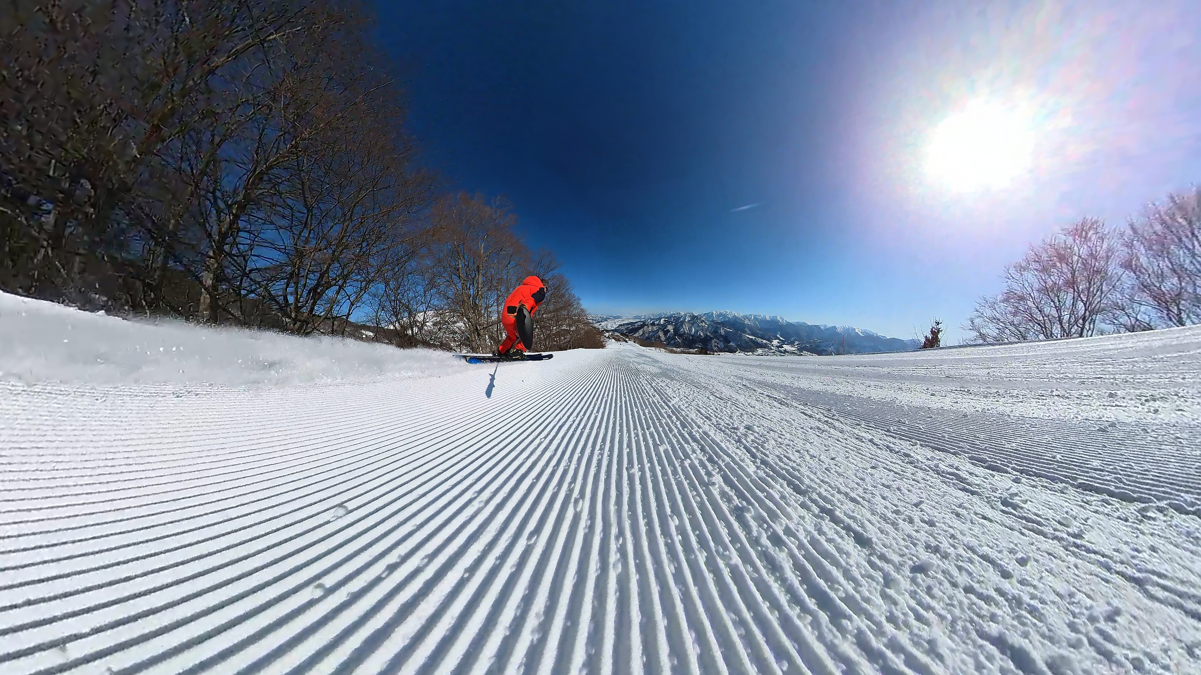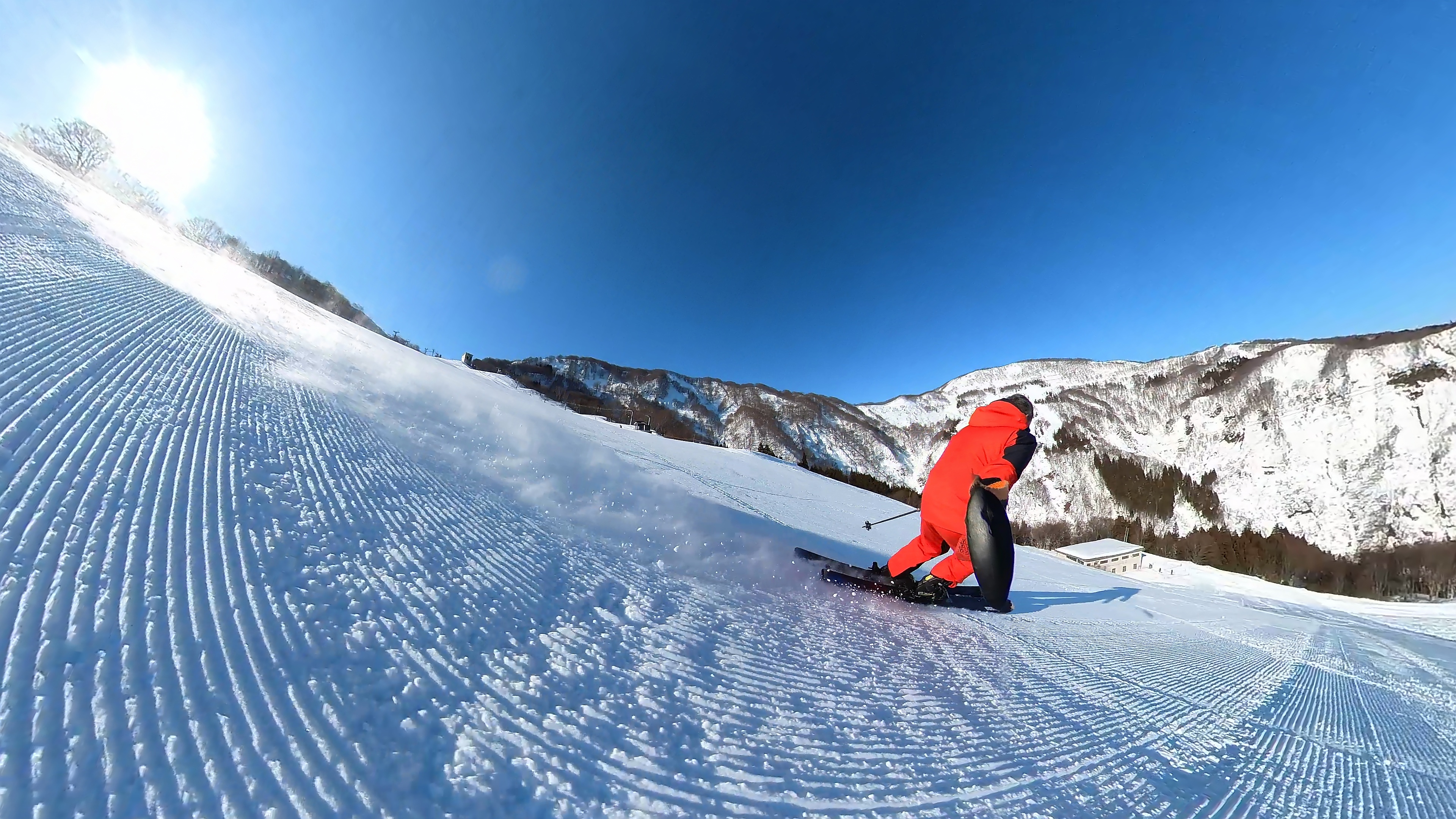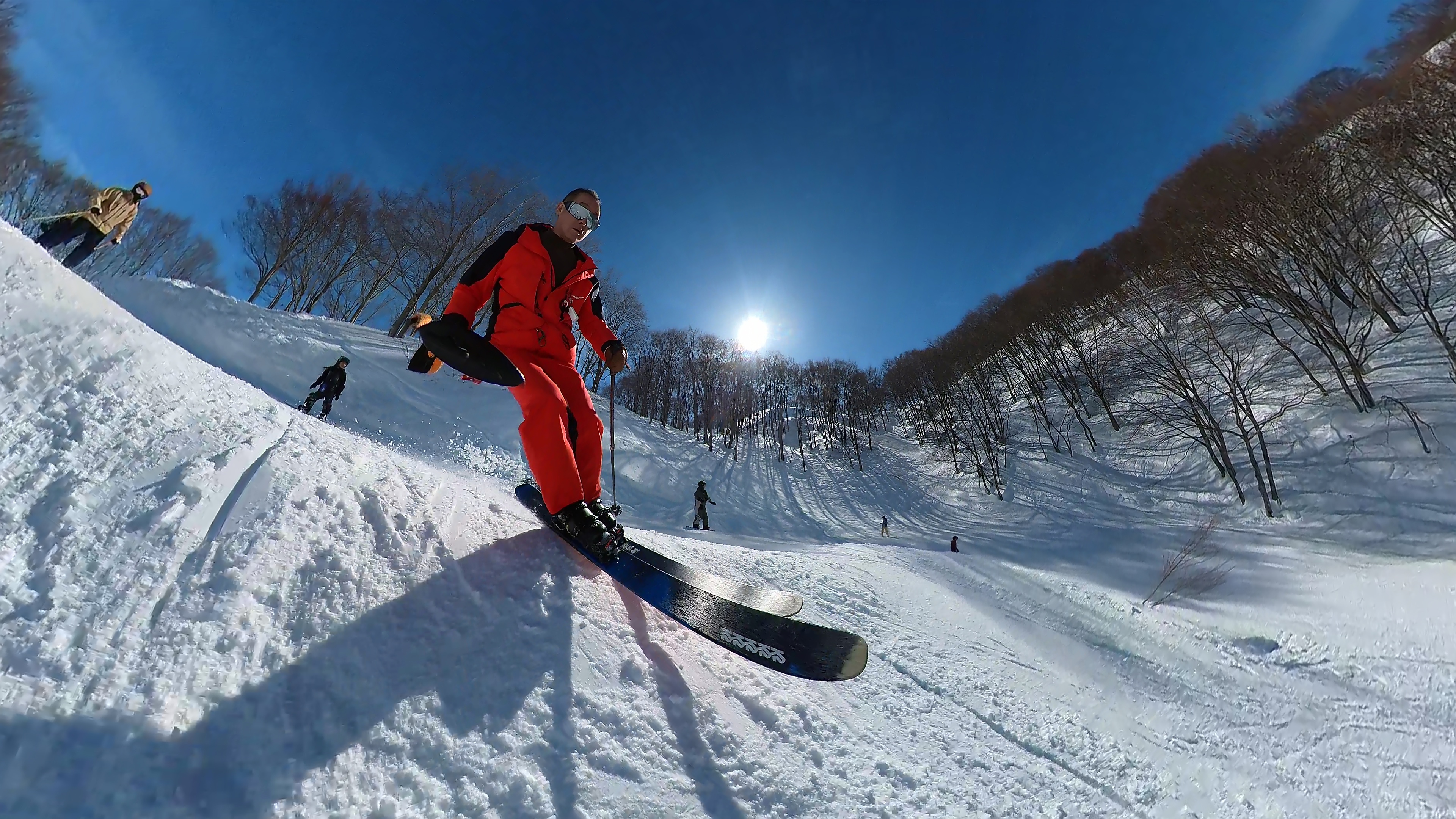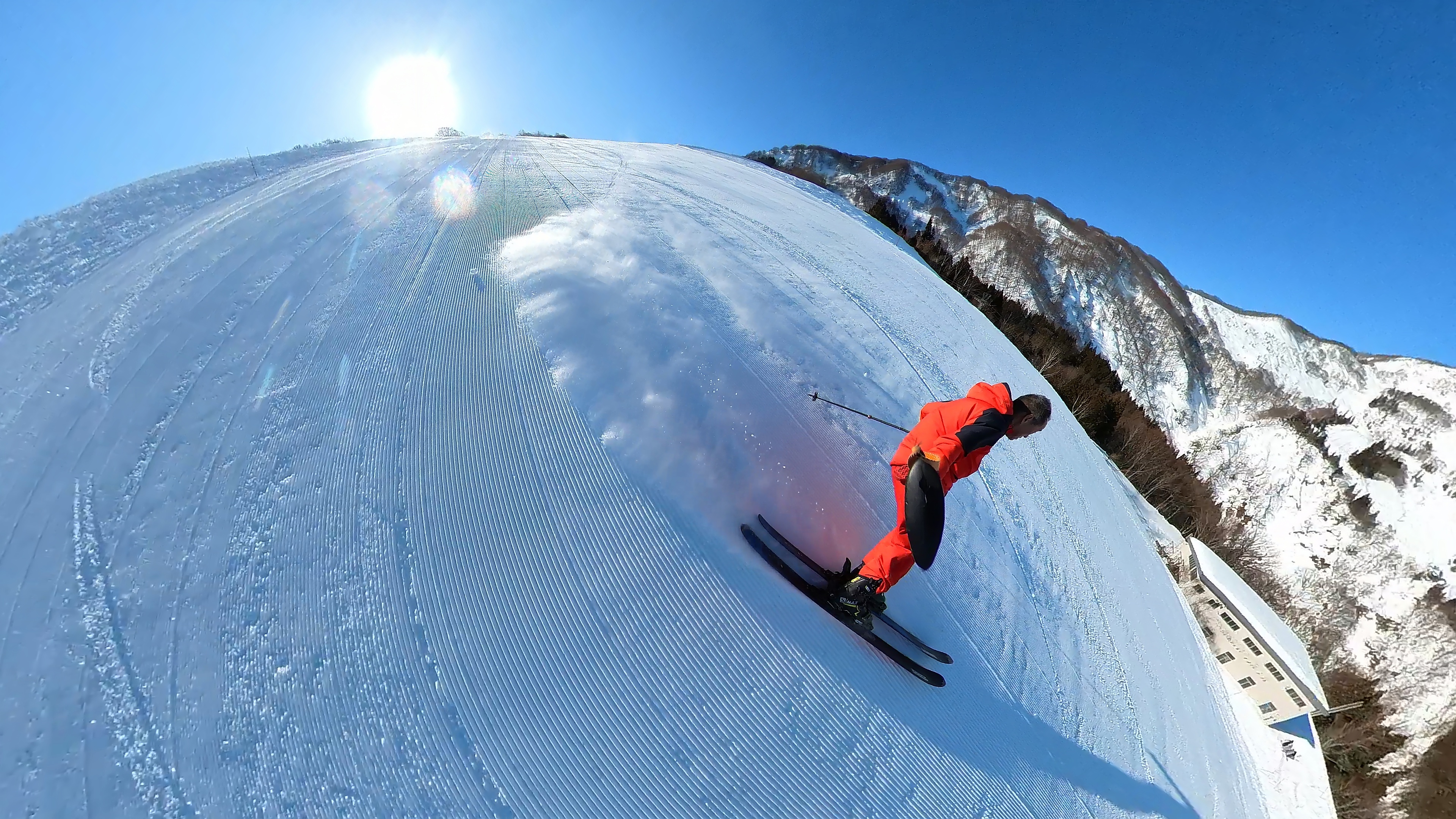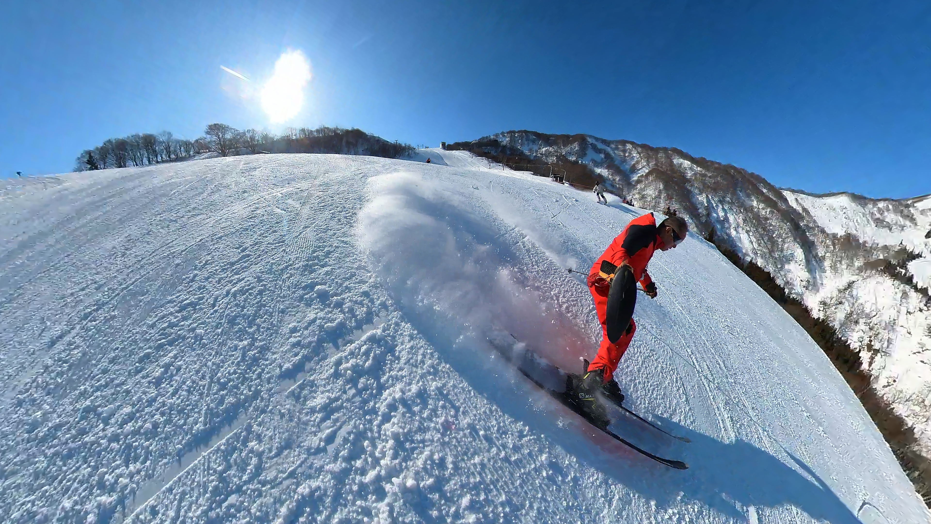 山頂からキスゲコース突っ切って高原エクスプレス。気温は5℃超え、でもまだバーンは硬いです。