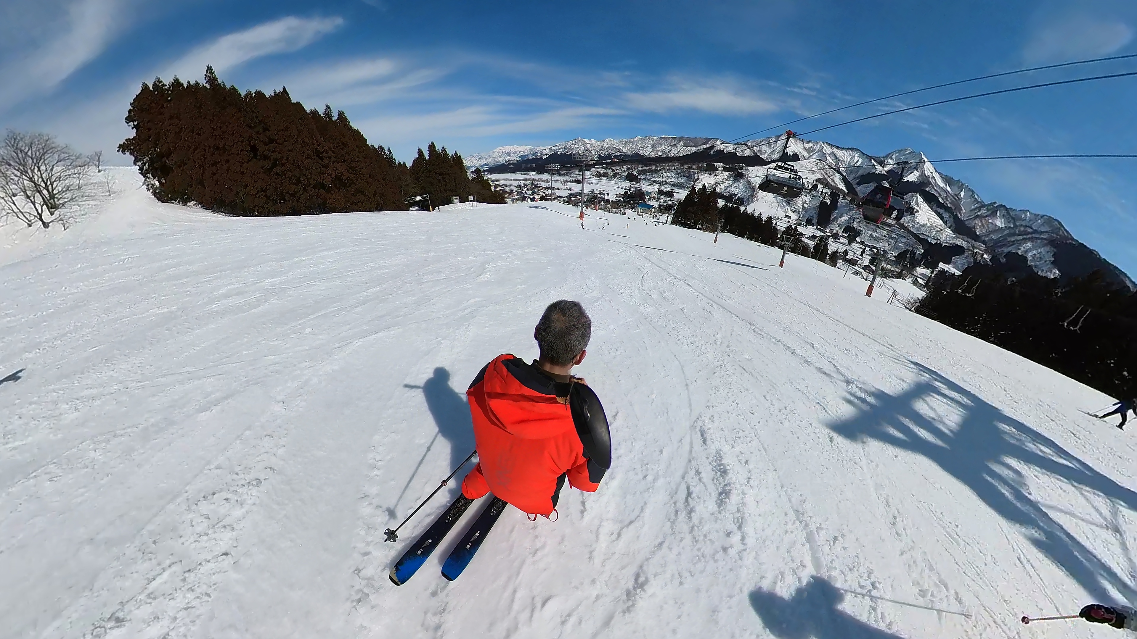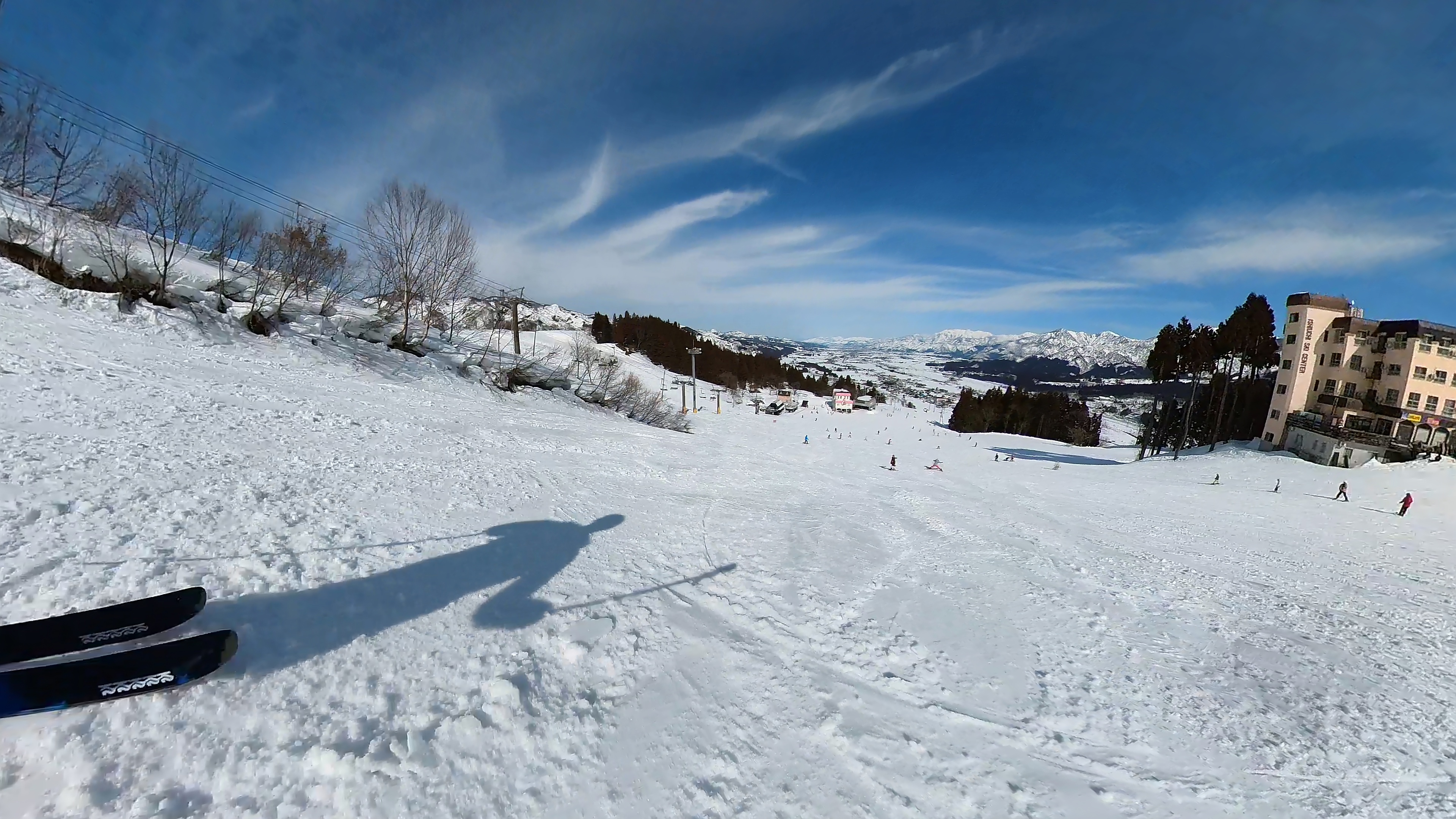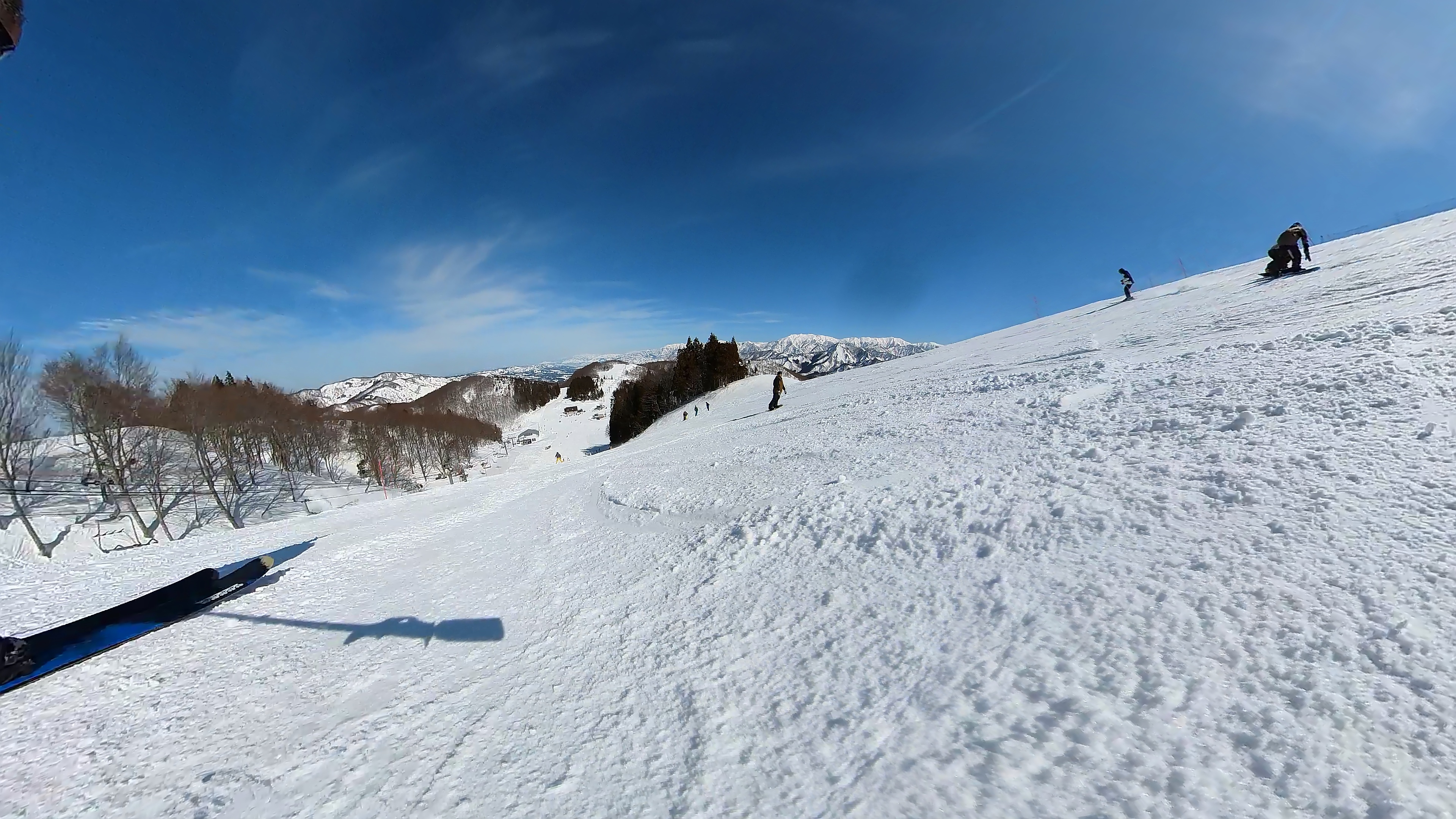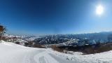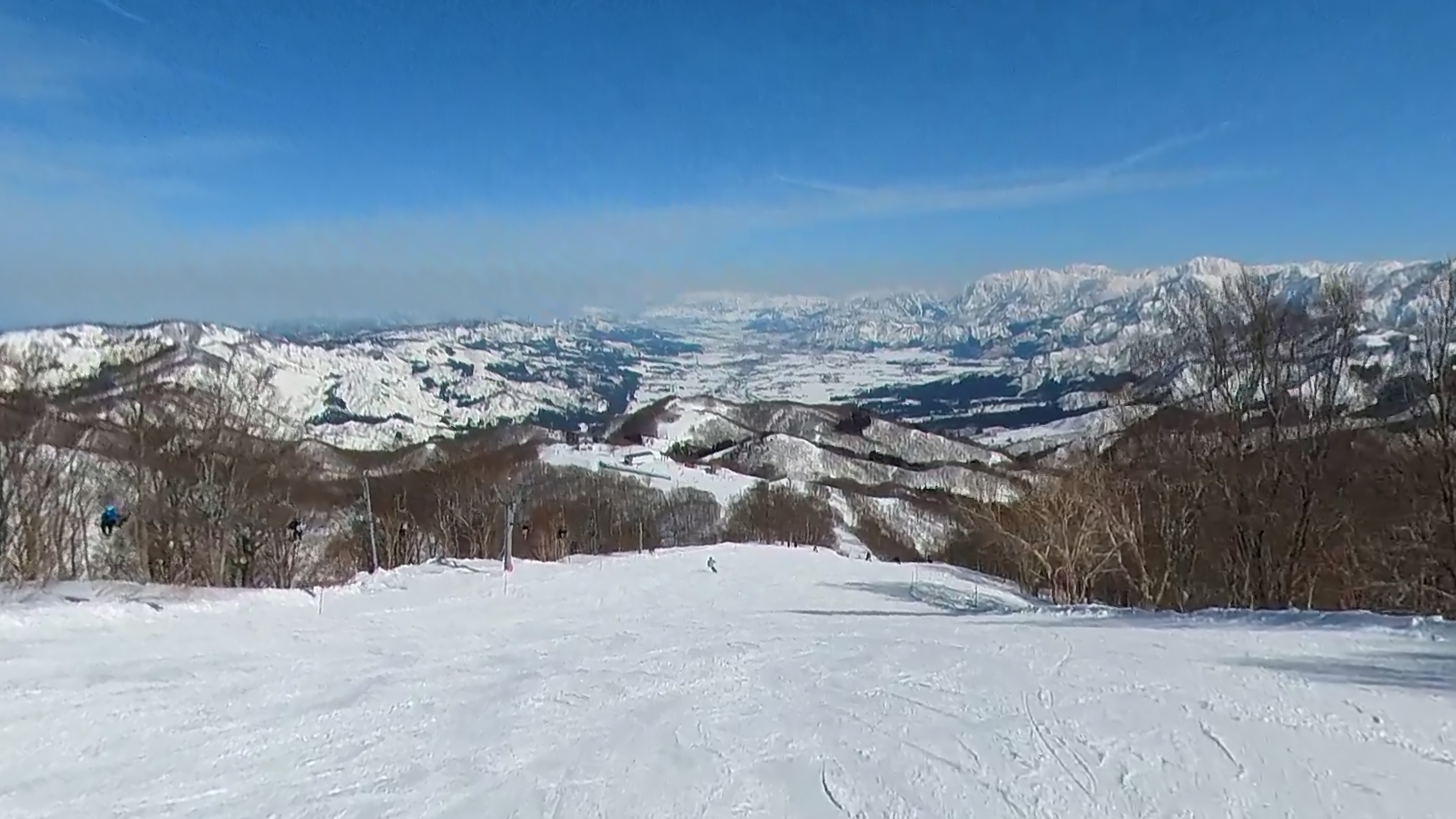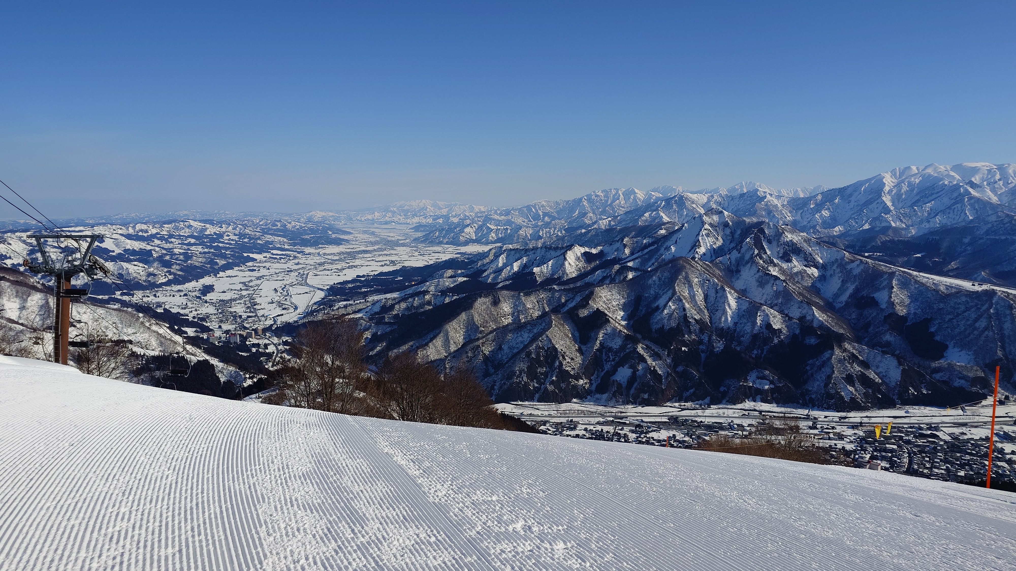 ガーラをもう一度登って、北エリアから石打丸山スキー場へ。下山コース3本目は石打丸山自体です。南魚沼盆地を見下ろして滑り降ります。
