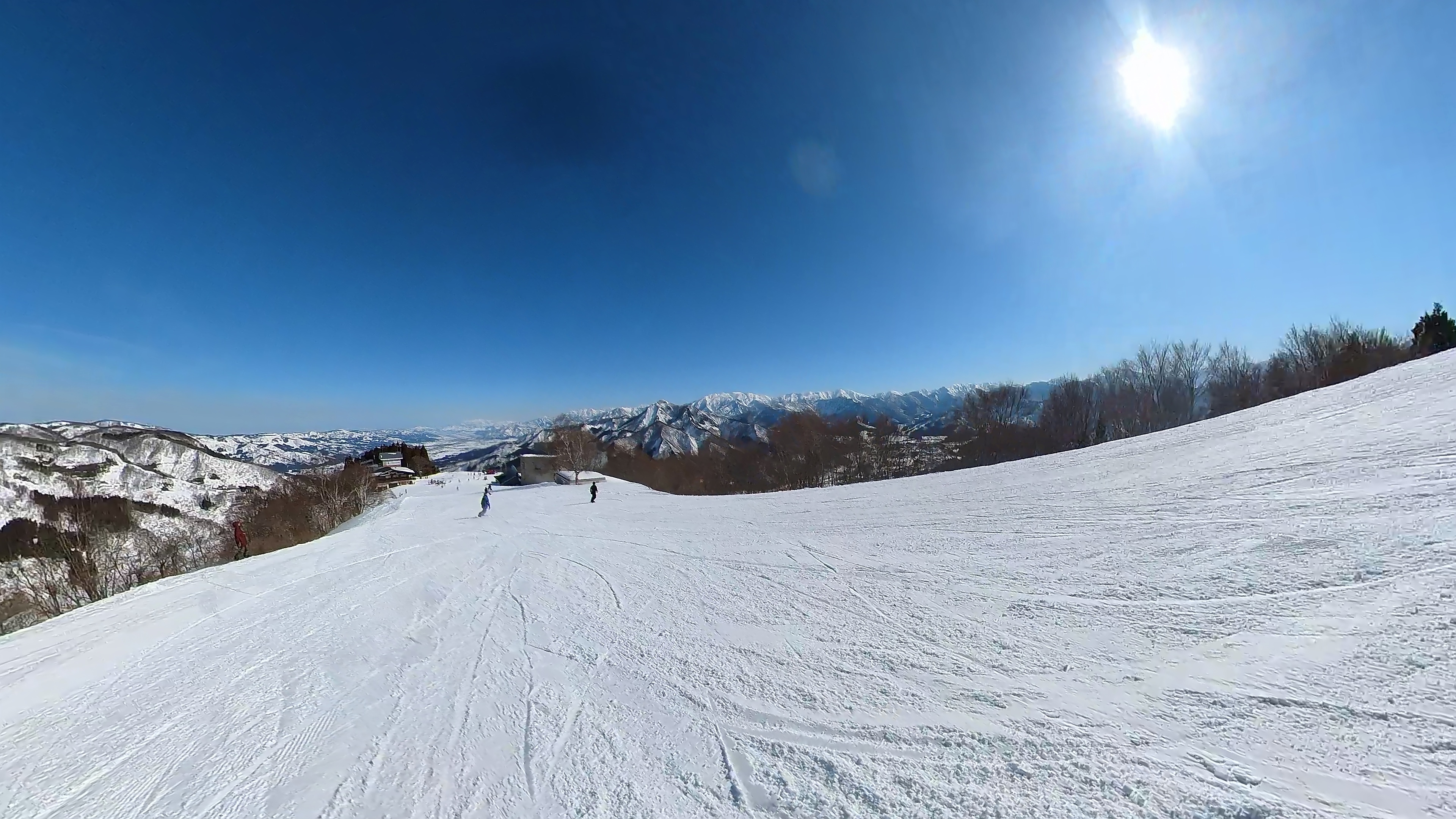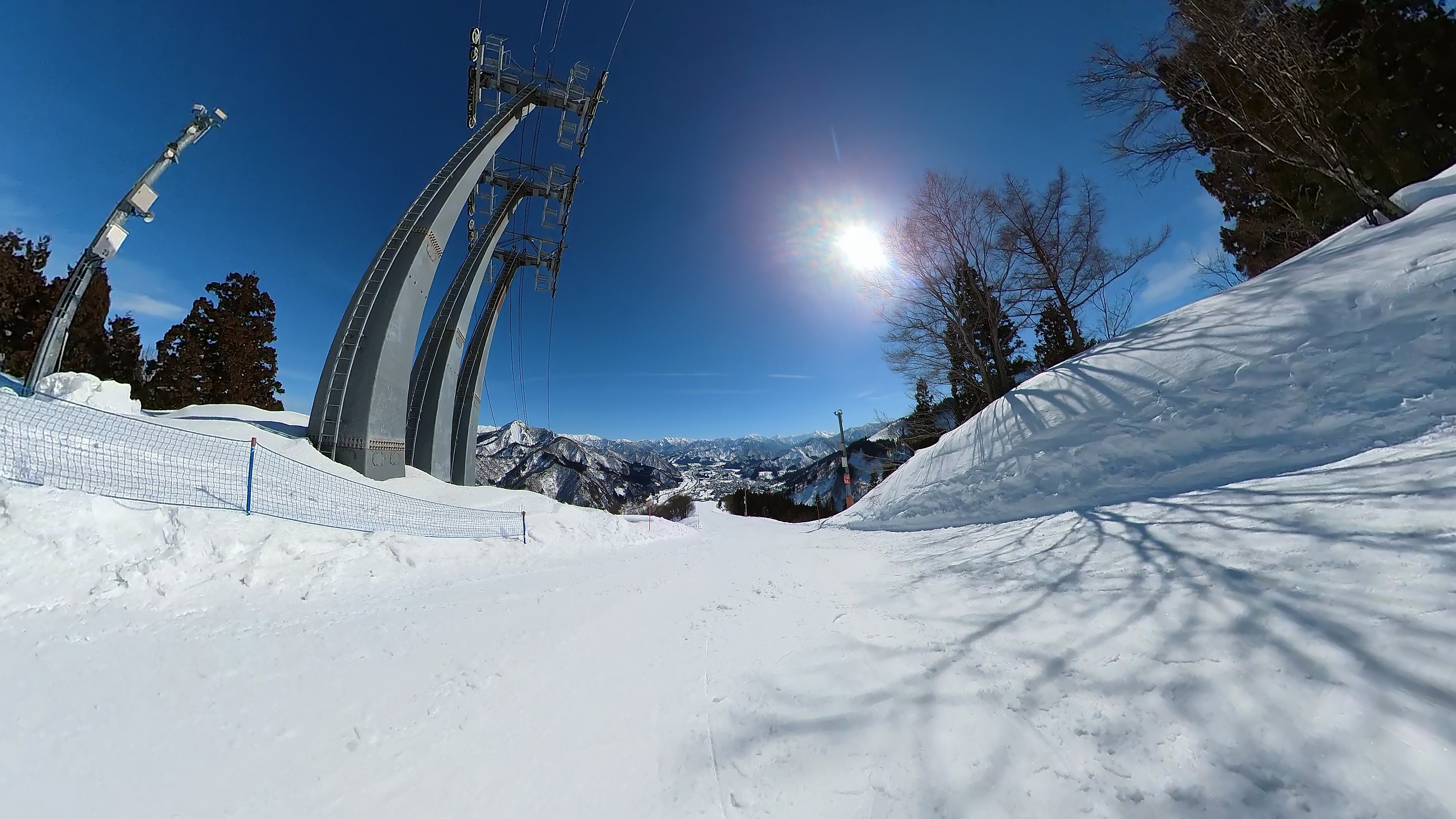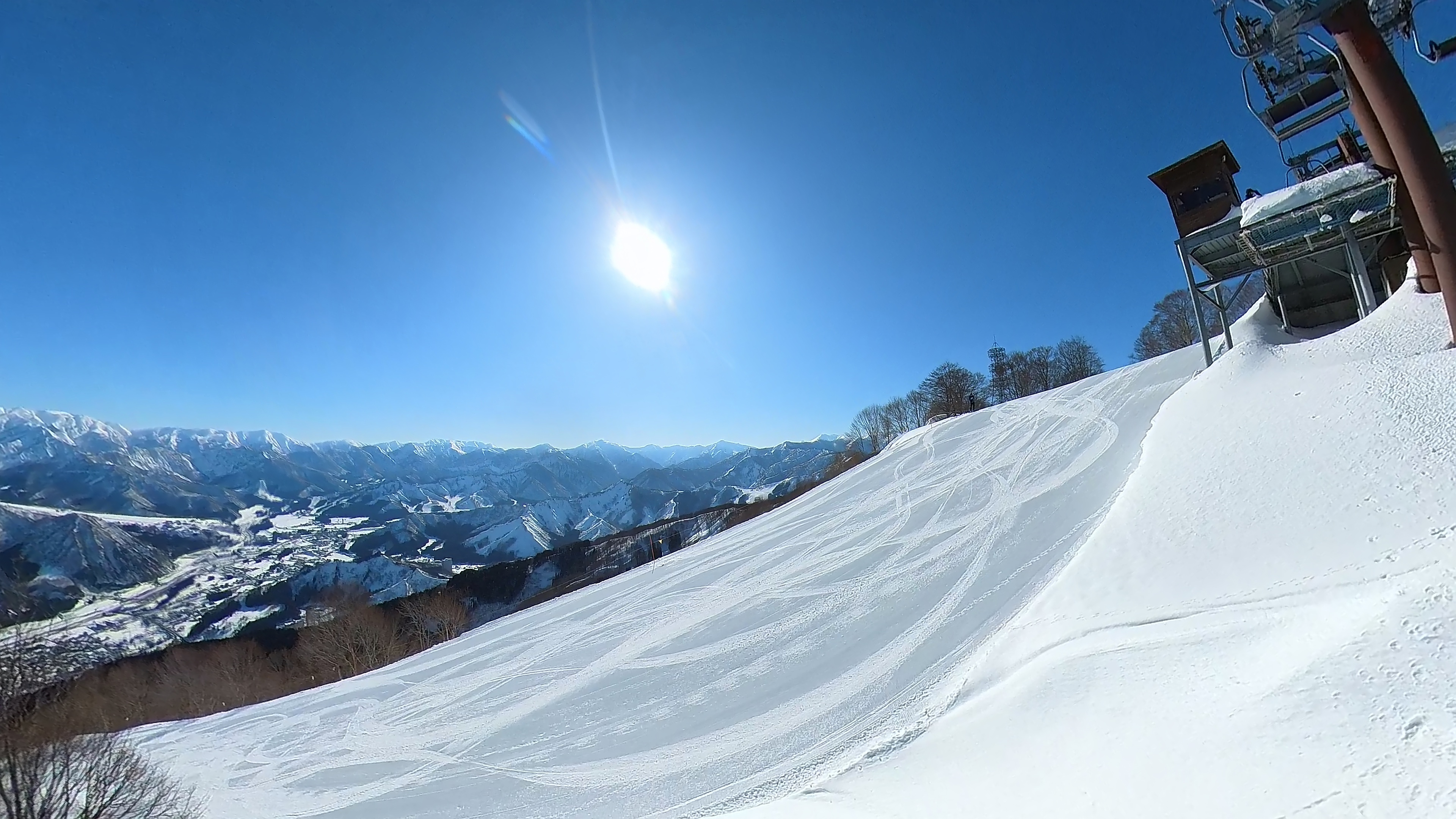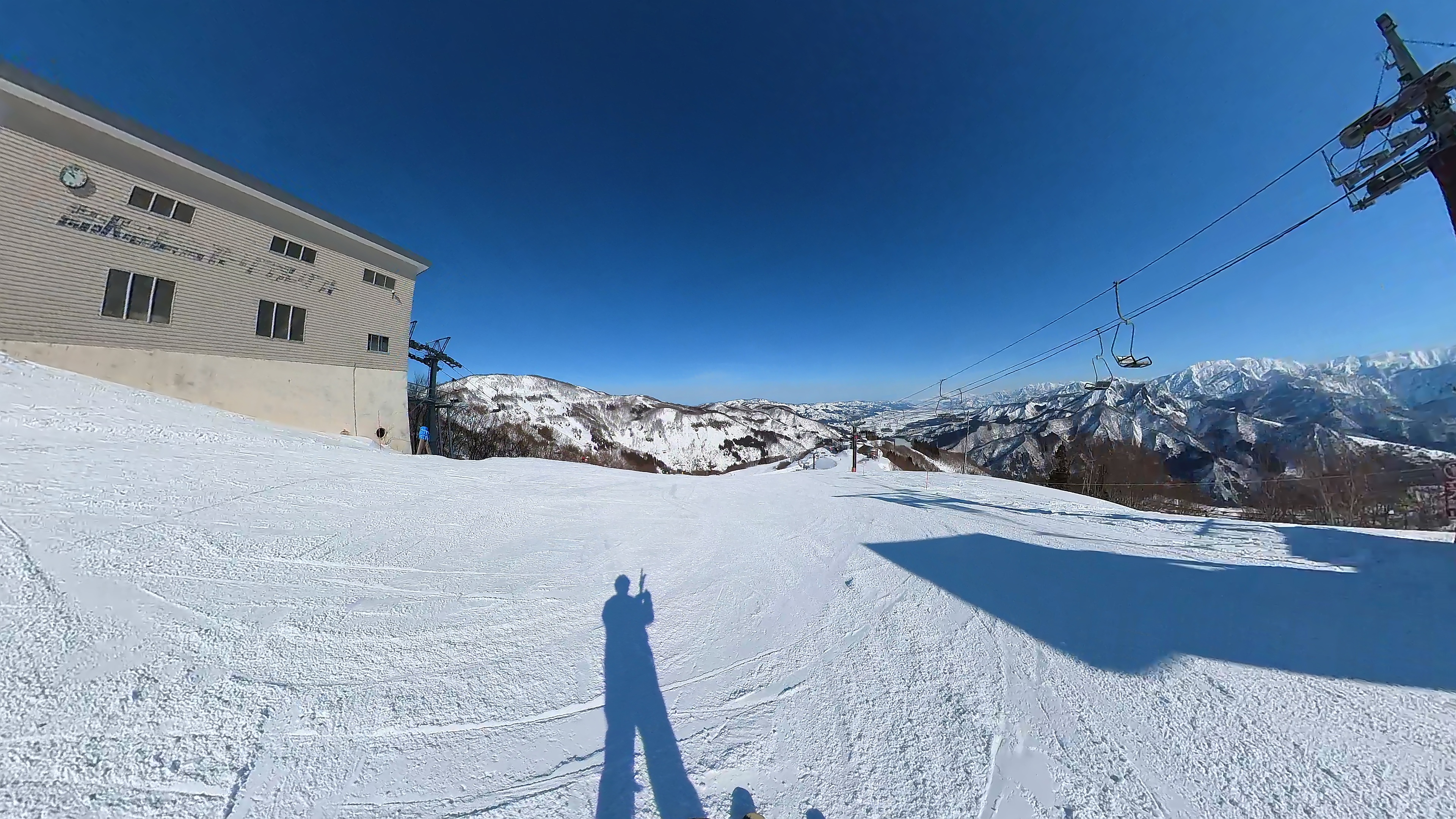 ガーラをもう一度登って、北エリアから石打丸山スキー場へ。下山コース3本目は石打丸山自体です。南魚沼盆地を見下ろして滑り降ります。