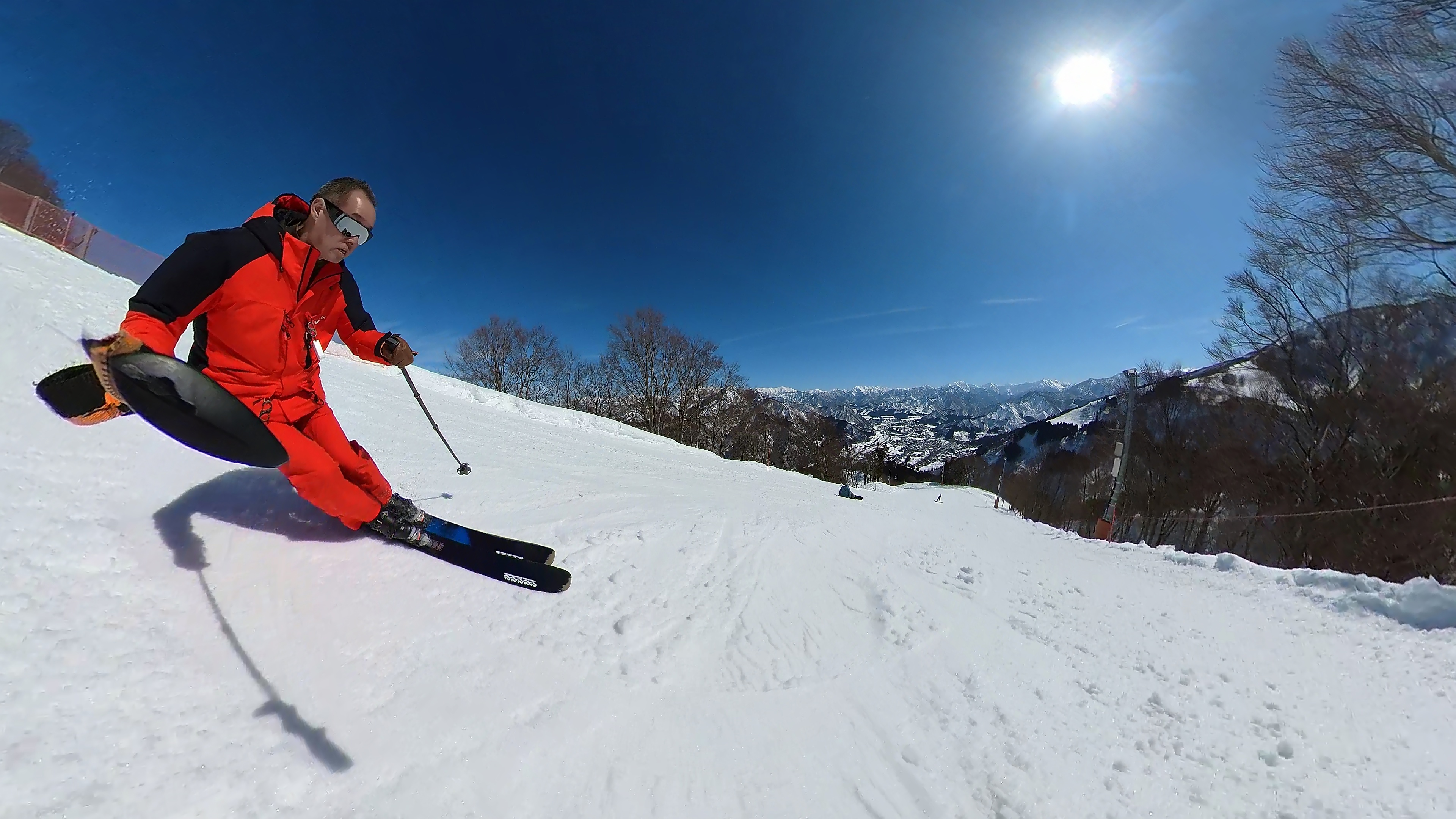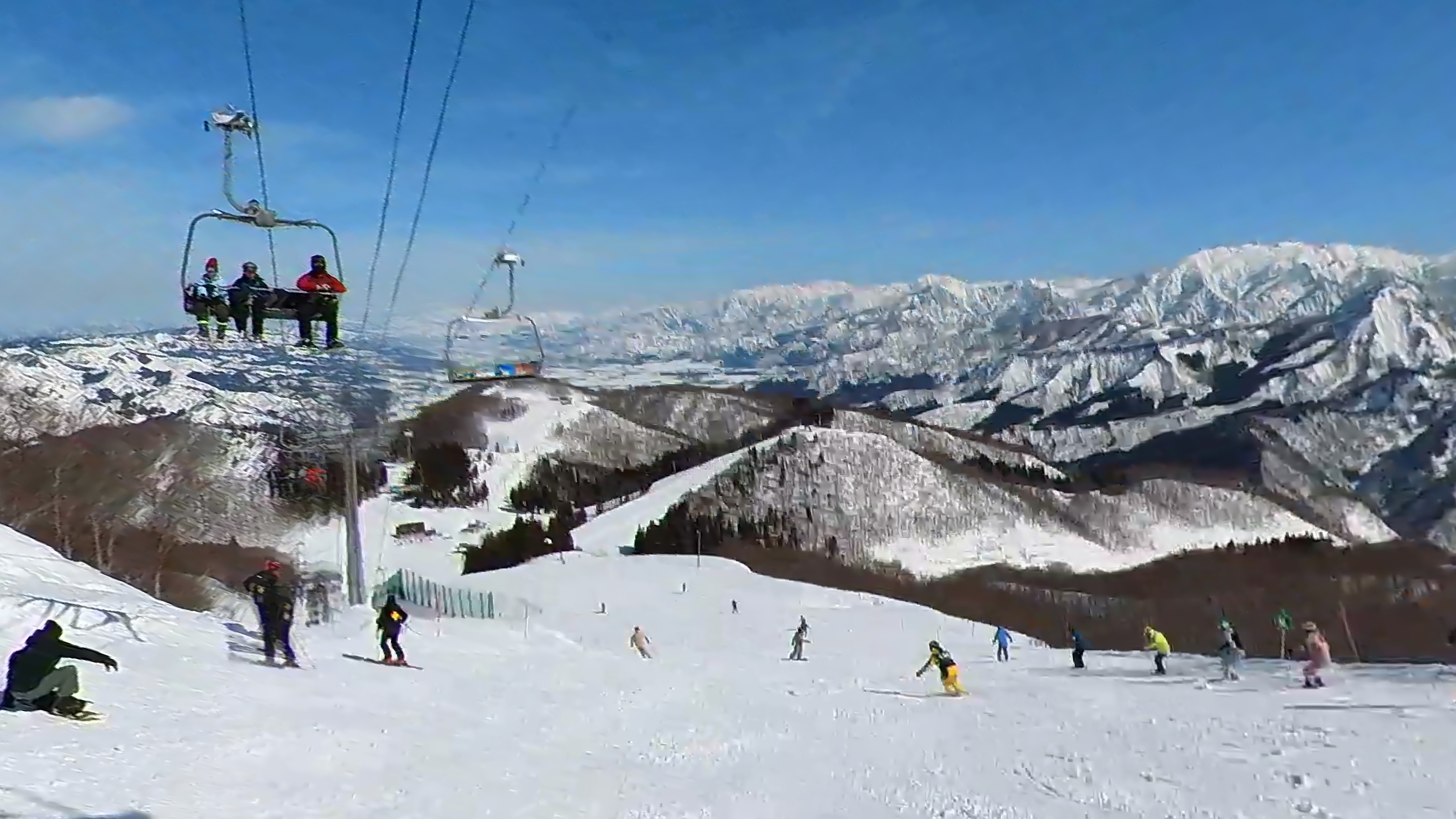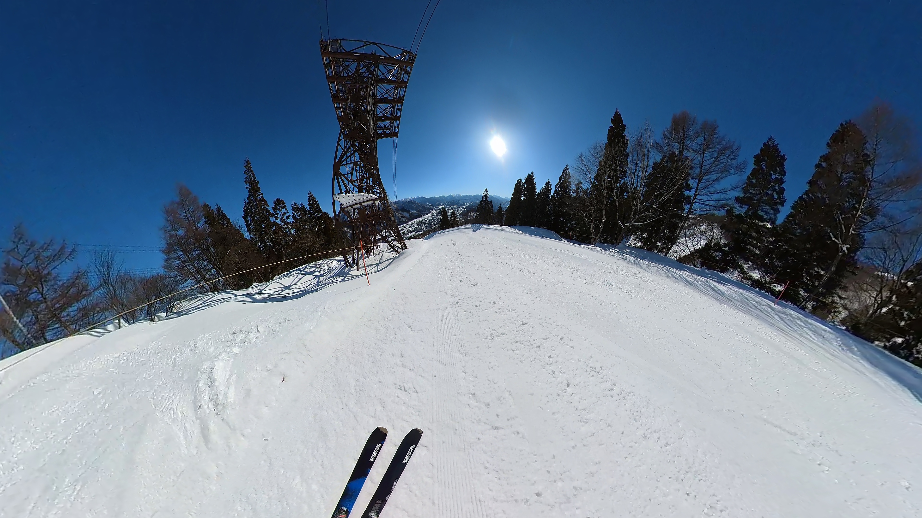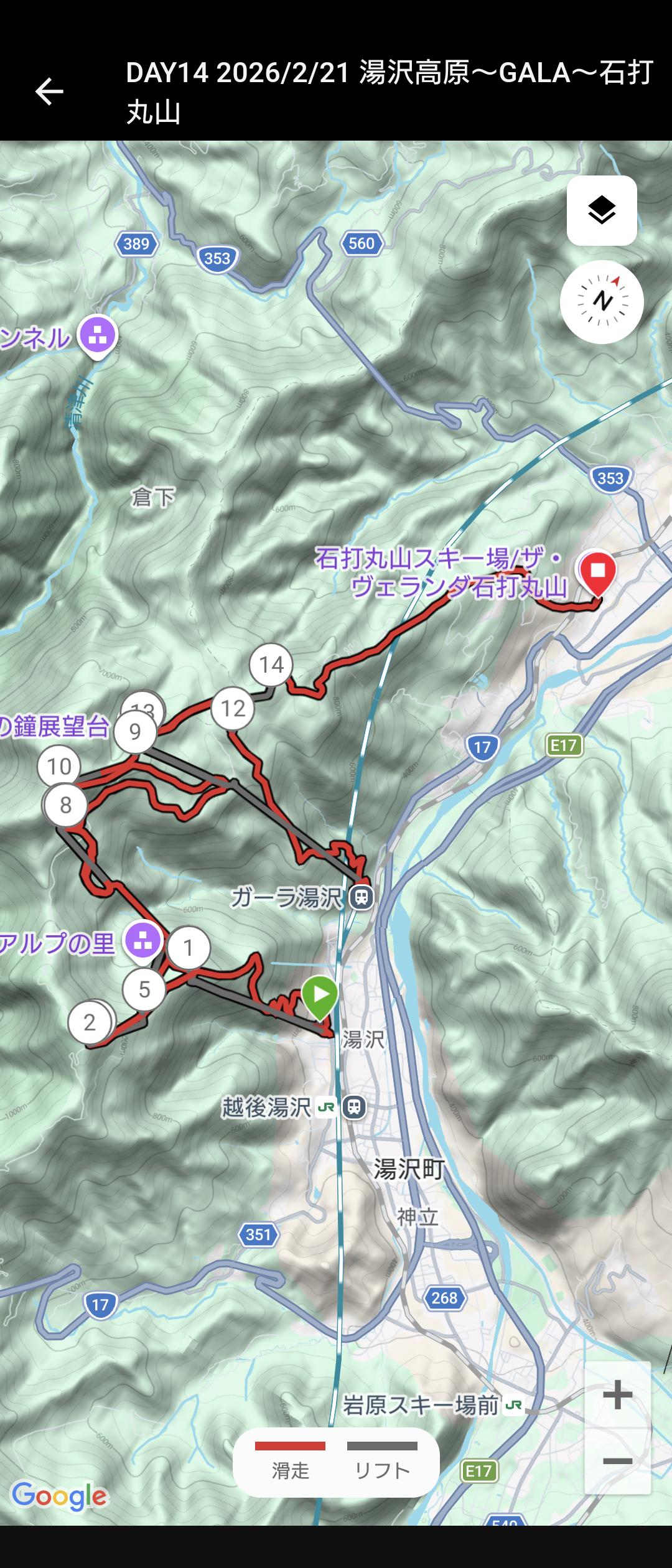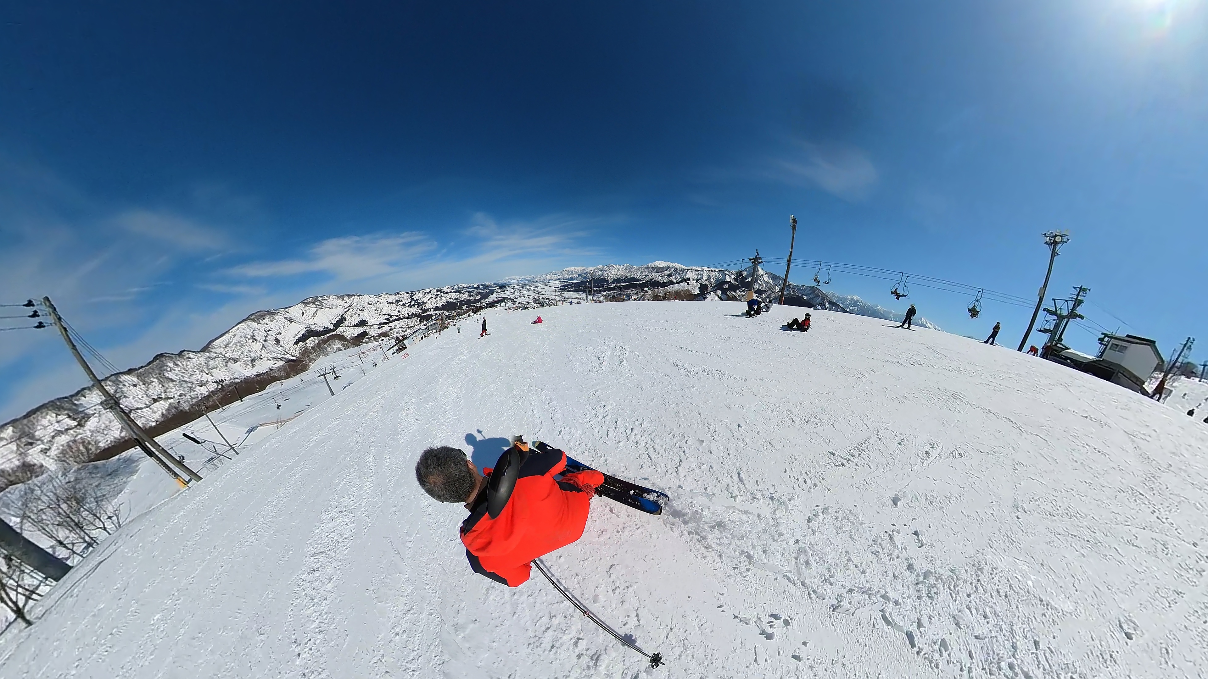 ガーラをもう一度登って、北エリアから石打丸山スキー場へ。下山コース3本目は石打丸山自体です。南魚沼盆地を見下ろして滑り降ります。