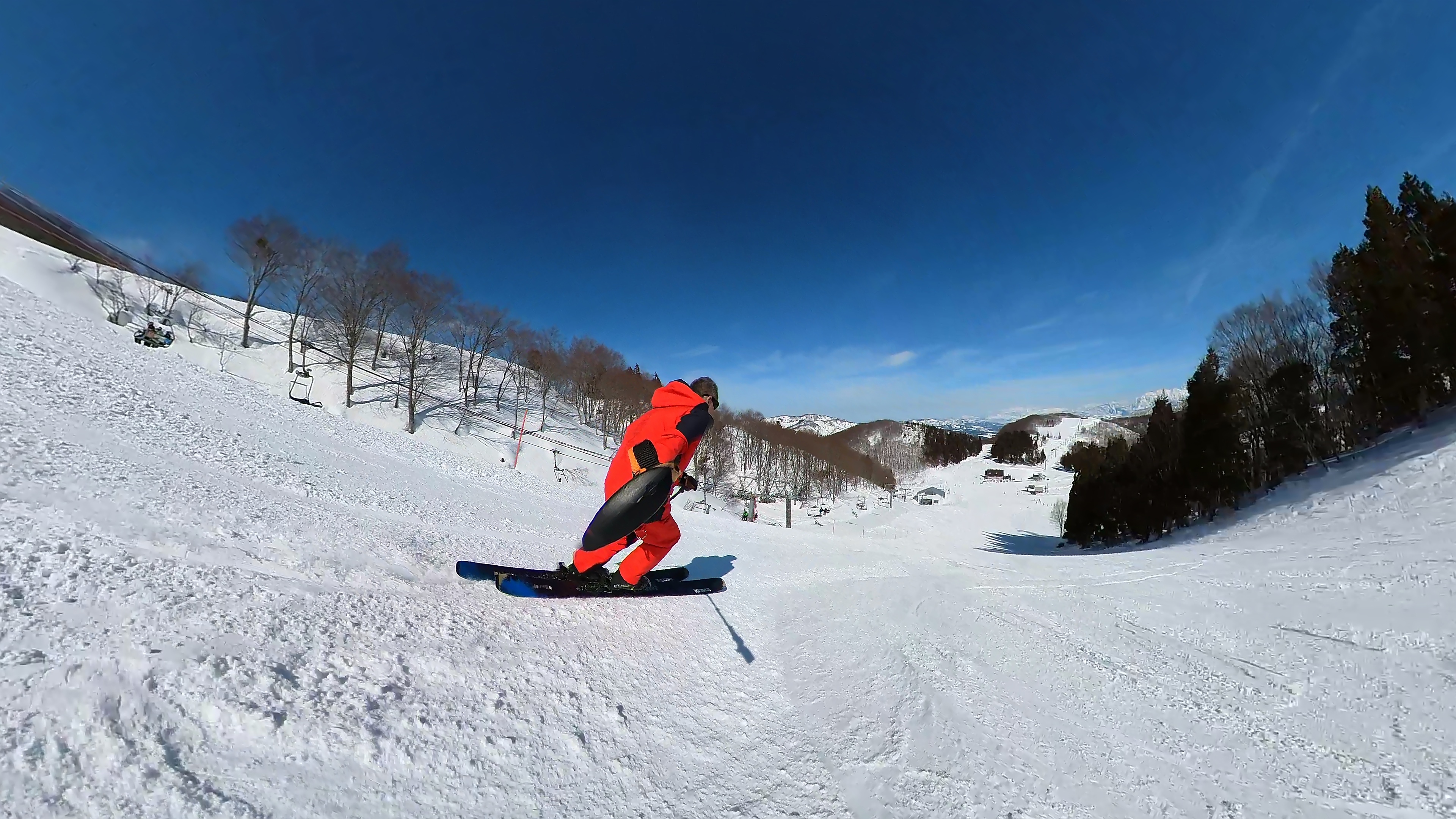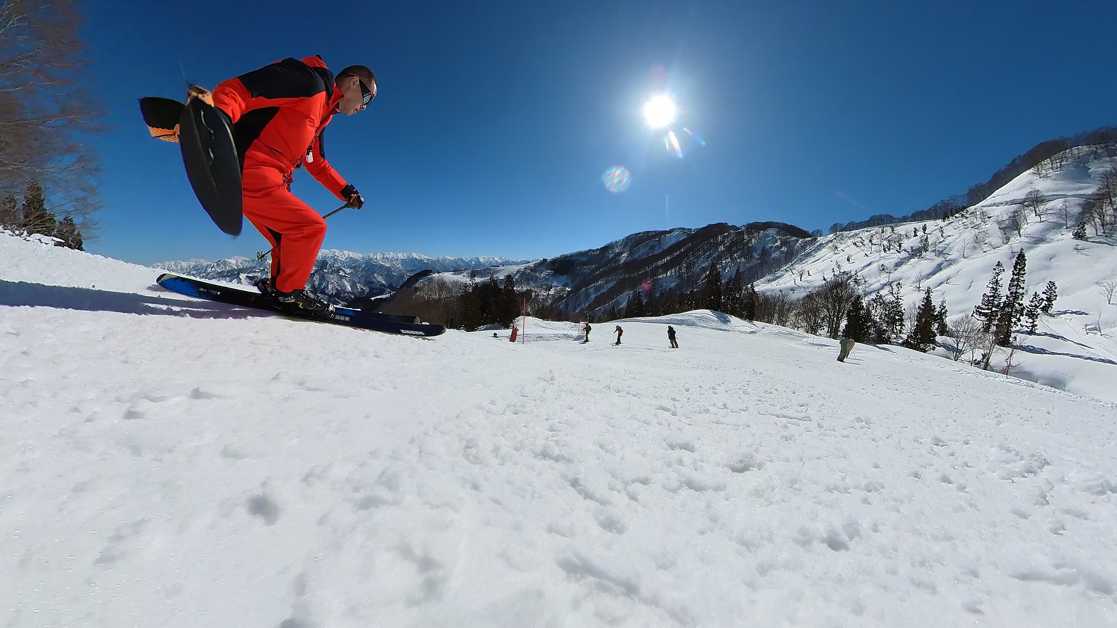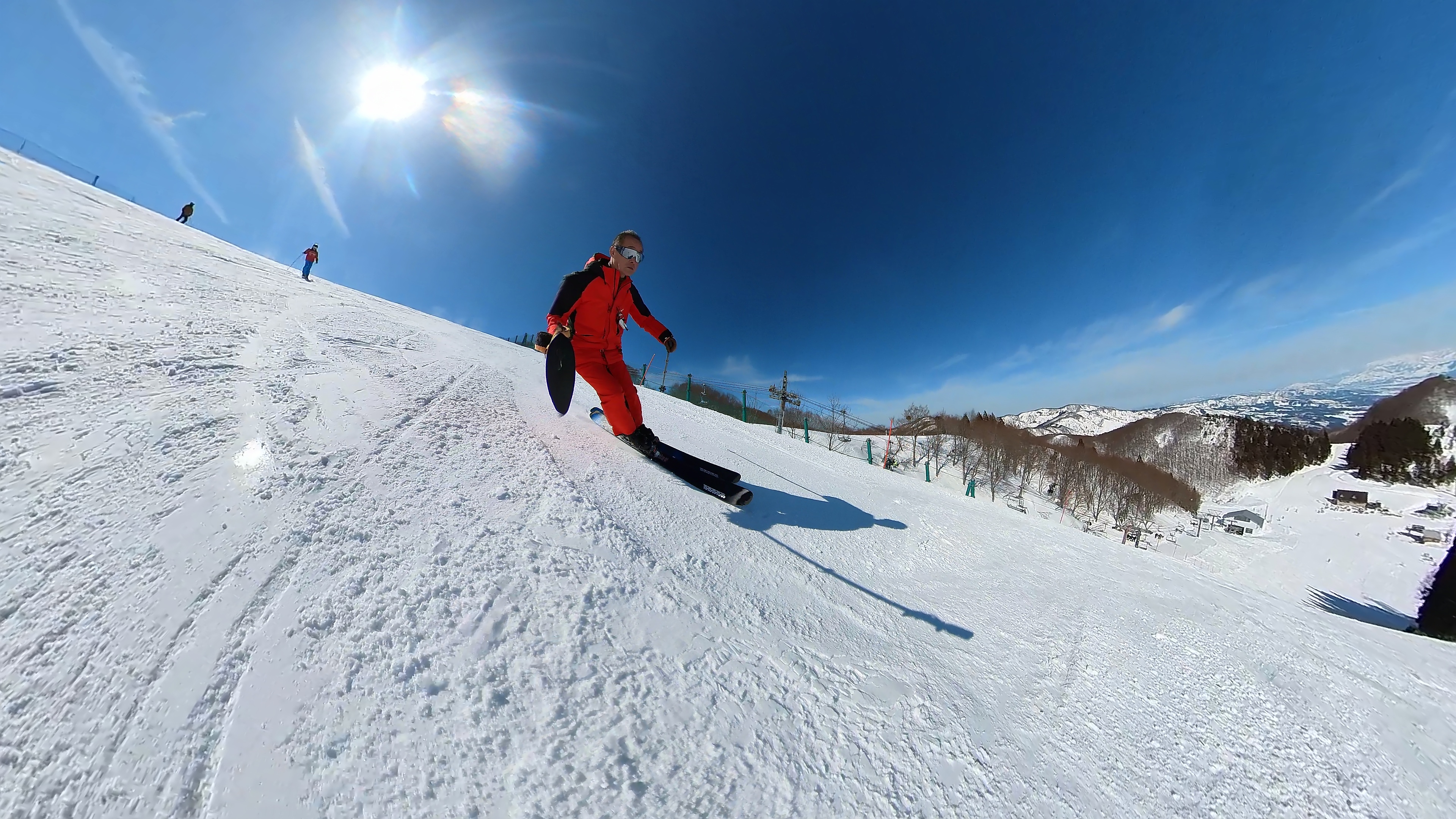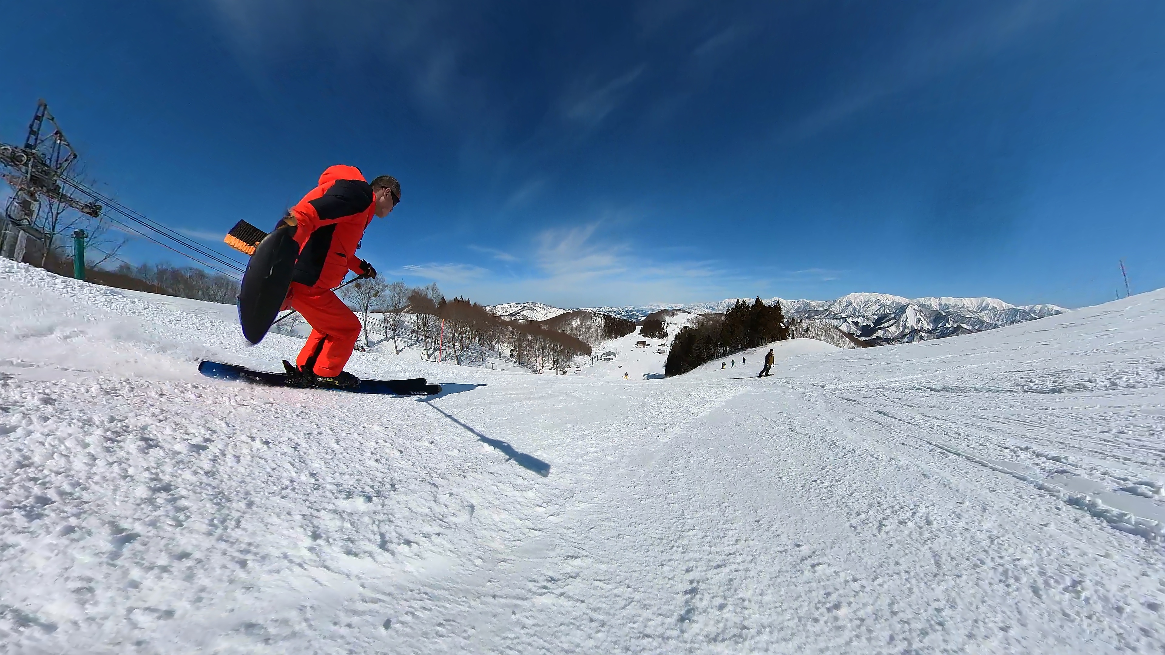 ガーラをもう一度登って、北エリアから石打丸山スキー場へ。下山コース3本目は石打丸山自体です。南魚沼盆地を見下ろして滑り降ります。