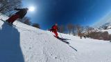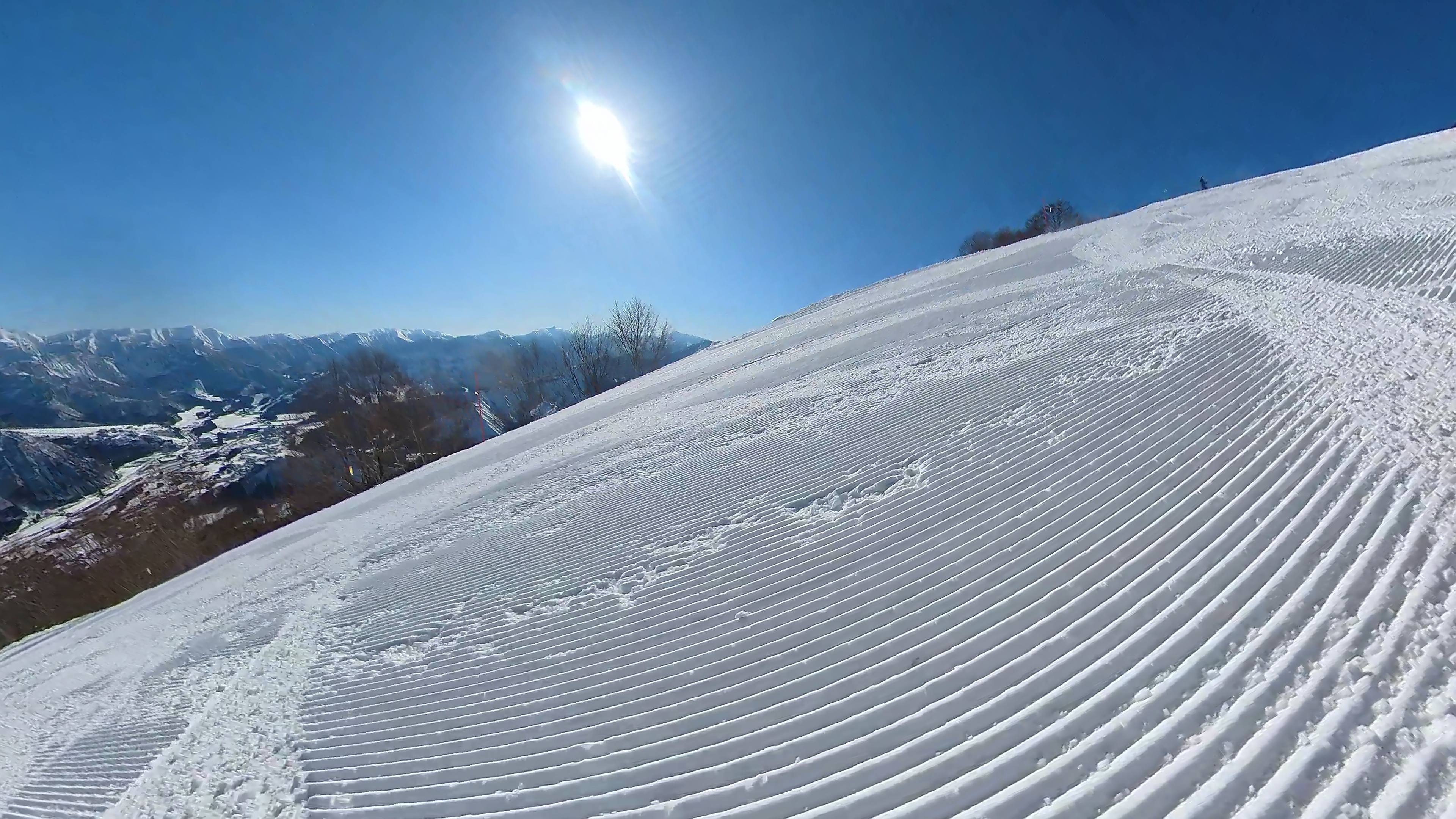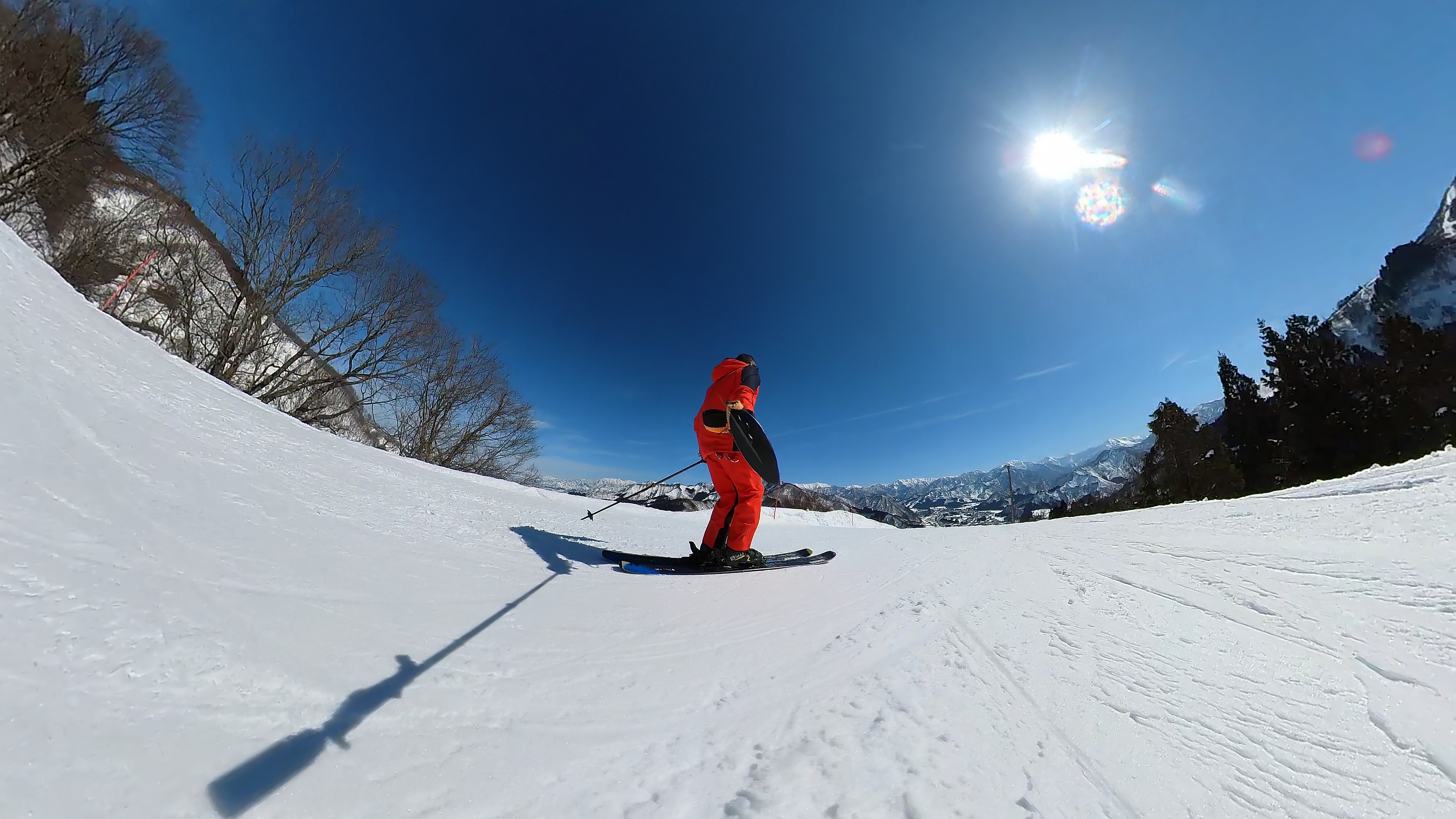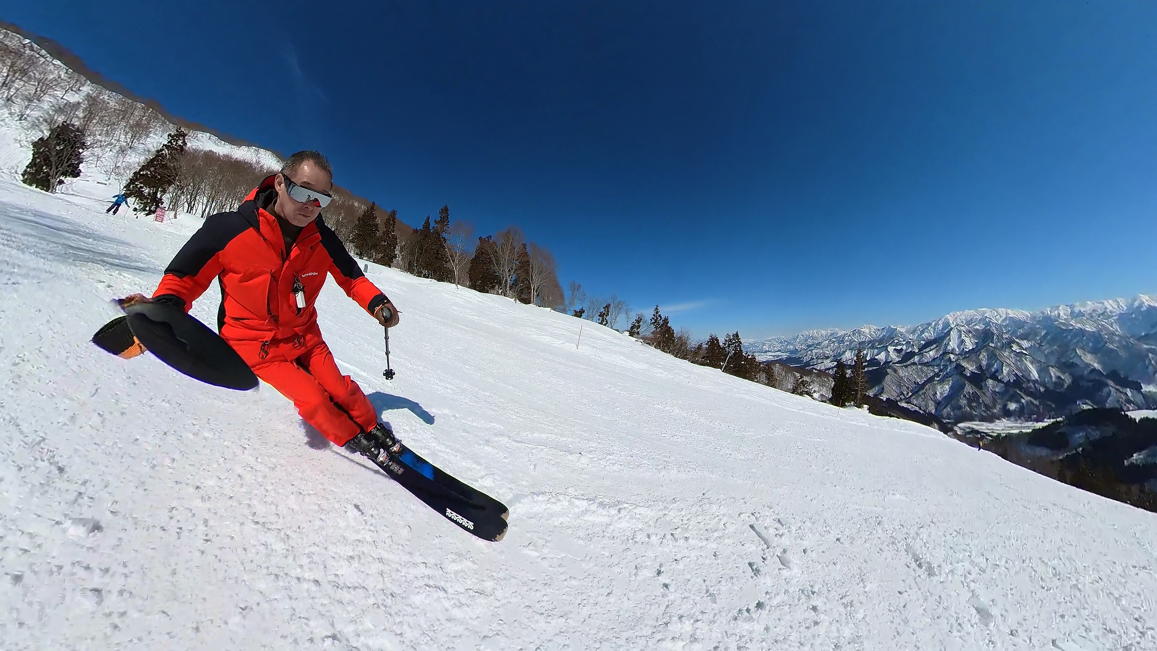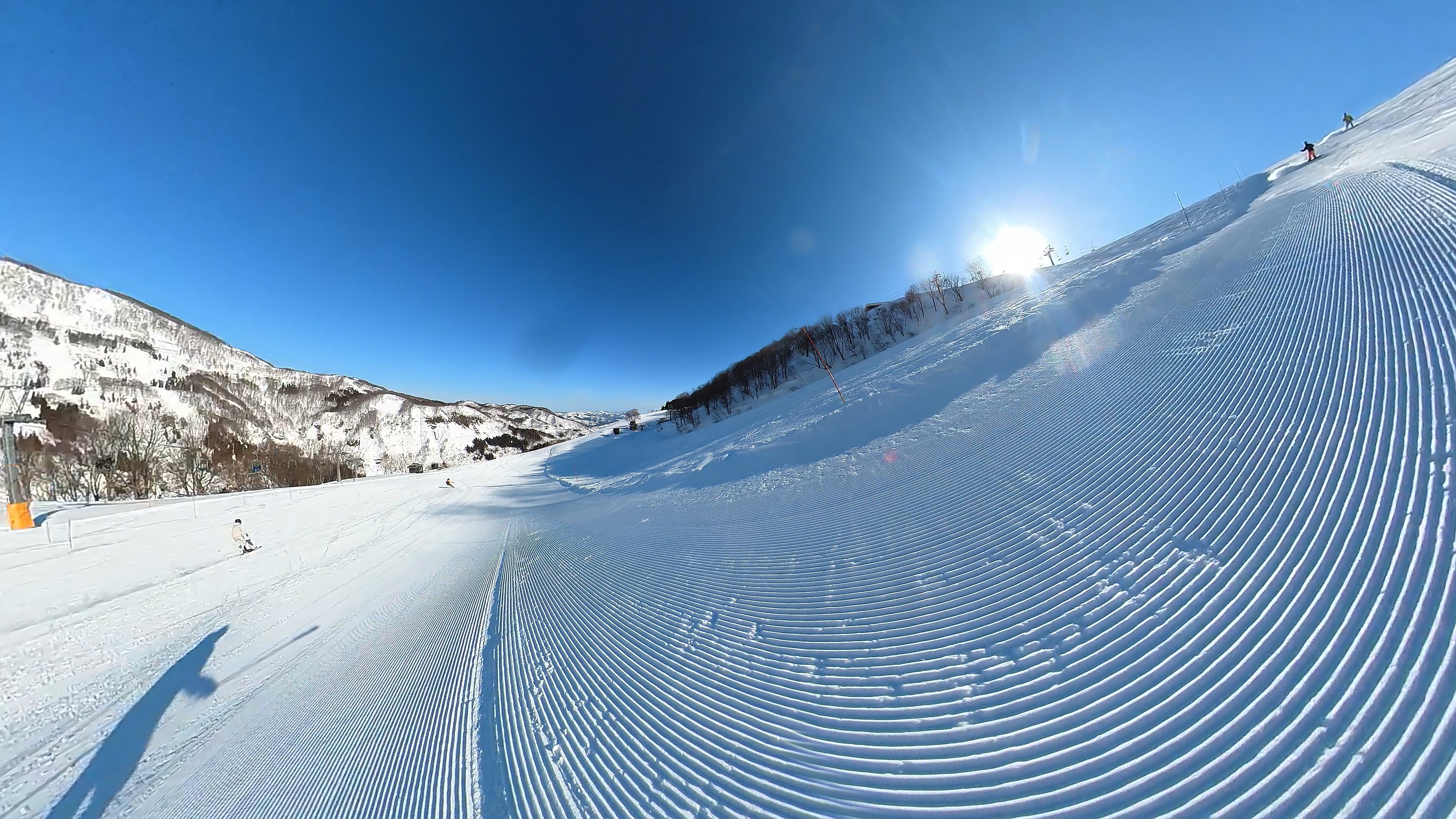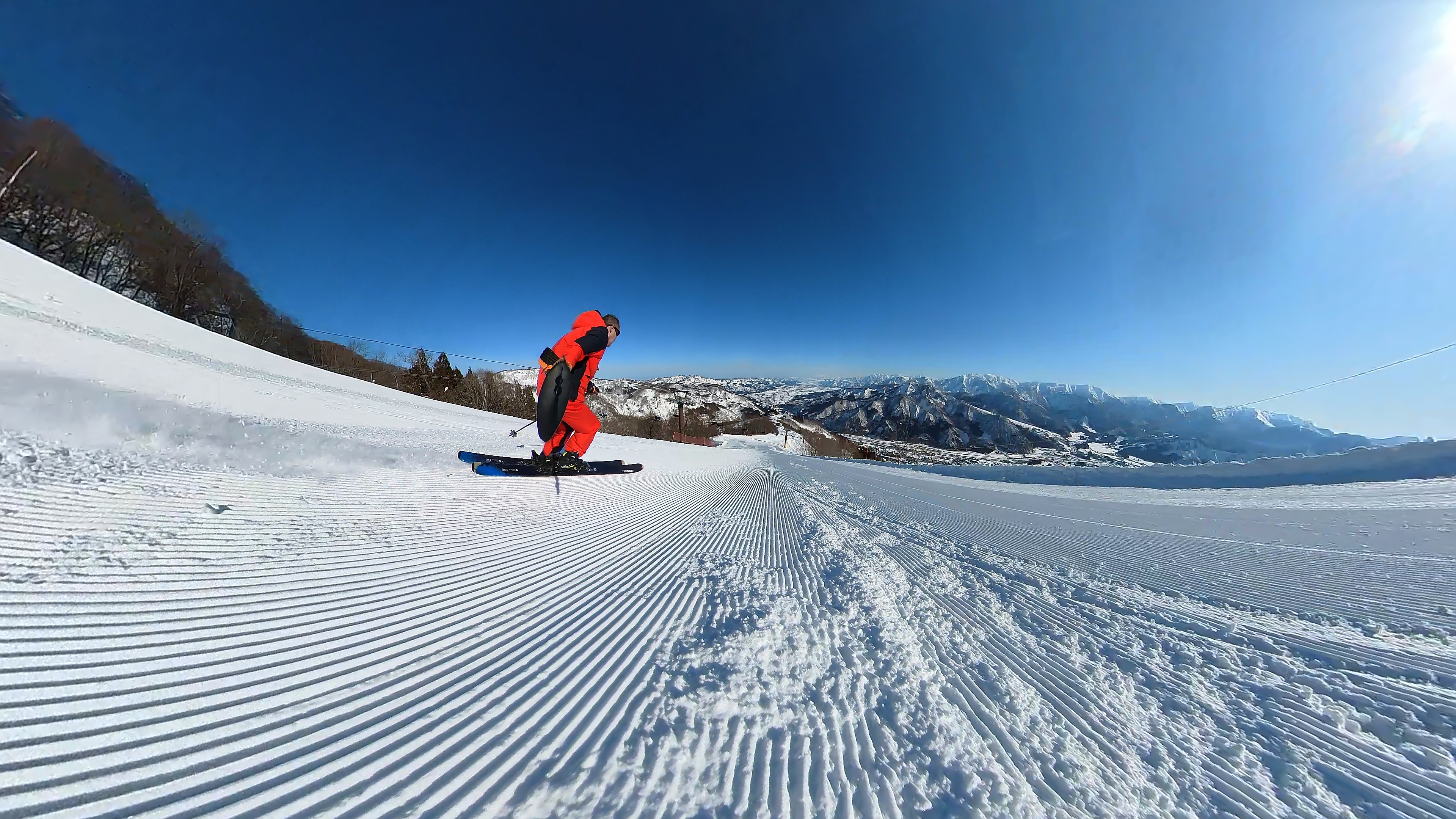 ガーラをもう一度登って、北エリアから石打丸山スキー場へ。下山コース3本目は石打丸山自体です。南魚沼盆地を見下ろして滑り降ります。