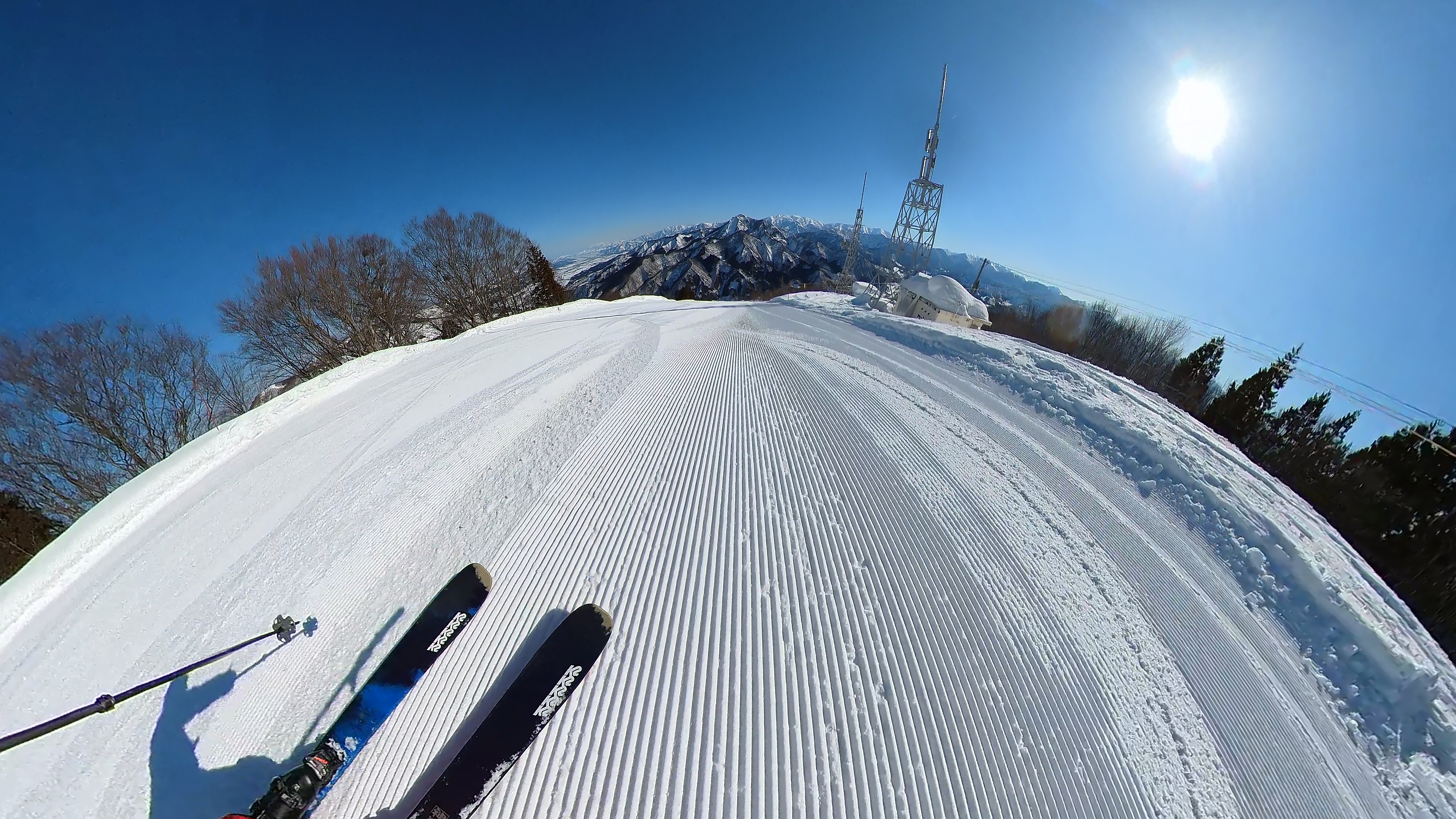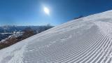 まずは山頂の青いケシへ。残念ながら客で2人目。まあそれでも新品のピステンを存分にいただけます。