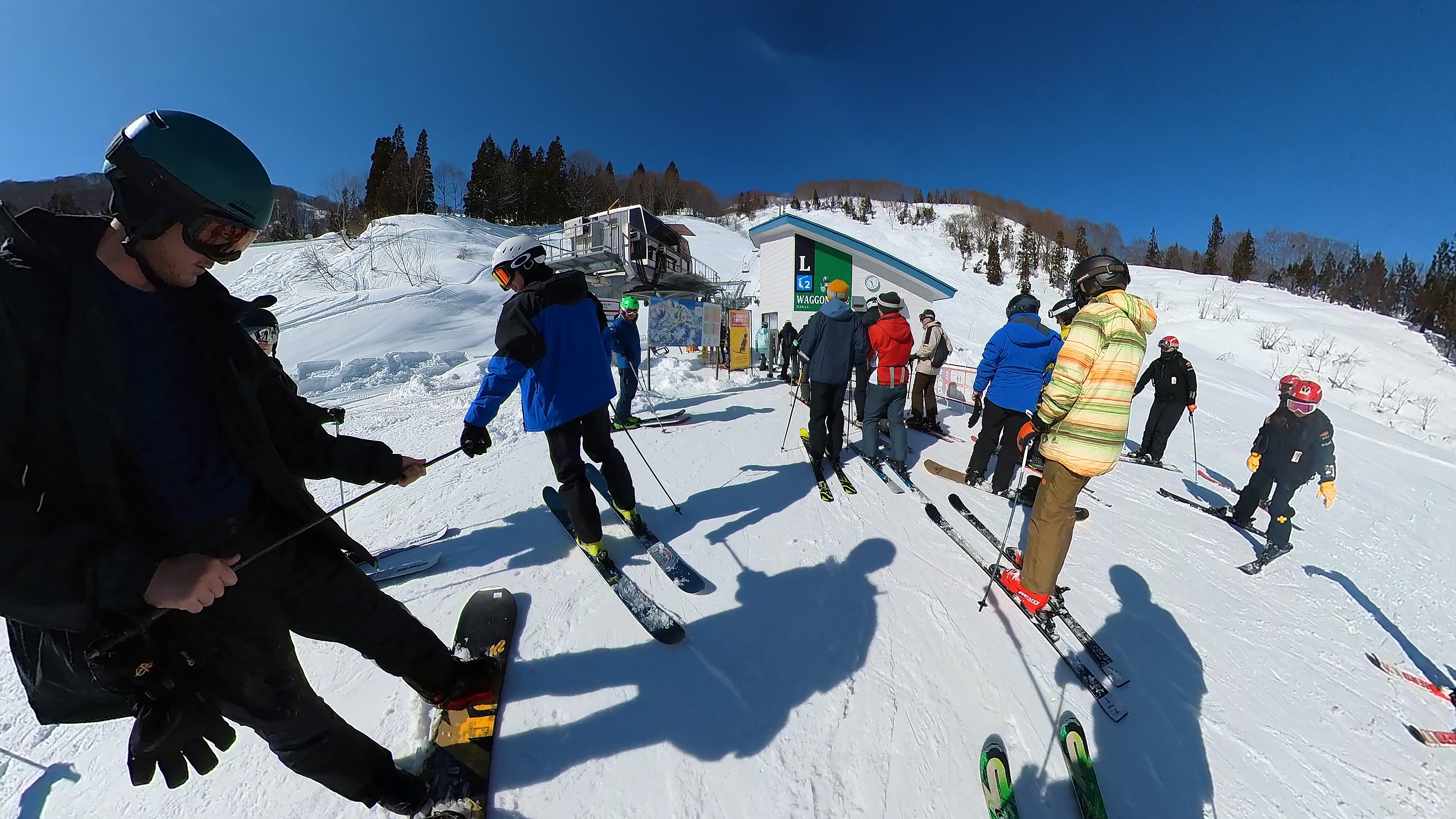 2月三連休スタート。湯沢高原のロープウェー待ちも結構長いです。1便で100人近く乗ってる?