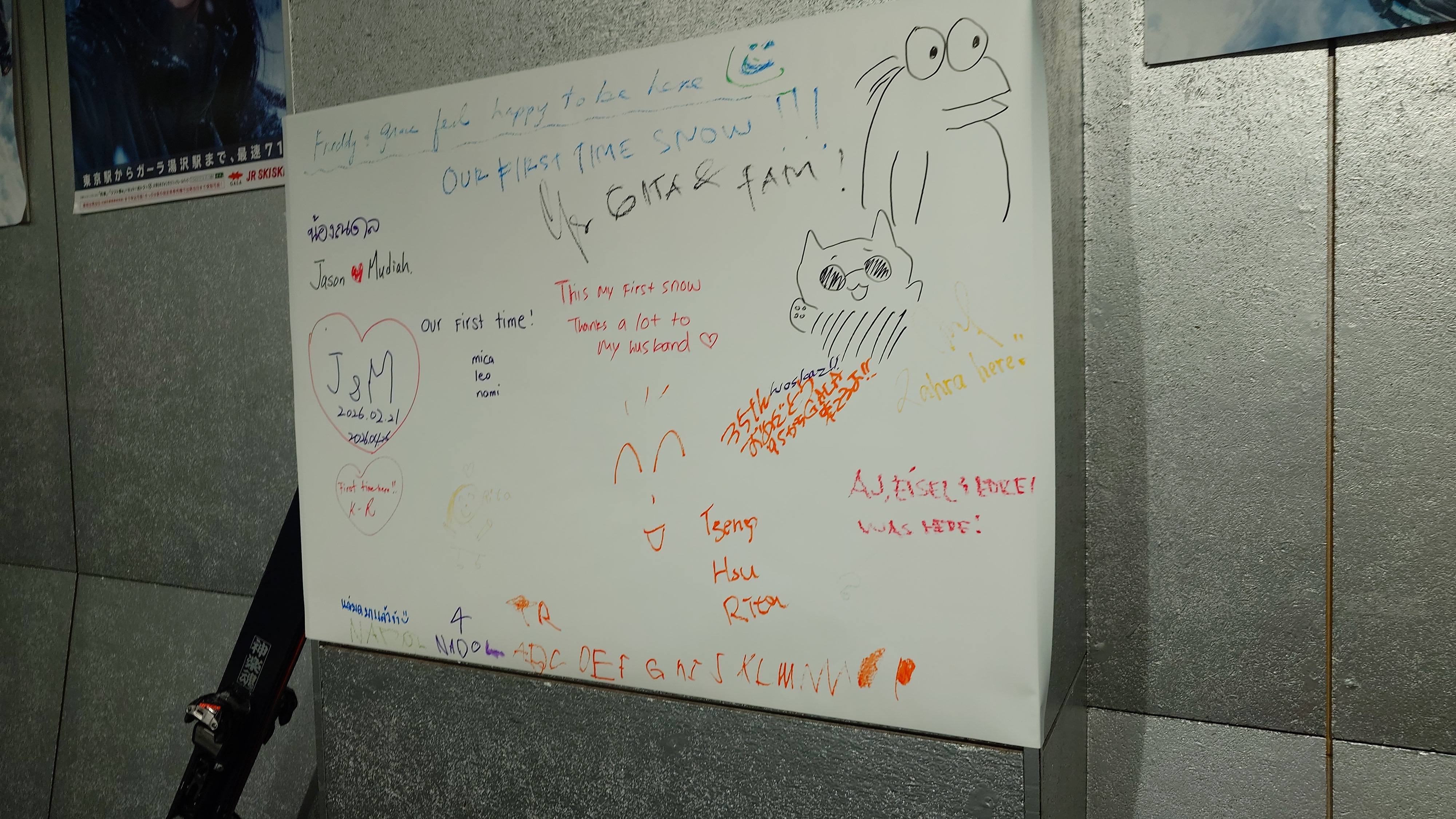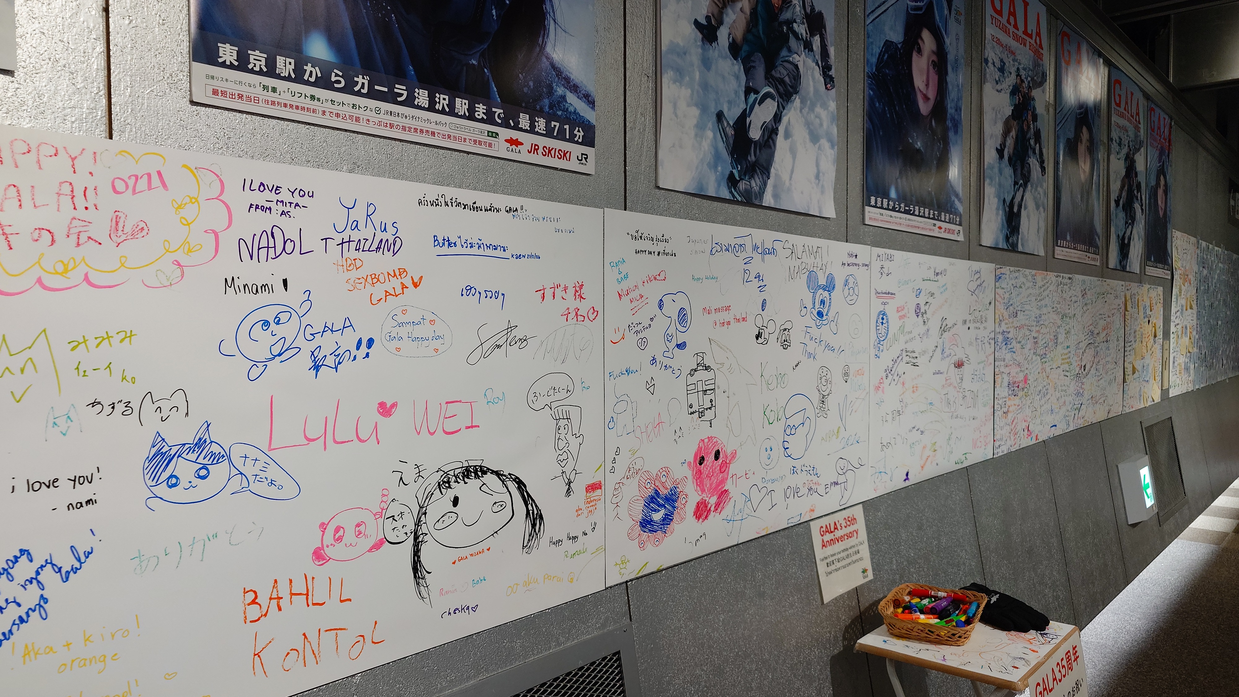ガーラのゴンドラ乗り場通路に35th記念寄せ書きが貼られています。ちょいとサインしておきました。