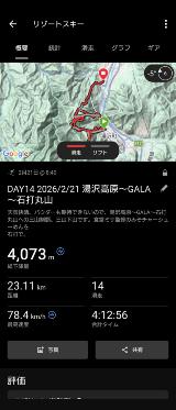 獲得標高4,073m。まあまあ滑りました。ところで、GARMINとSTRAVAの標高差の件、GARMINを腕に着けると差が縮まり誤差の範囲に。心拍数とか看てるのか??