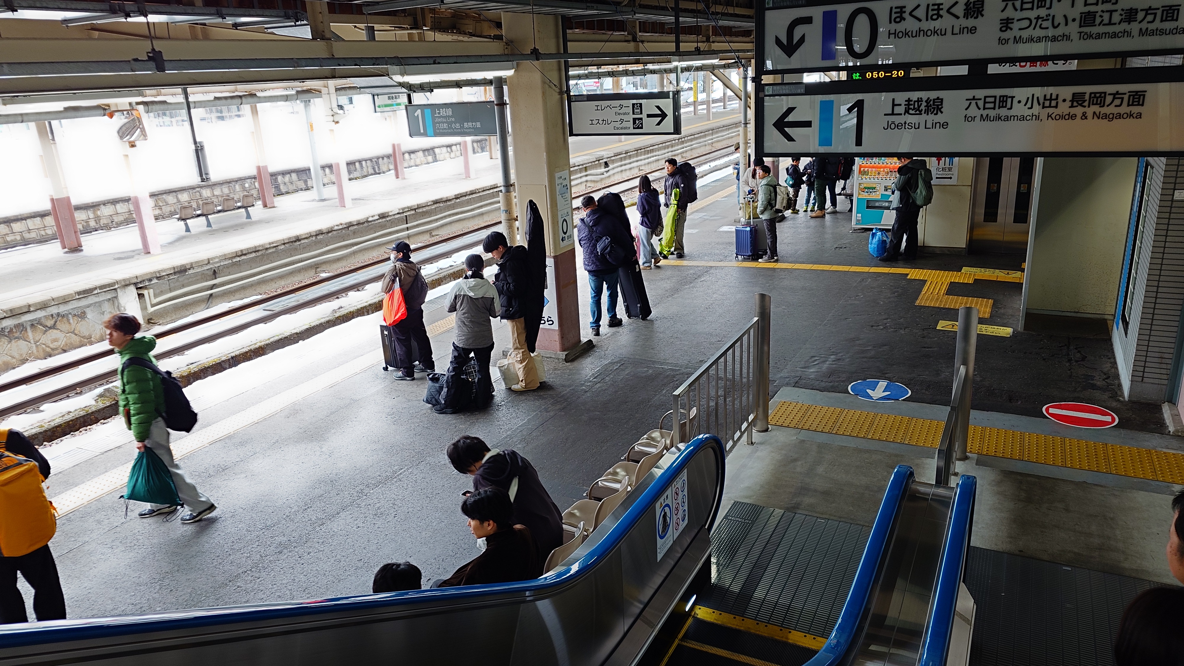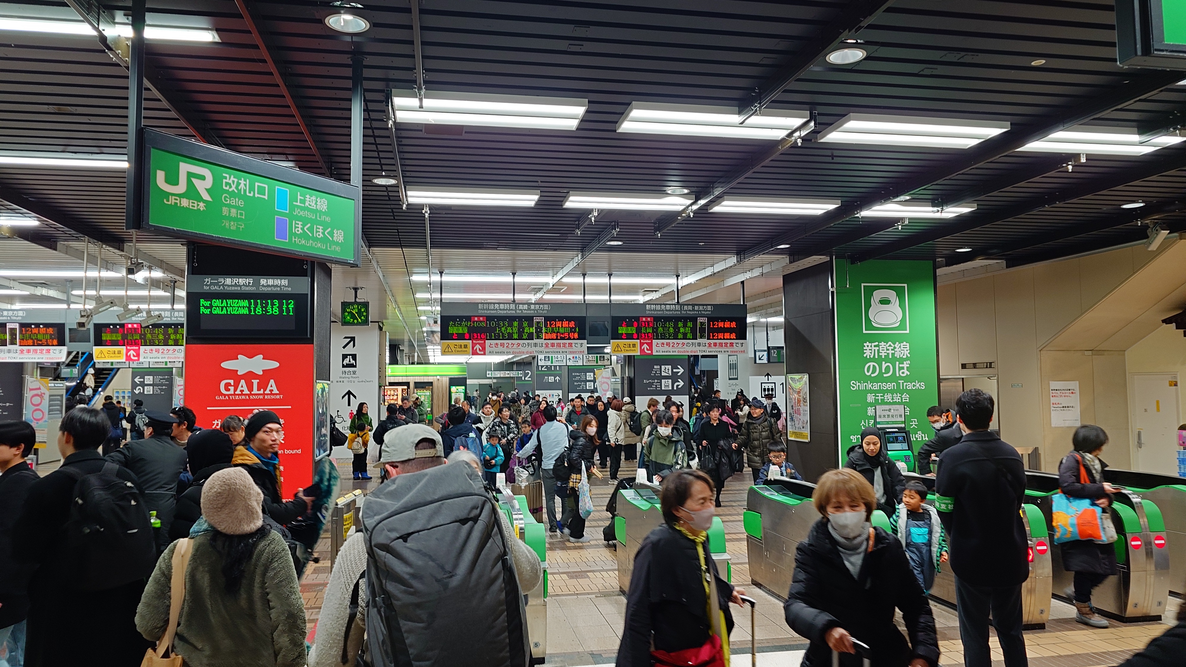 連休最終日。今日もゲレンデには出ずにえちごツーデーパスです。早めに帰ろうという人たちと、今湯沢に入ってきた人で、駅ナカは混雑しています。