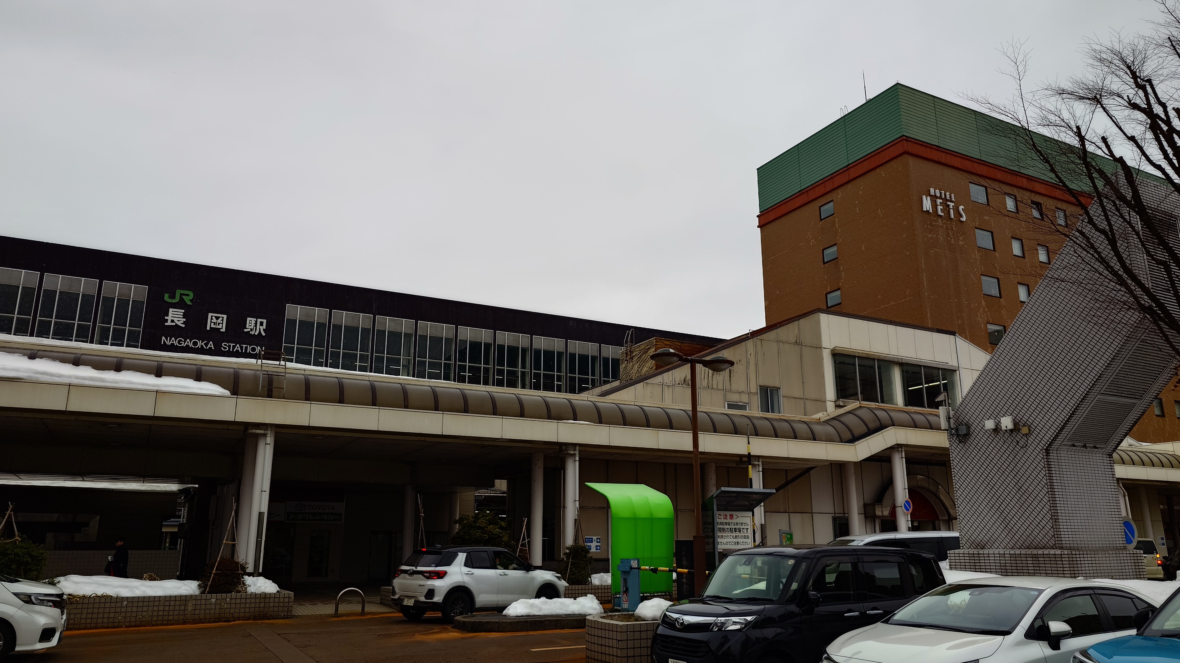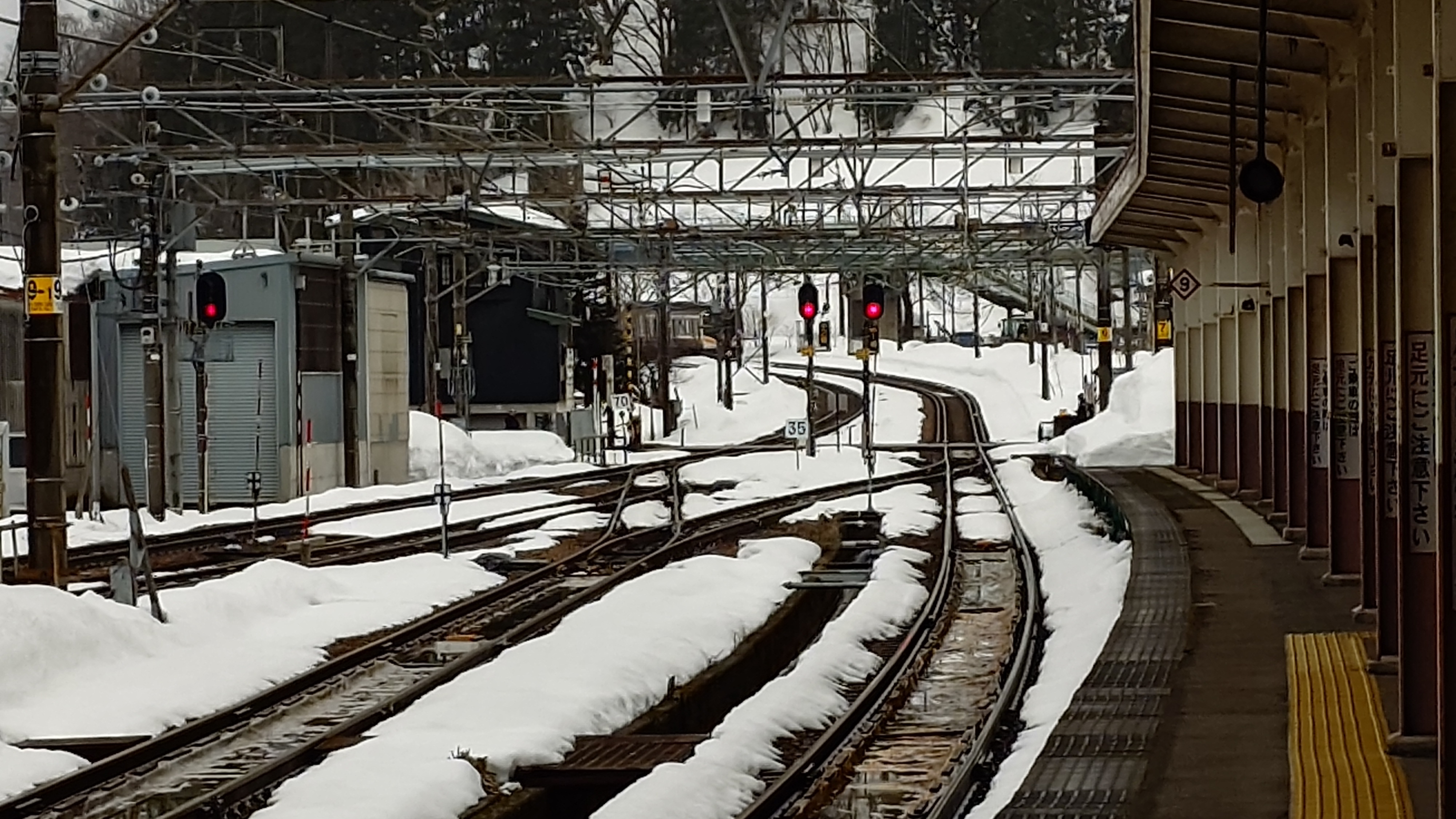 で、10時半の長岡行きが、駅南のカーブで止まったまま。落雪と衝突したとかで安全確認中だそうで、20分ほど遅れてます。
