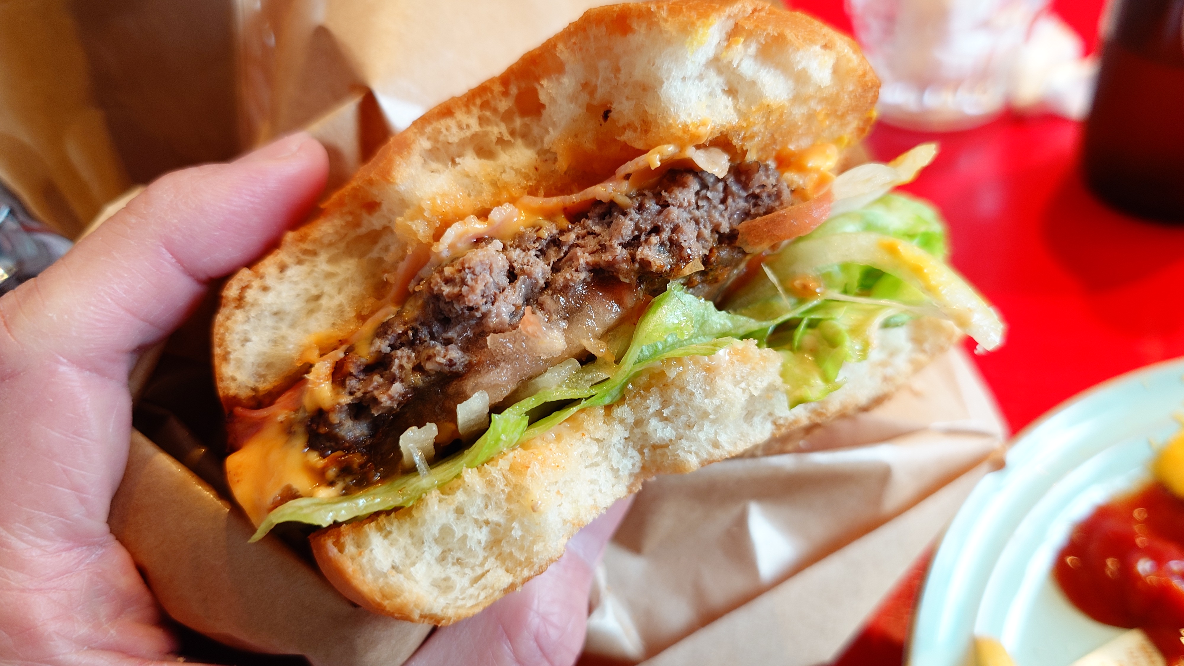 カリッと焼かれたバンズに、肉感感じる粗挽きのパティ。オーロラソースでよくまとまっています。ポテトもカリカリ。旨い。