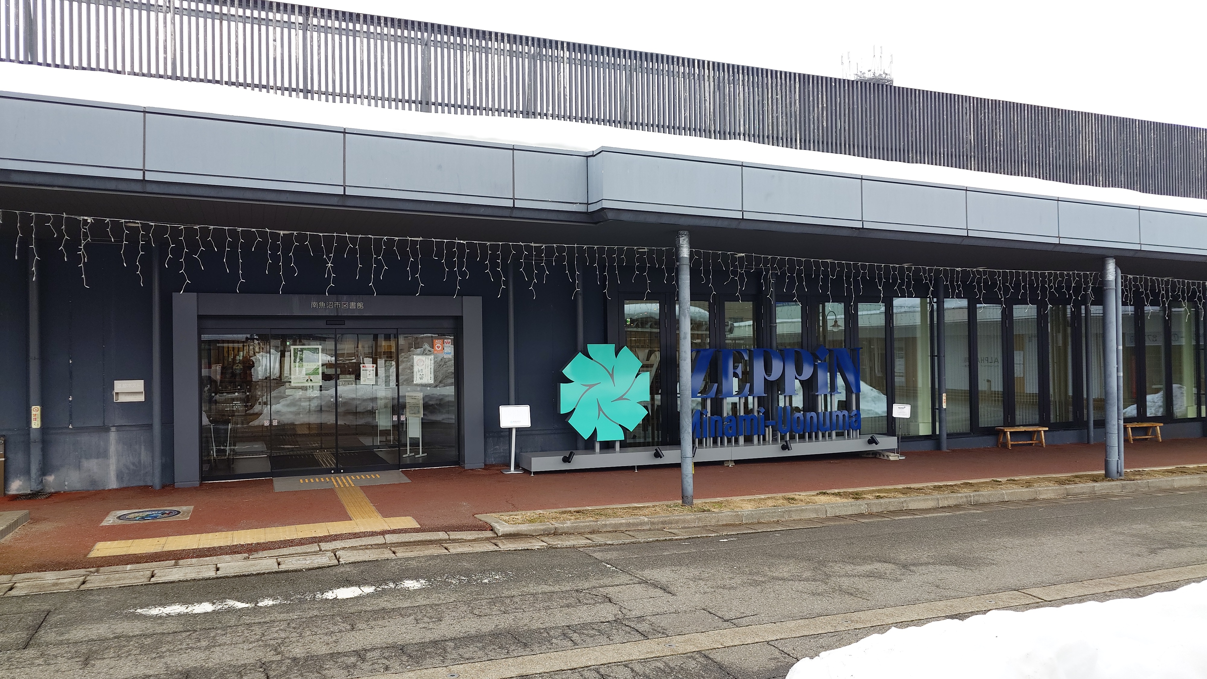 買い物がてら六日町で途中下車。あれ、駅横の図書館の前にZEPPIN MINAMI UONUMAとか書いたサインが置いてます。一昨日は反対側を歩いたので気付かずでした。