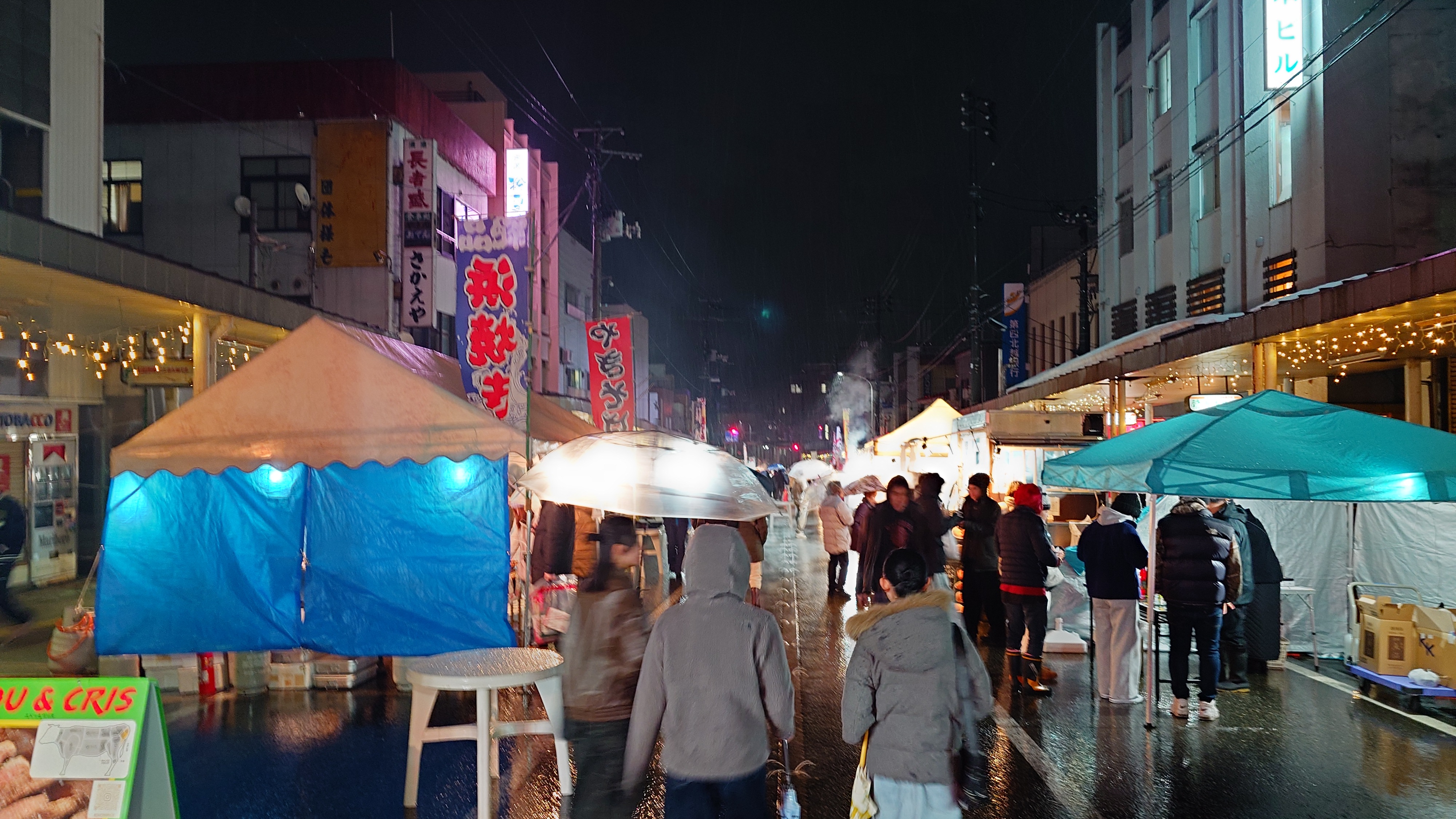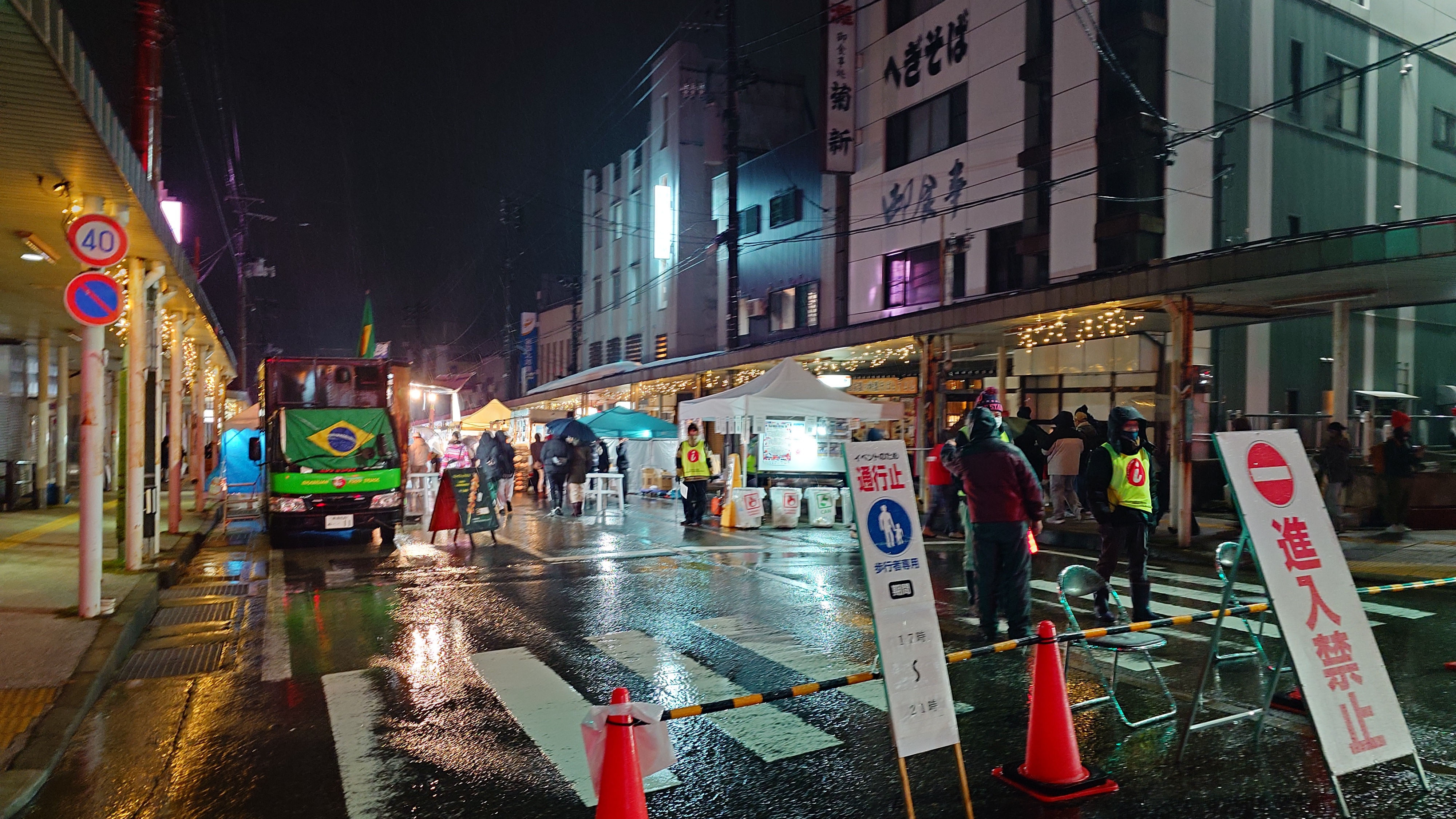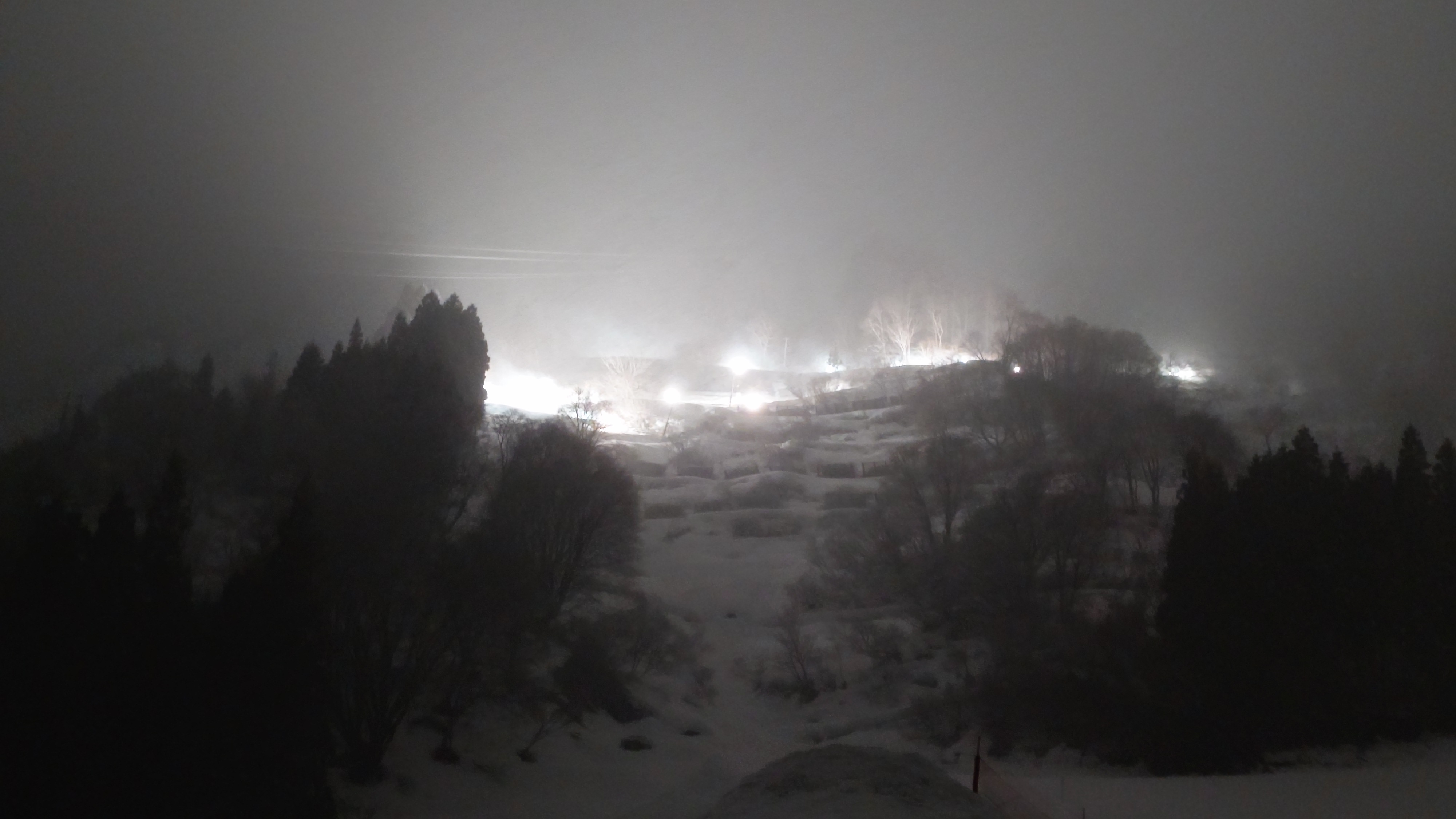 夕方、ごそごそ這い出して。今夜は湯沢高原のたいまつ滑走に冬花火。さらにナイトマルシェも開催。みぞれちゃんが降ってます。