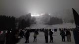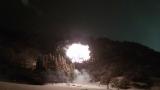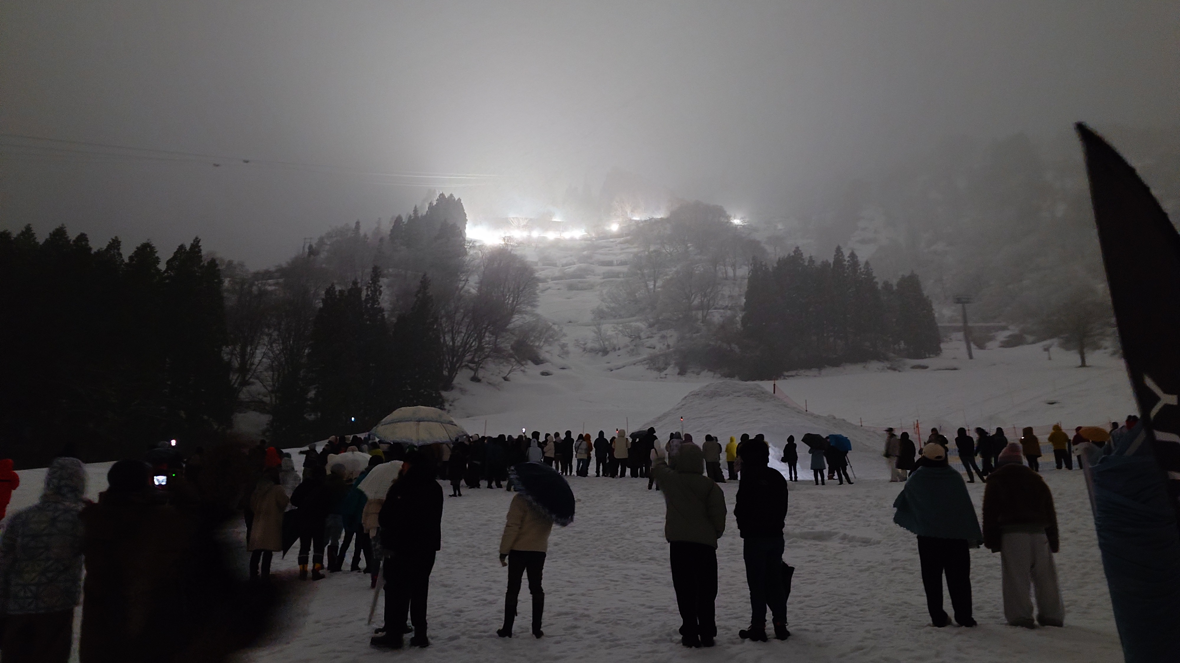 たいまつ滑走が途中で停滞してるなと、後で赤い緑の人に聞いたら、下山コースの途中で雪崩が出たらしく止まってたらしい。