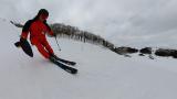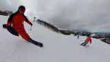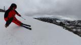 湯沢高原山頂で気温5℃。いい感じにシャバ雪ってます。