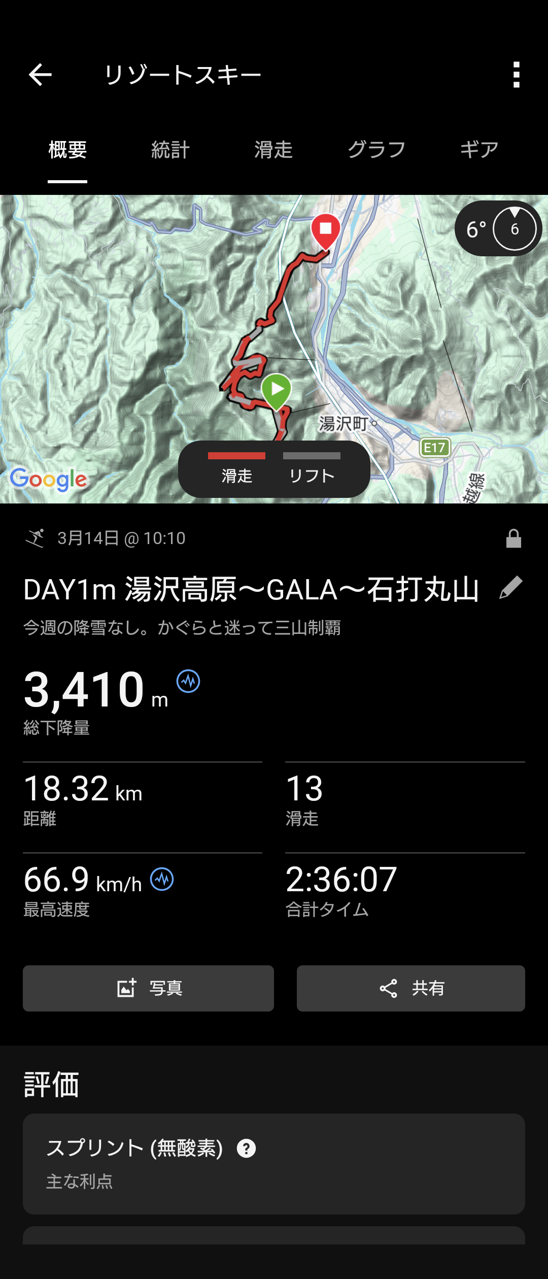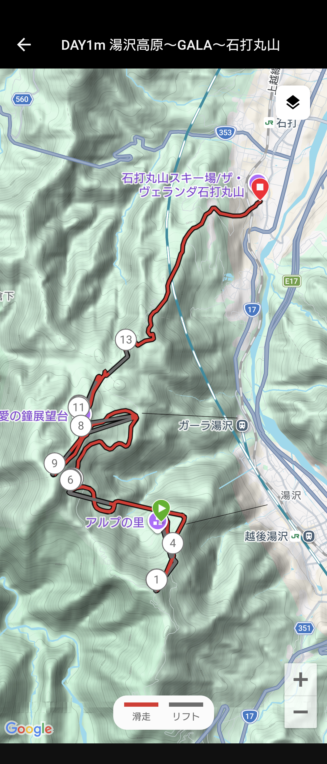 獲得標高は3,410mの実績でした。腹減ったけどバスの時間考えると食べずに湯沢戻りです。