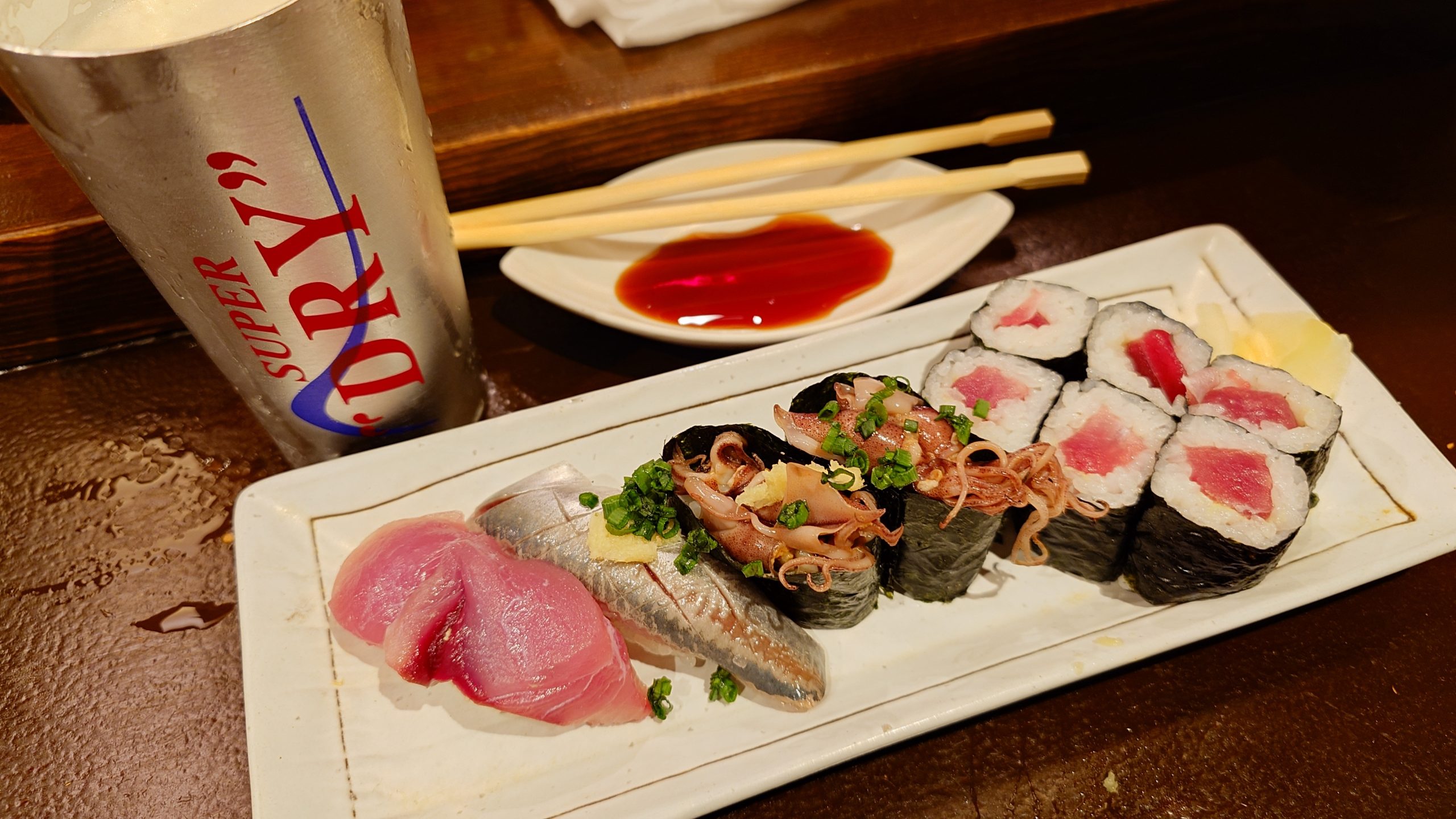 2日間に渡る審査から解放されて、浜松町で腰のメンテナンス。右足が3cmくらい長かったのを調整してもらい、末広町へ。いつもの寿司バルR/Qです。
