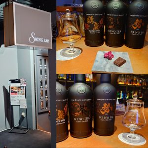 日曜日の今夜は、ジョークンも早く終わるので、地下に下りてSWING BAR。入るとこんなんありますよ的に、京都ジンの季の美が新シリーズ出してると。まずはKI NO TOU 糖島です。樽熟成したような琥珀色。黒糖がボタニカルに使われて甘い味になっています。まさにウィスキーのよう。
