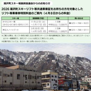 湯沢町民の特権、町民パスも残り2週間ほど。広報ゆざわで、その後の特別料金が発表されました。