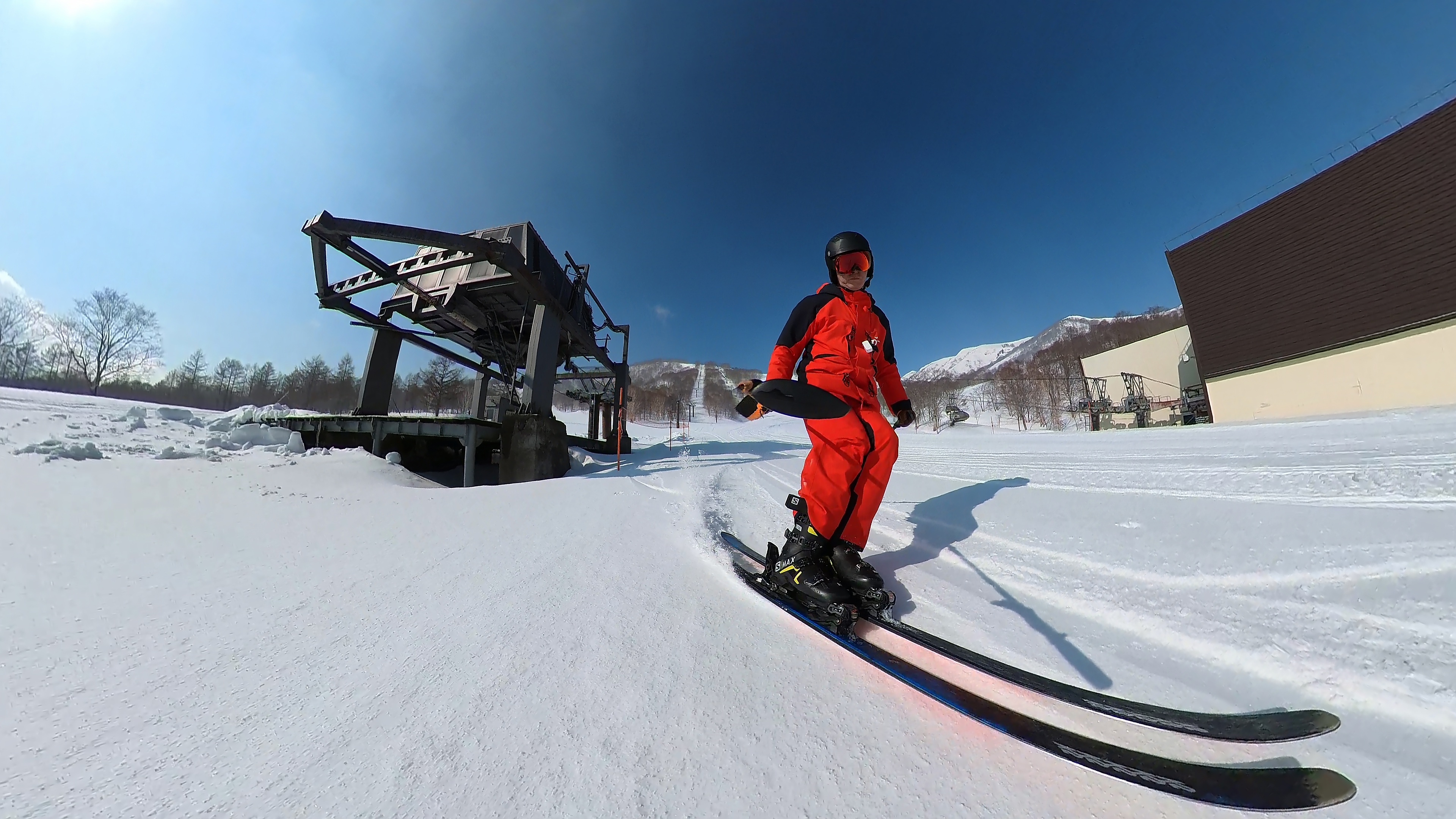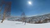 田代まで来たので、アリエスカ1本とチャレンジは1本行きます。コースは既にシャバシャバ。気温は5℃まで上がってます。