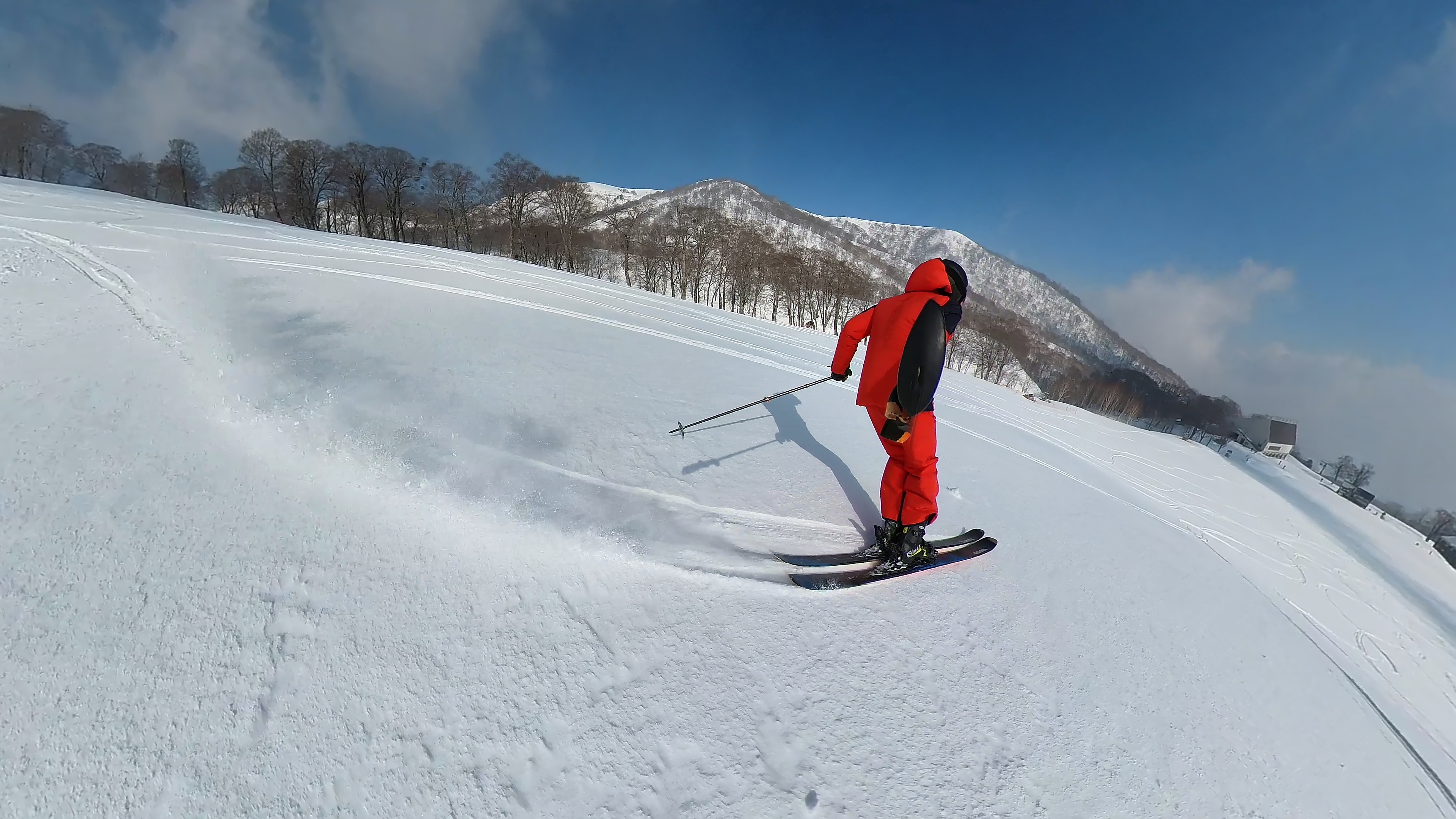 昨日のうちに今日の半休決めておいて良かったです。どうせピステンが綺麗なうちを過ぎるとボコボコと思ってましたので、吹き溜まった所は5cm以上。トップシーズンのパウダーでは無いものの、うっかりパウダーの季節です。