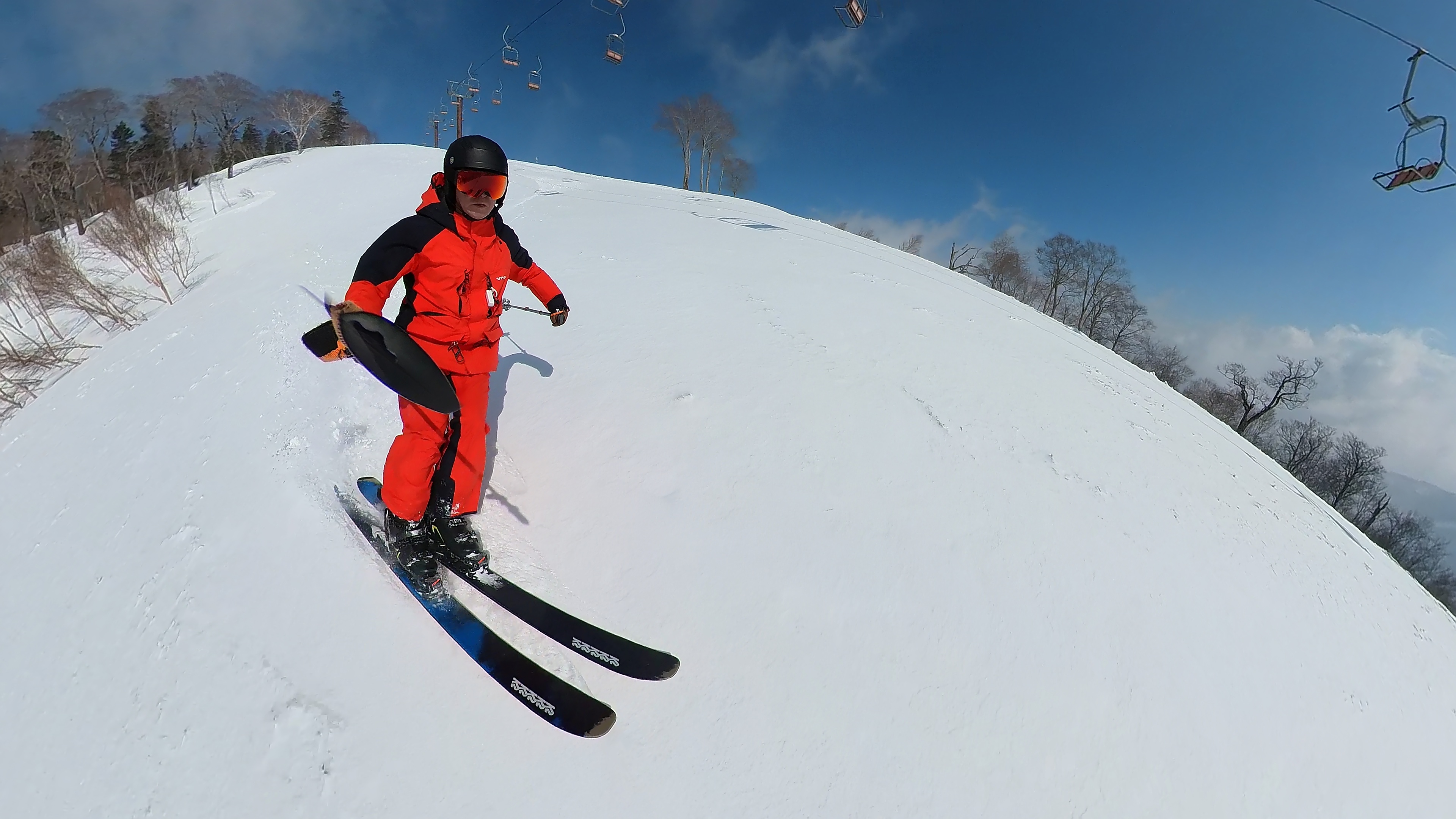 かぐらメインゲレンデ。ガリガリピステンバーンと、3cmくらいのパウダーが織り成す難関コース。