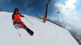かぐらエリアに来て、まずは1高。3cmくらいの新雪がガリガリバーンの上に乗ってます。