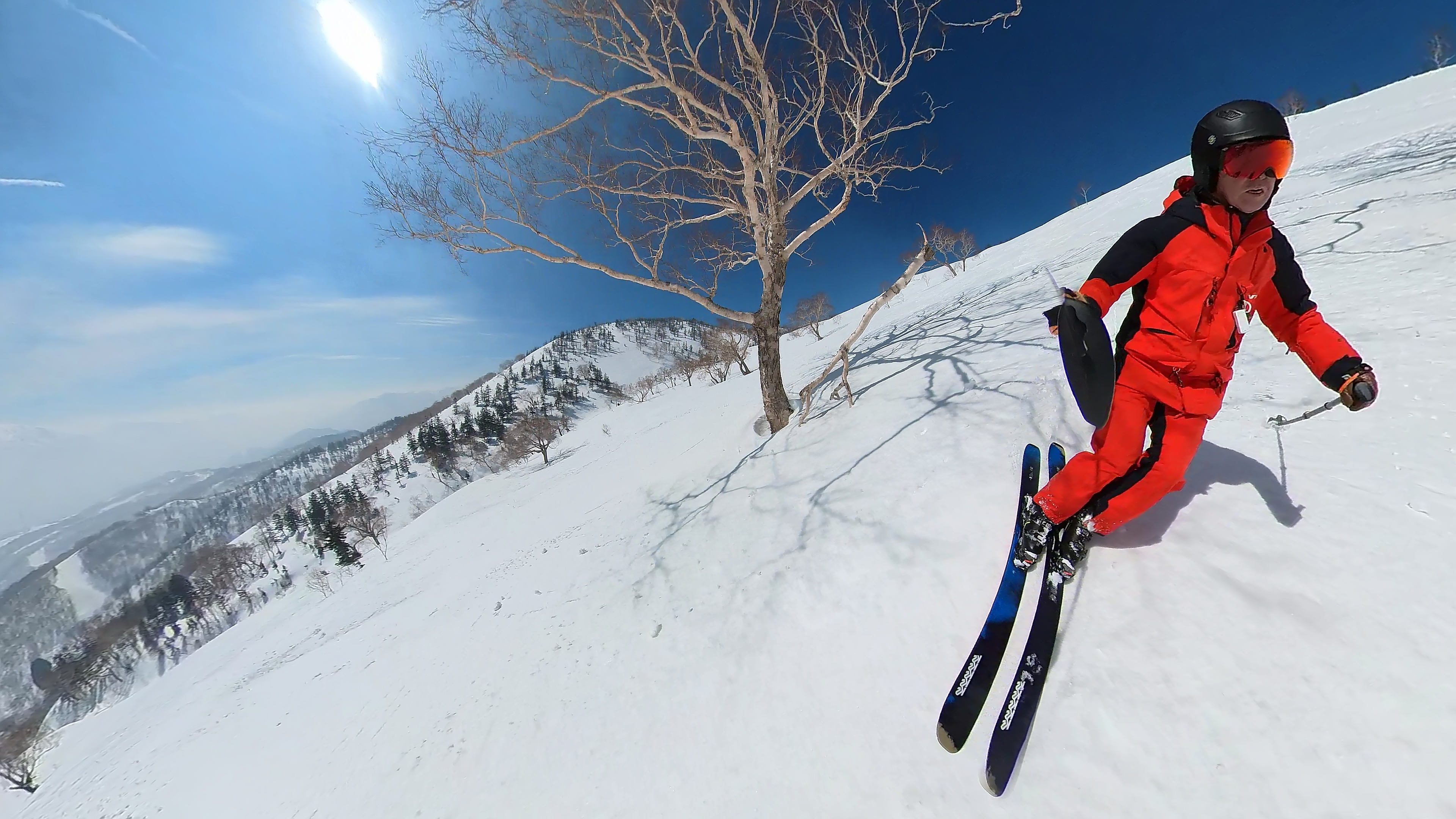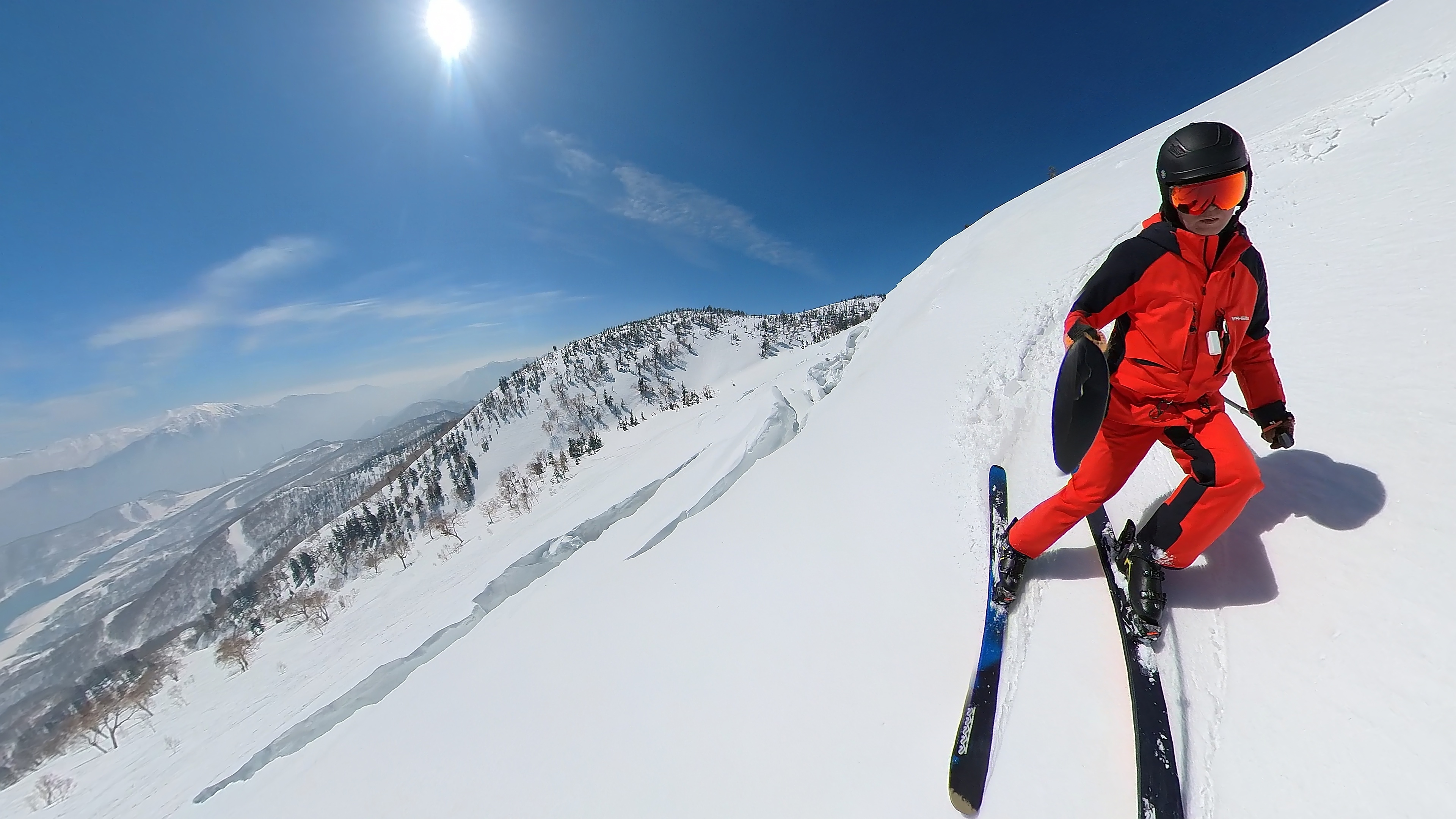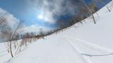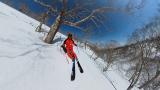 田代落ち2本目はクラックの下から反射板下へ抜けて、田代8ロマ下への滑走。面ツルパウダー残ってます。岩のような氷も所々出ていますが、踏まなければ快適です。なぜか妖怪板つかみはまだ出て来ませんでした。