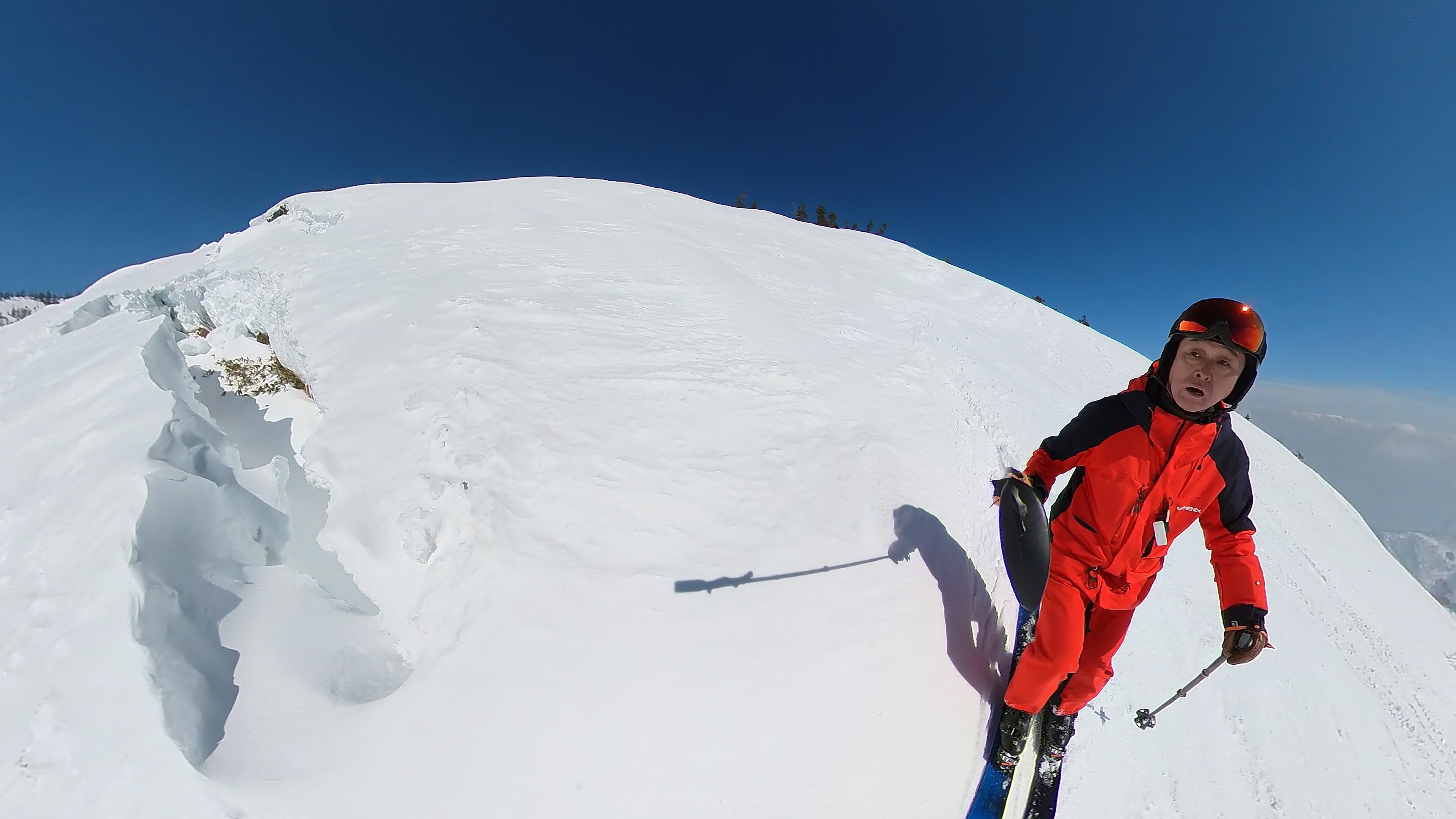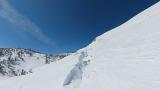 5ロ回し3本目は田代落ち。外に出てすぐ。噂のクレバス登場。これはデカくて深い。土が見えてるってことは2m?落ちたら最悪です。更に全層雪崩の要因になったりして。