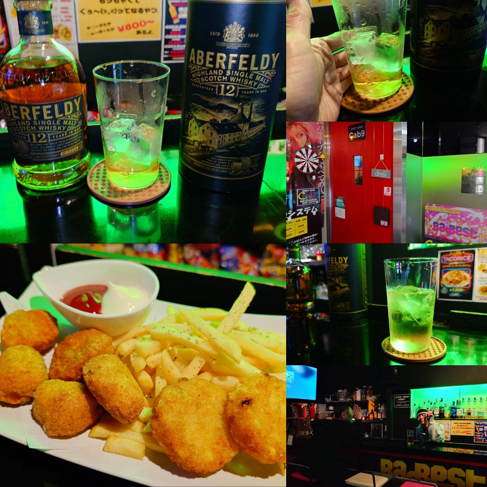 ジョークン出て、腹が、減った。cab9に入ったら新しいスコッチのお知らせ。ABERFELDY 12y。ハイボールにすると山崎のようだと言うレコメン見て仕入れたそうです。