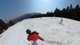 妖怪板つかみもあちらこちらに出てる山頂エリアですが、シャバ雪のおかげでなんとか滑ってます。板掴まれると脚が辛い。