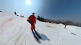 気温15℃のスキー、喉が渇きます。ちょうど1時間分のタイムアウトで中腹のケルン。今日もピーカンで絶景です。