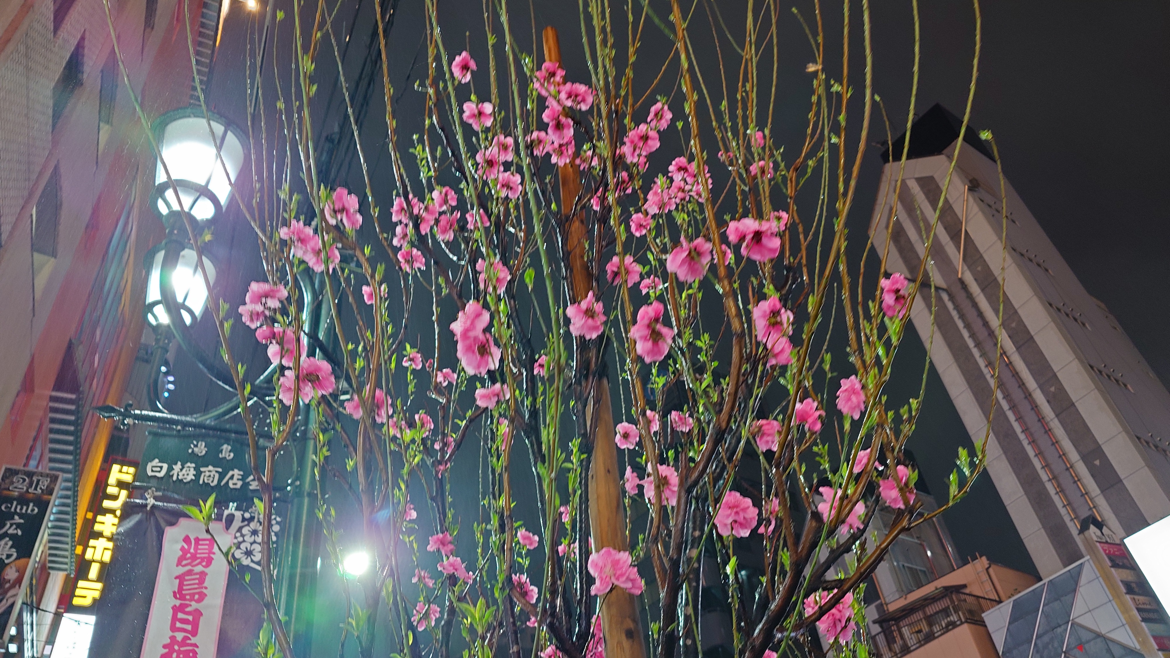 前夜の湯島。街路樹って桜だったのか。