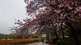 朝は天気が悪かったので、きれいな桜並木が拝めました。