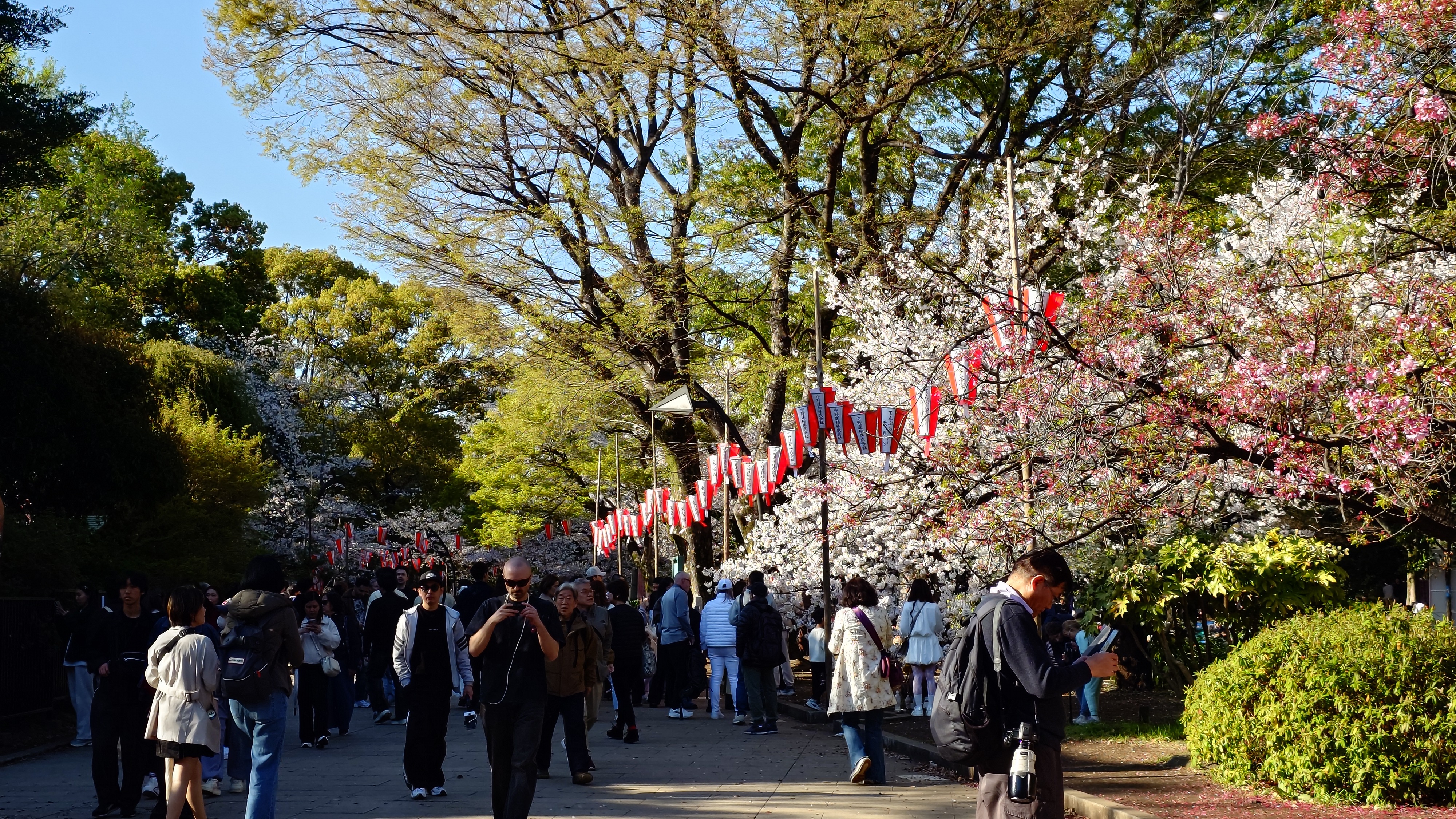 上野恩賜公園から不忍池へ。うわっ凄い人波。春休みとインバウンド人気です。朝の静けさが嘘のように、人が湧いて出て来ています。