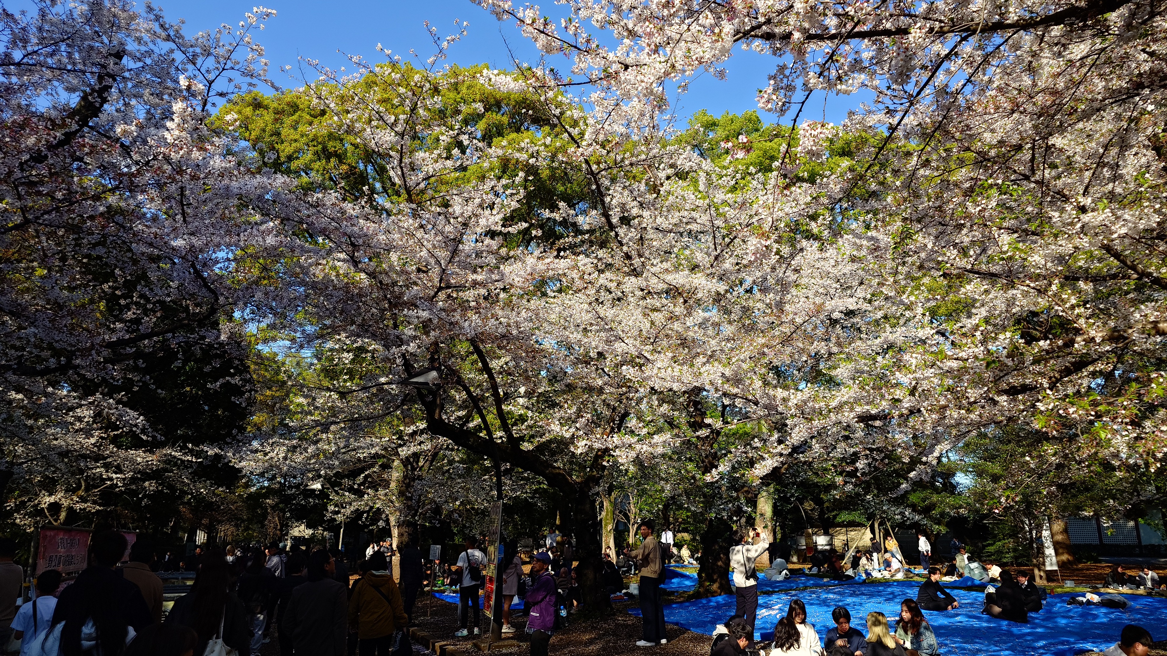会社からの帰り道。昼休み代わりにちょっと早めに出て、上野駅から上野公園へ。古今東西老若男女が群れてます。一部は葉が目立っていますが、お花見の宴会も多く盛り上がってます。
