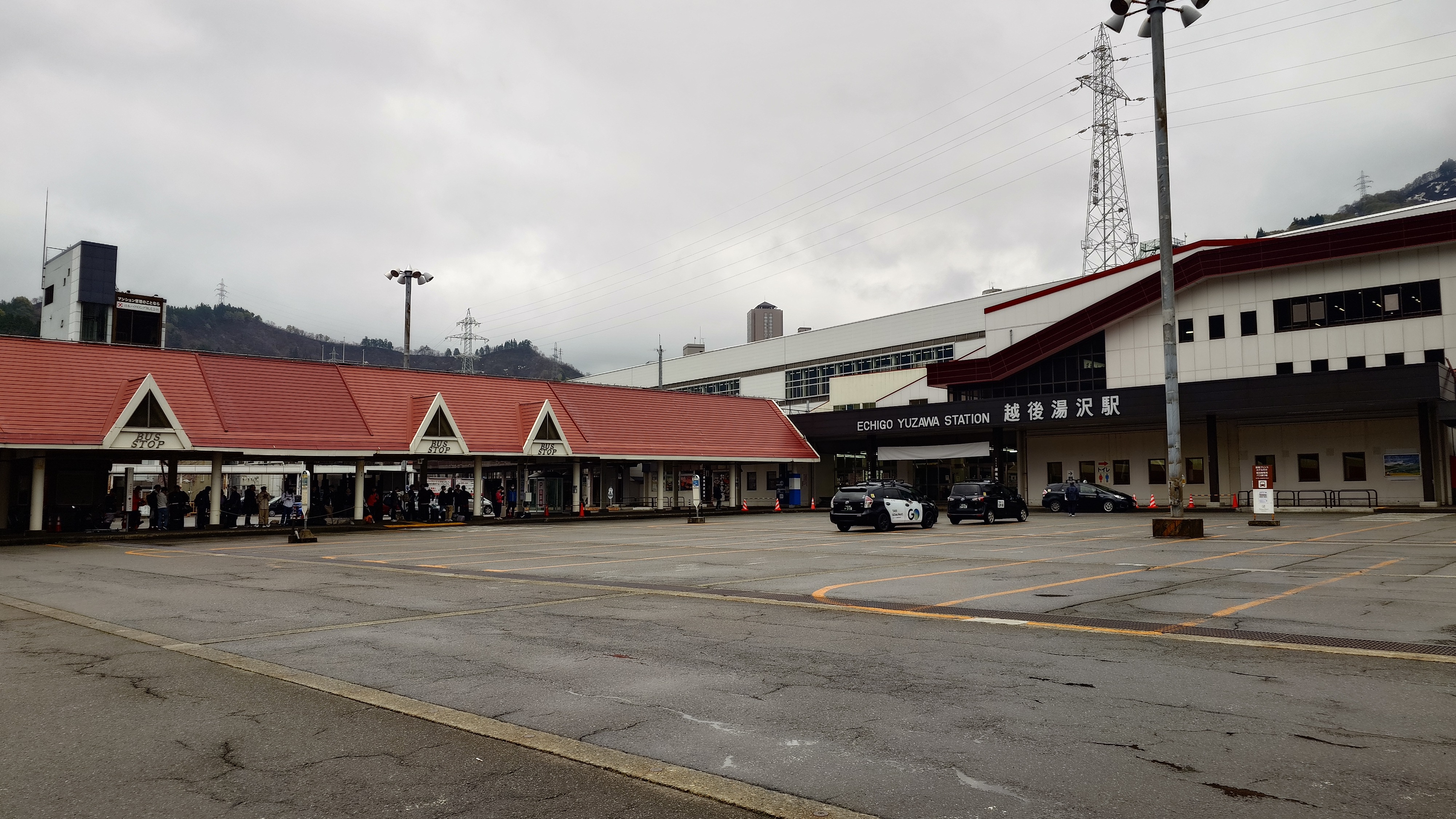 かぐら方面のバスの列がそれなりに伸びてる9時前。今日は上越高田へ向かいます。