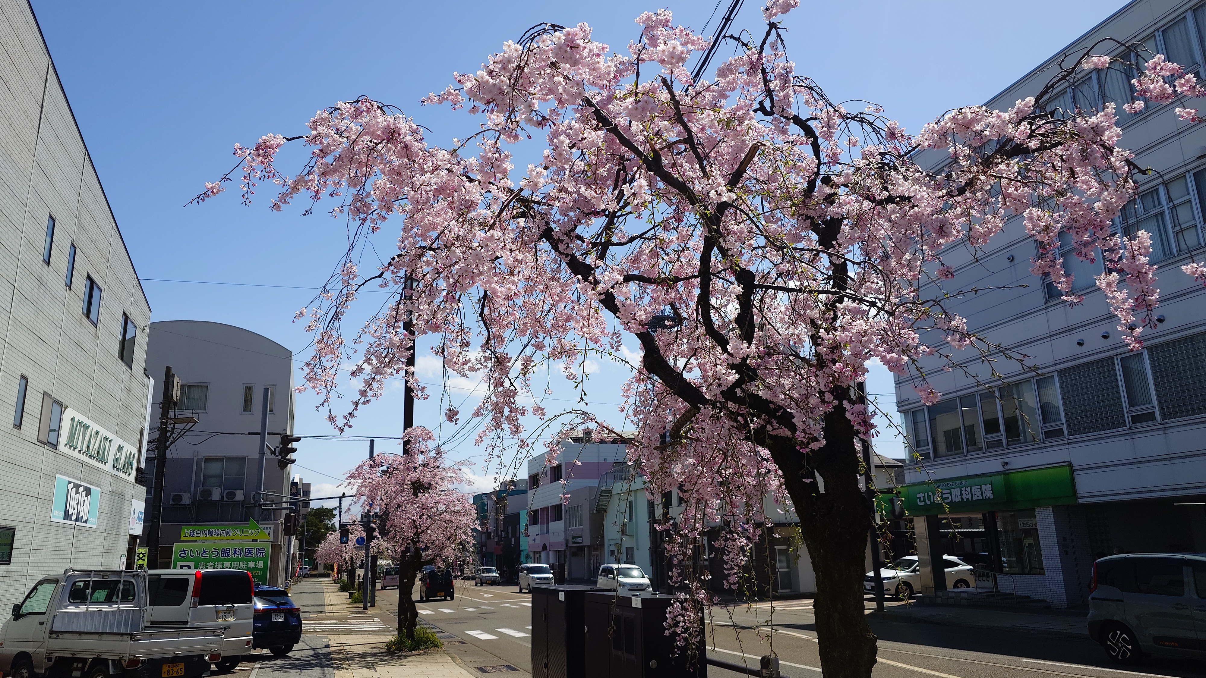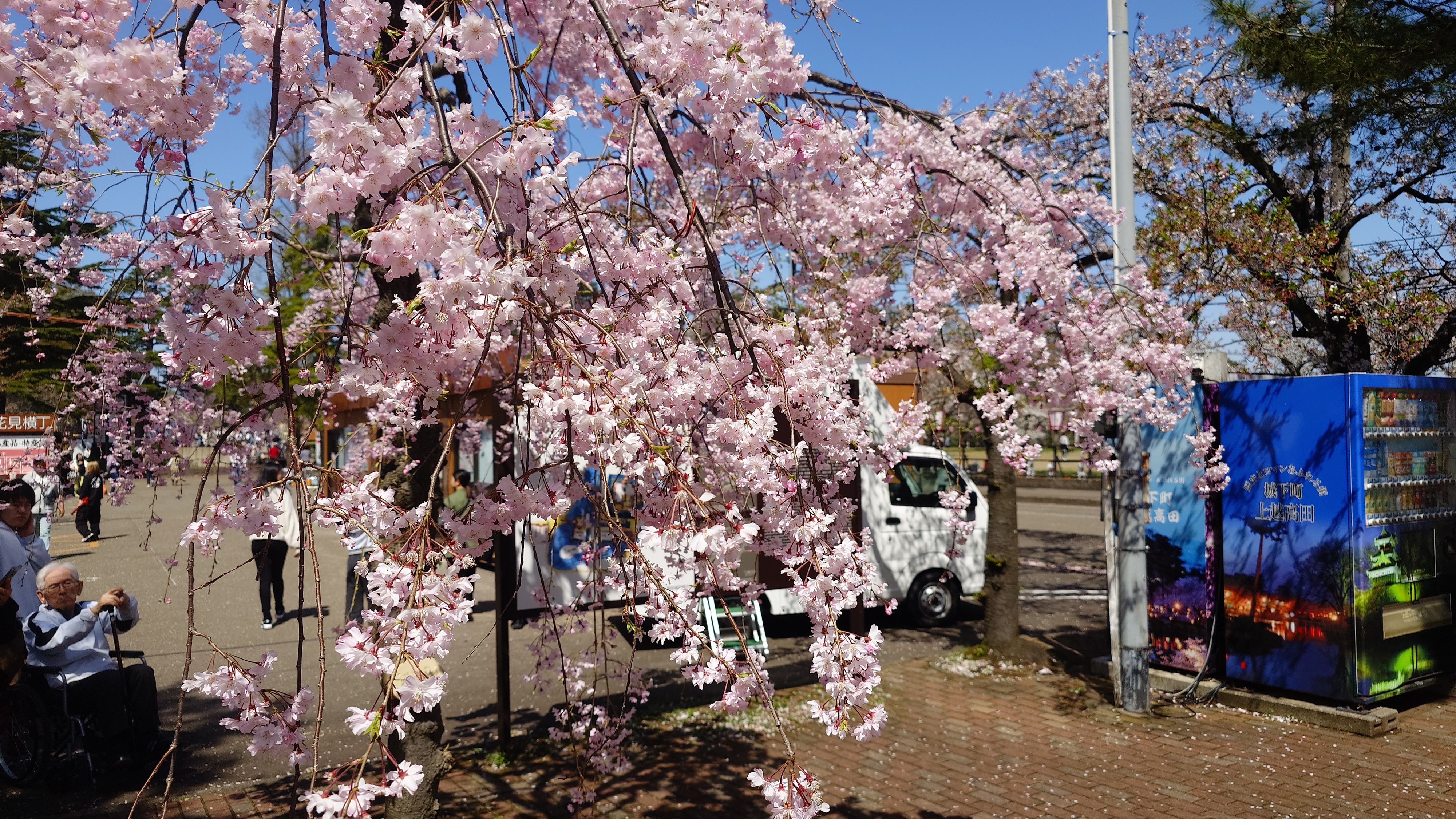 高田に到着。桜とクラフトビール、今年もやってきました。駅前の桜も満開です。