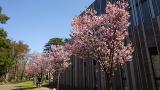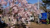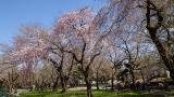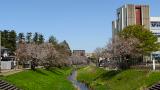 図書館付近の枝垂れ桜は満開。夜桜ライトアップの沿道も散り始めで葉も目立ちますが、きれいなもんです。