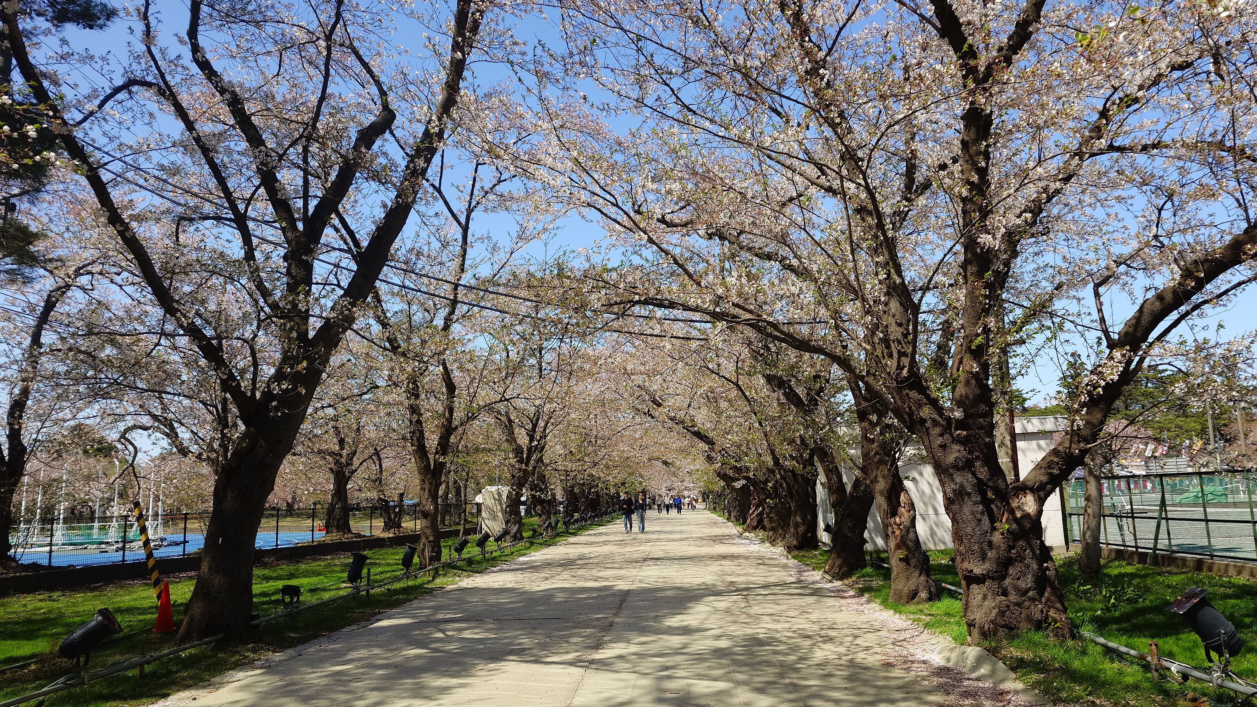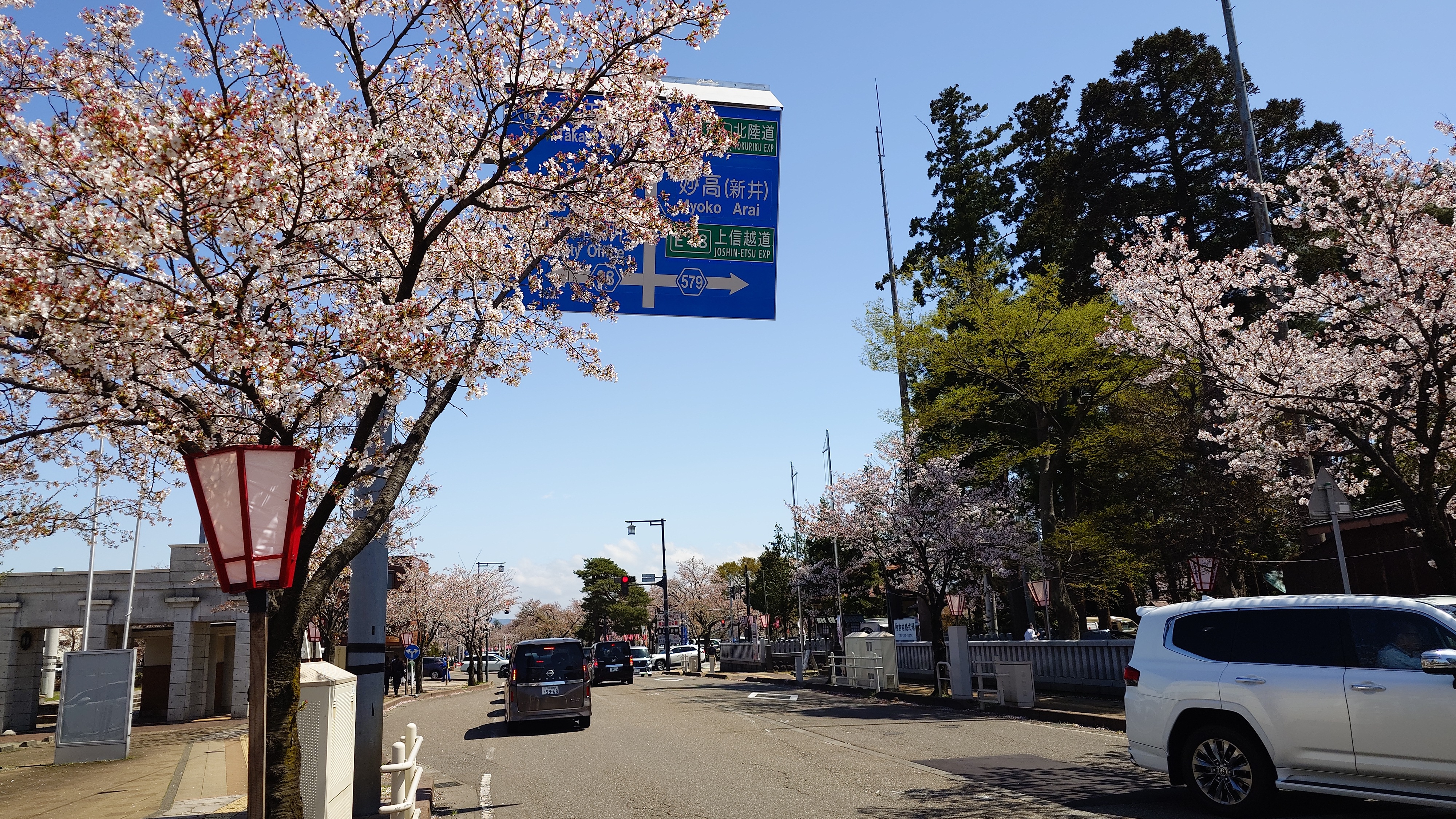 交流館から高田城址公園へてくてく。お城までの沿道も桜並木です。