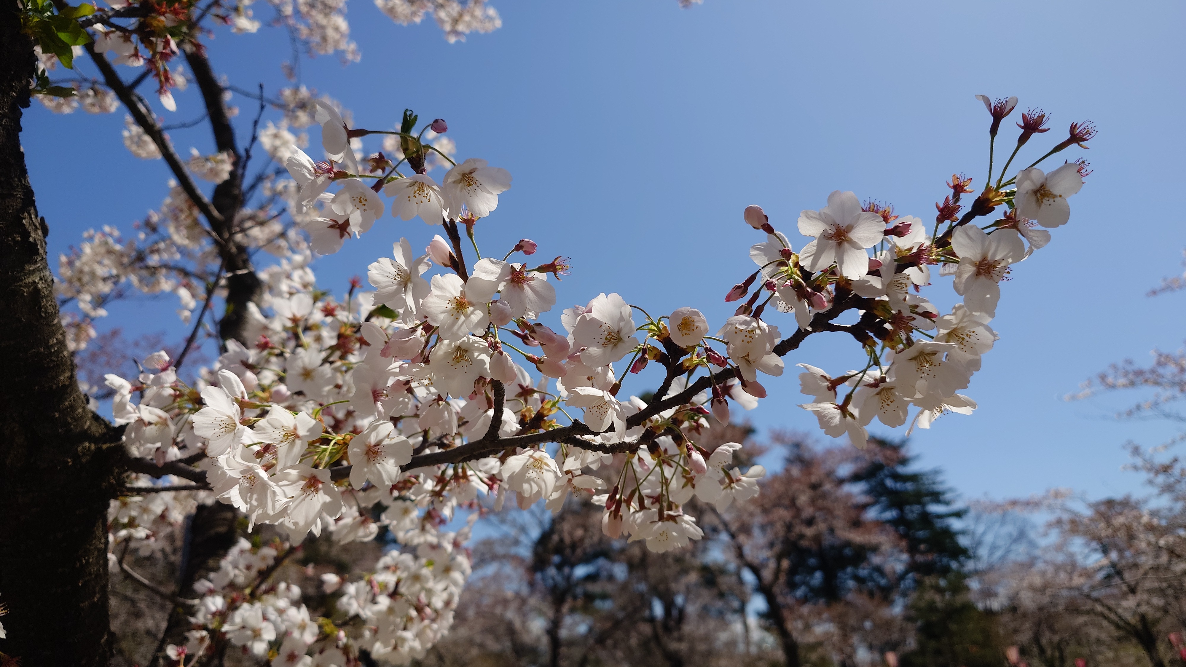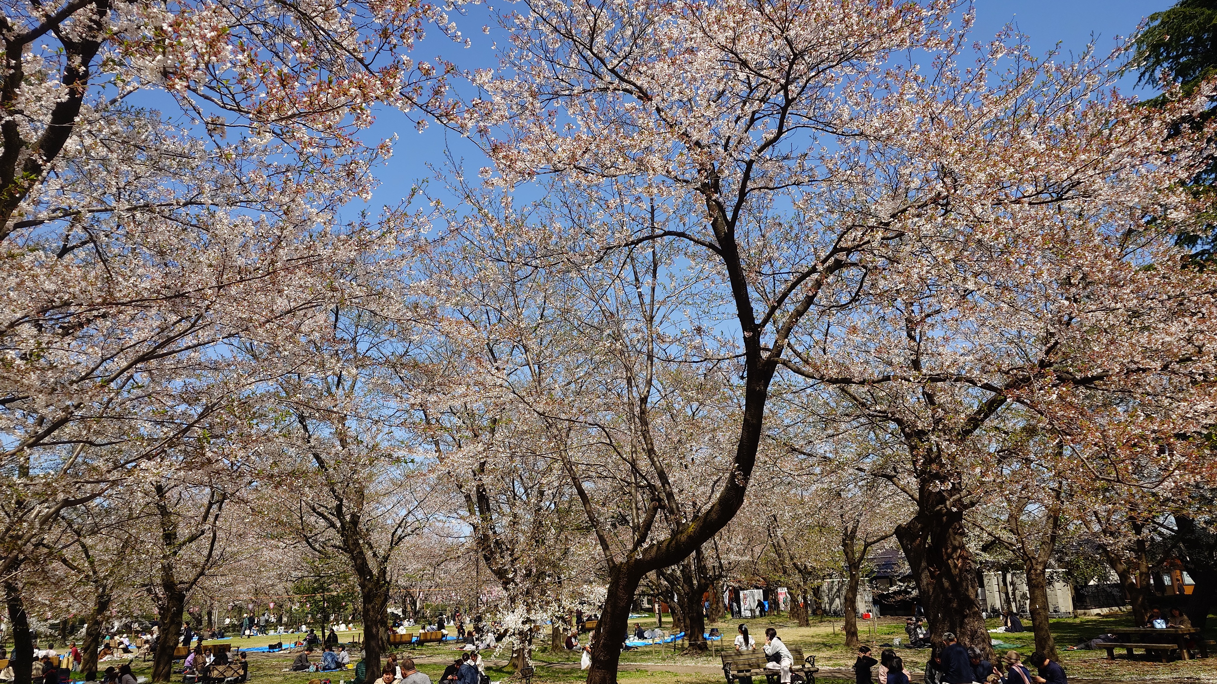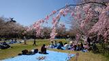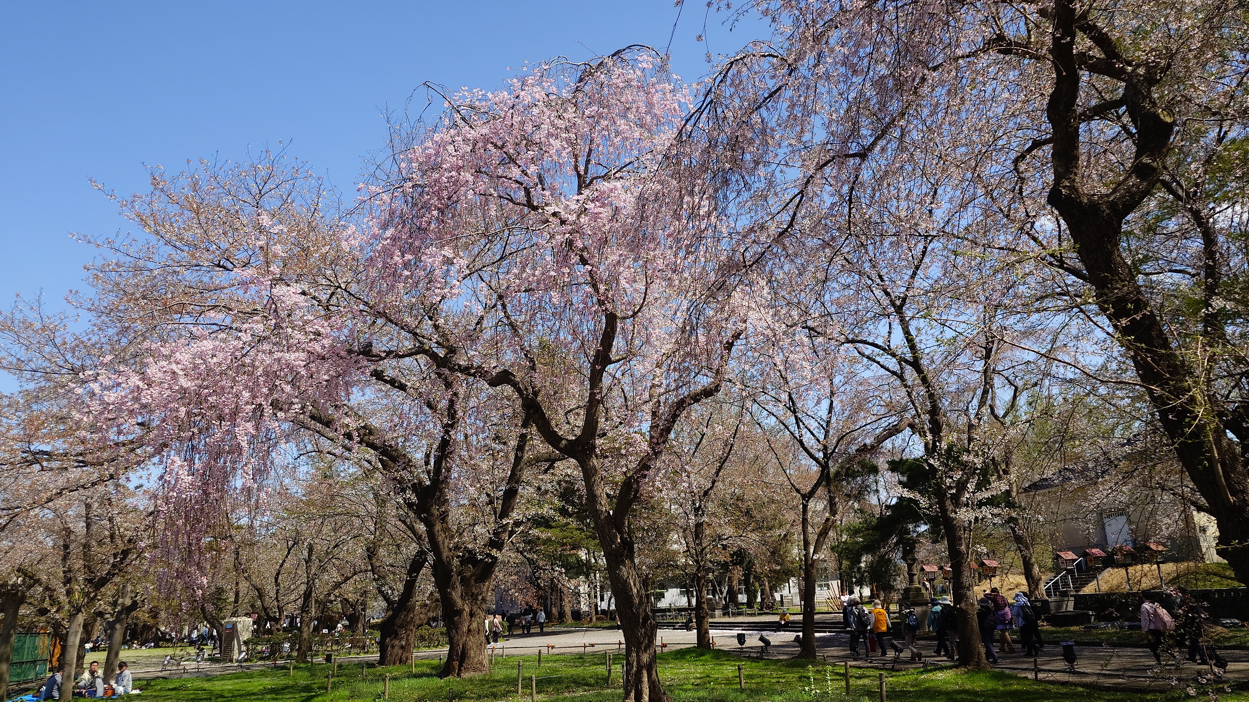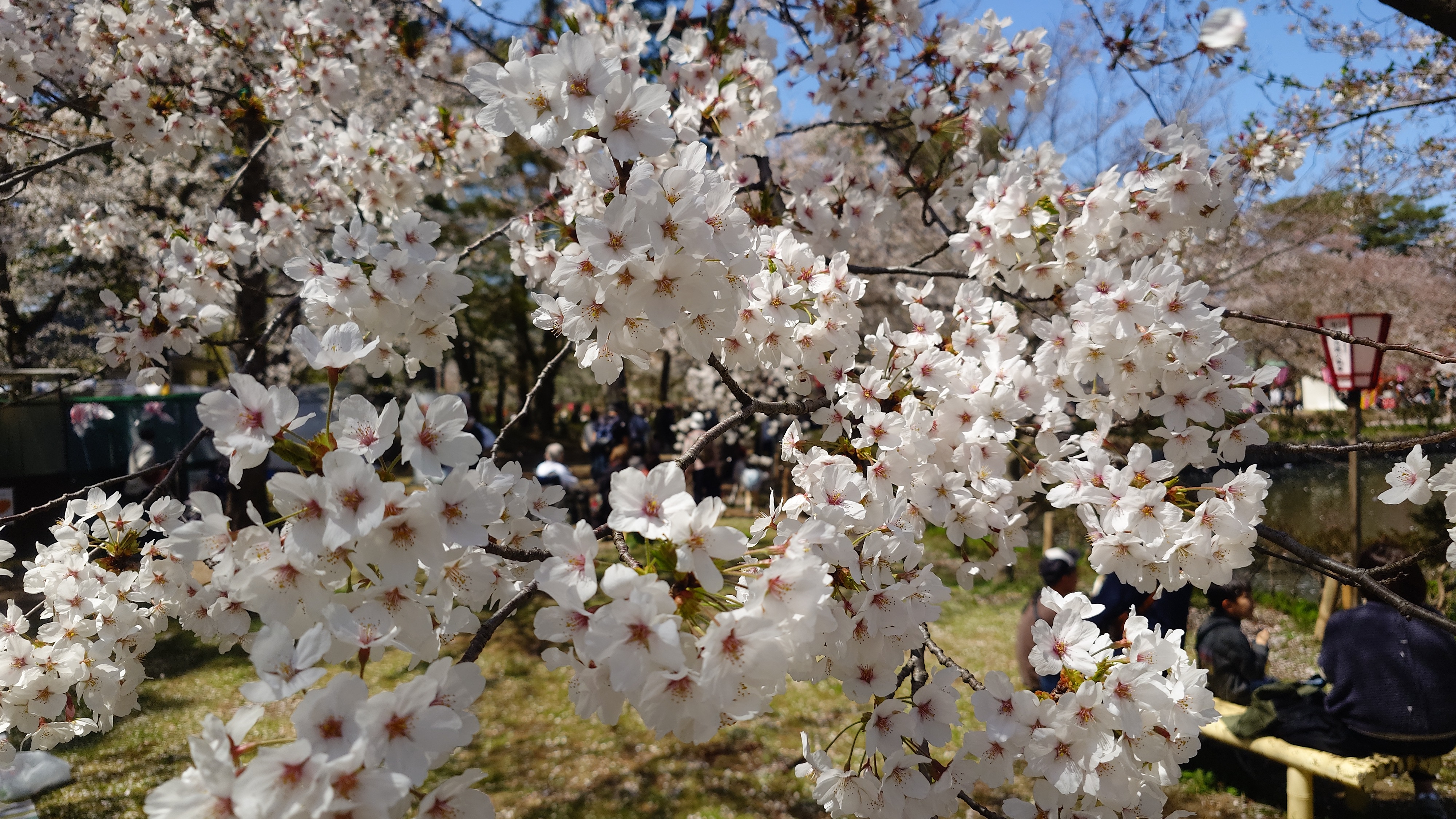 高田城址のお堀端まで来ると、意外に満開です。強風で葉桜かなと思っていましたが、明日も大丈夫そう。