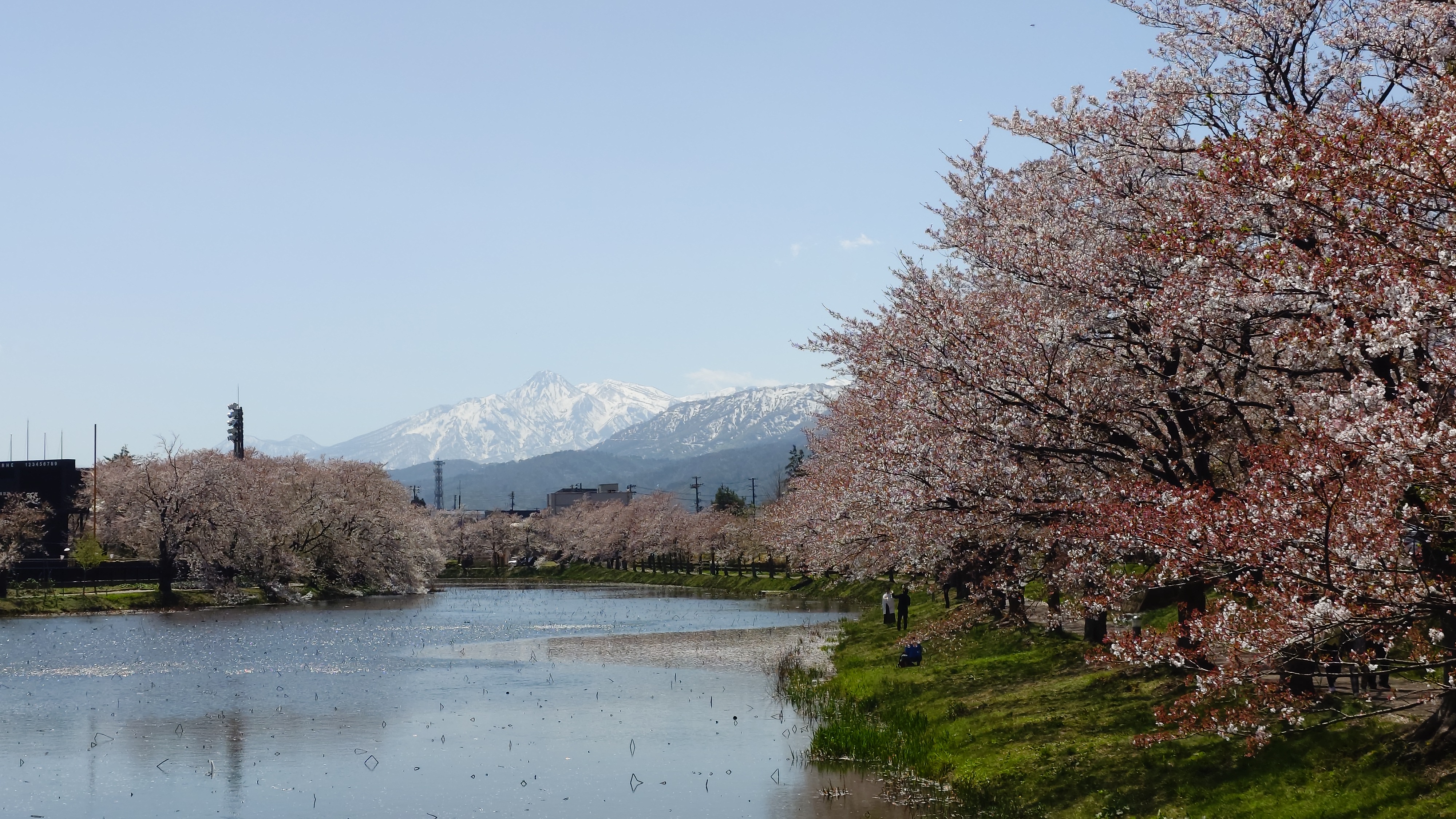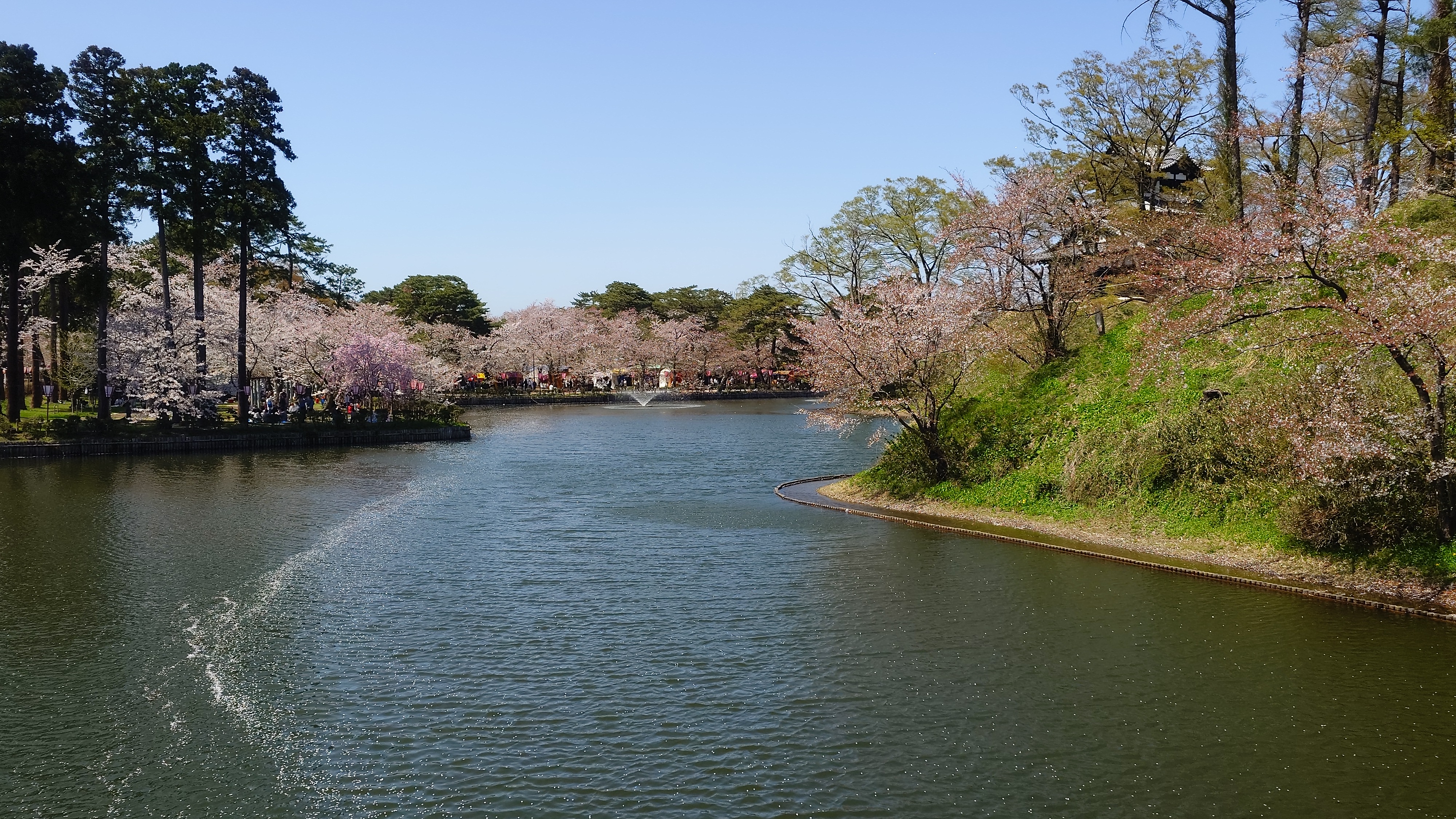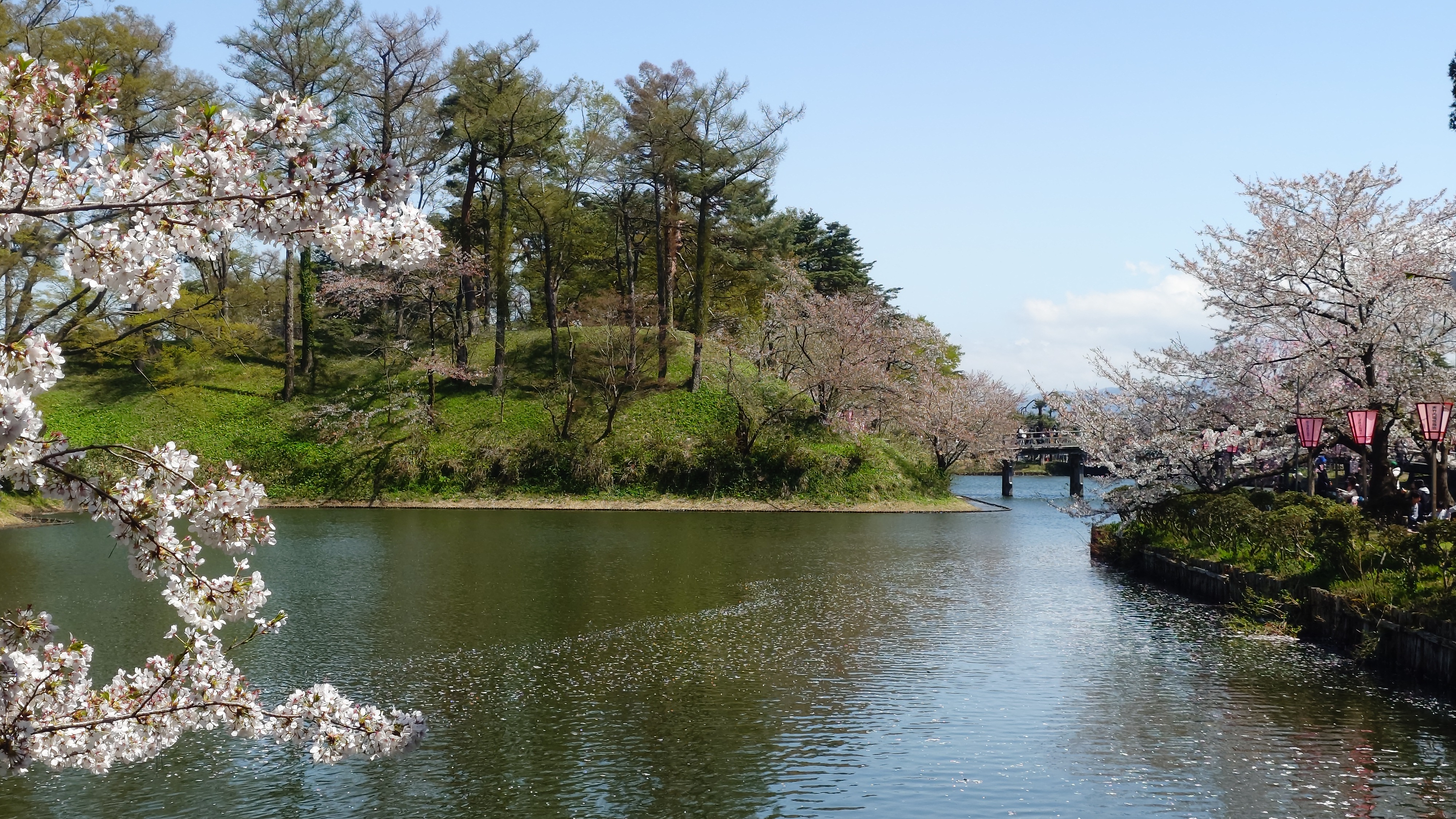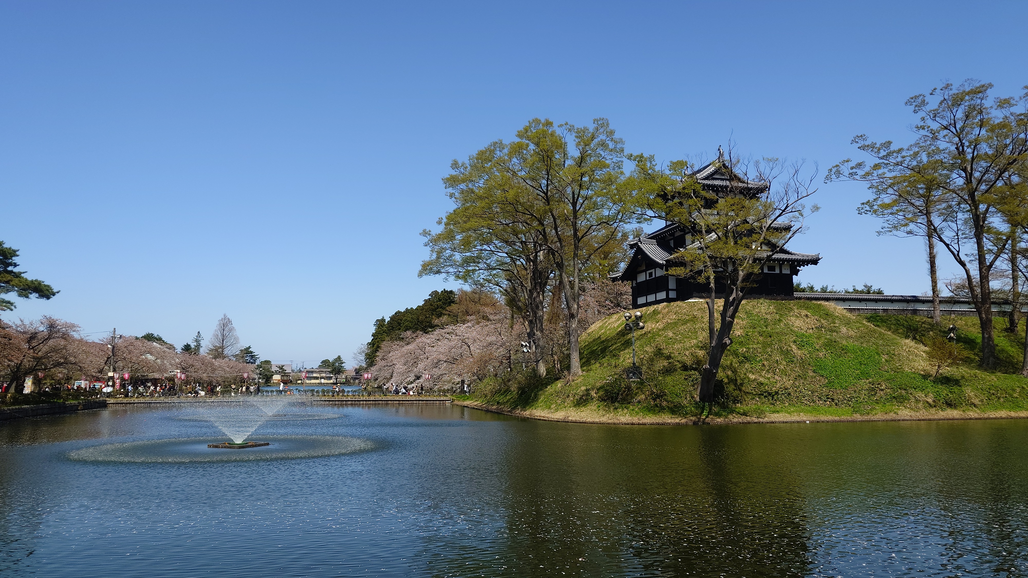 高田城址公園のお堀から三重櫓。蓮の花の季節もいいですが、やっぱり桜の時がきれいです。