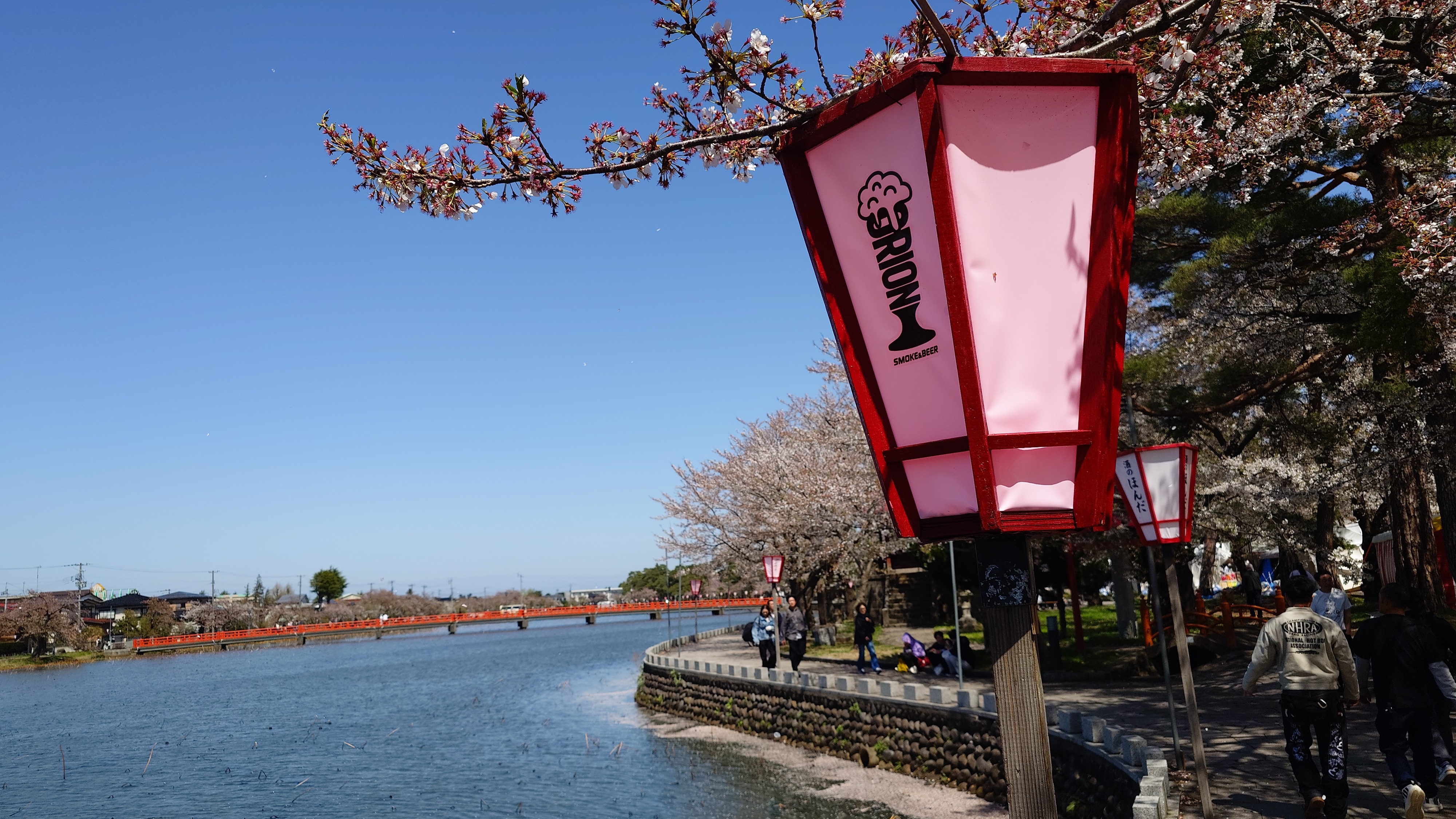 夏になると蓮池になるお堀端には、ORIONのぼんぼりもありました。
