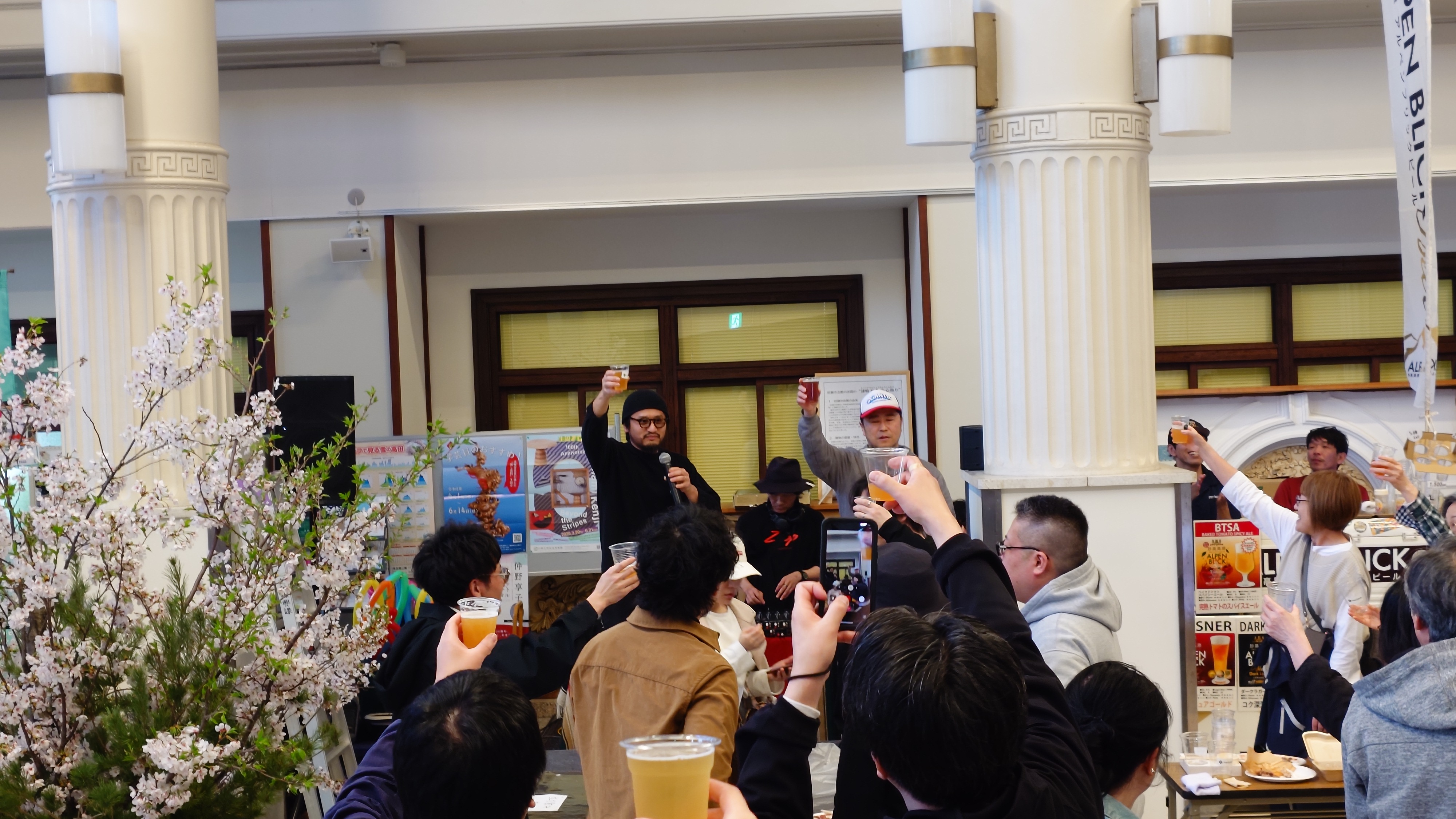 高田まちかど交流館で、毎年この時期に行われる桜とクラフトビール。花よりビールなので、先ずはご挨拶に2杯。長野福井からの参戦もあり、先ずはそちらから。