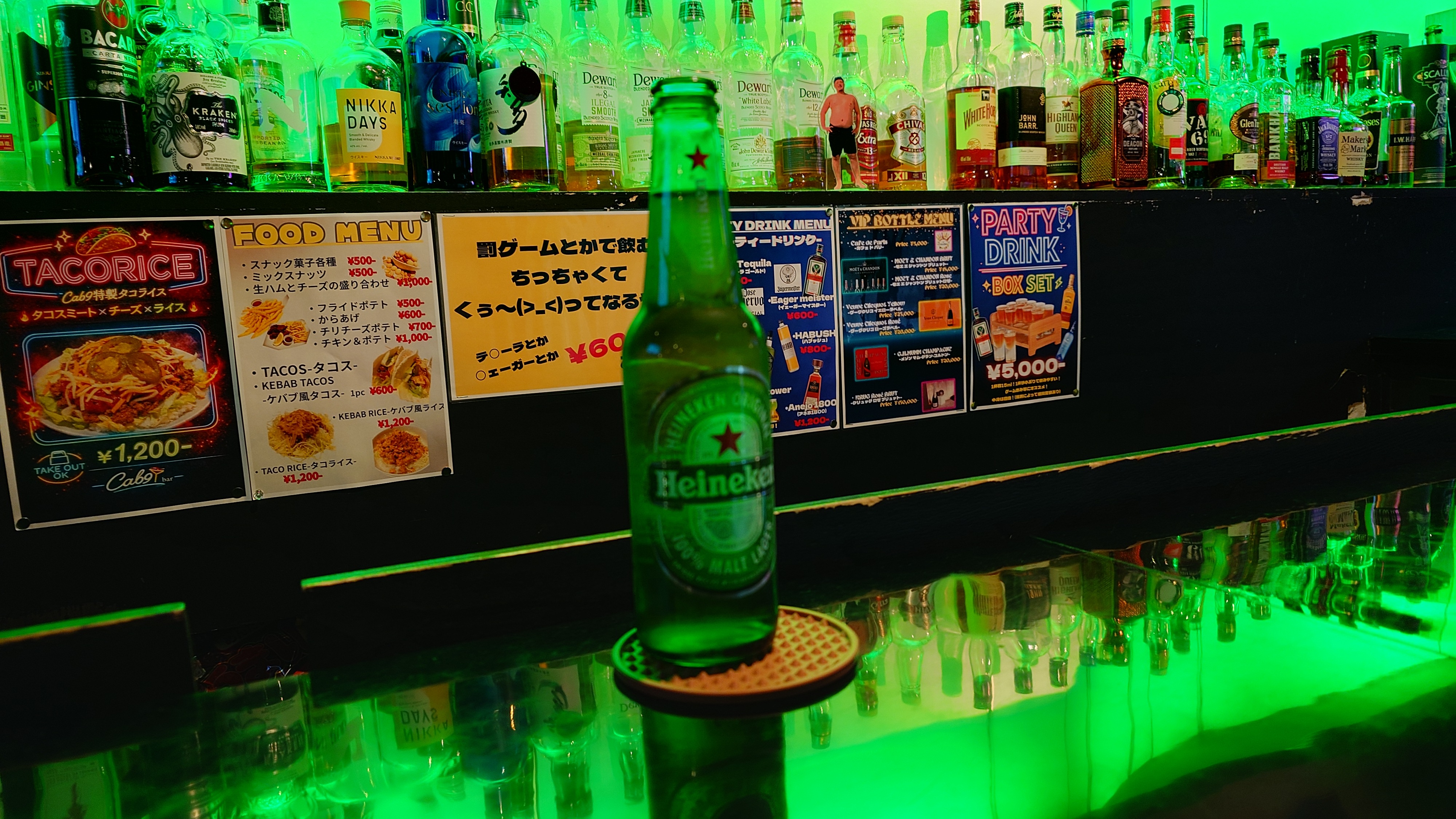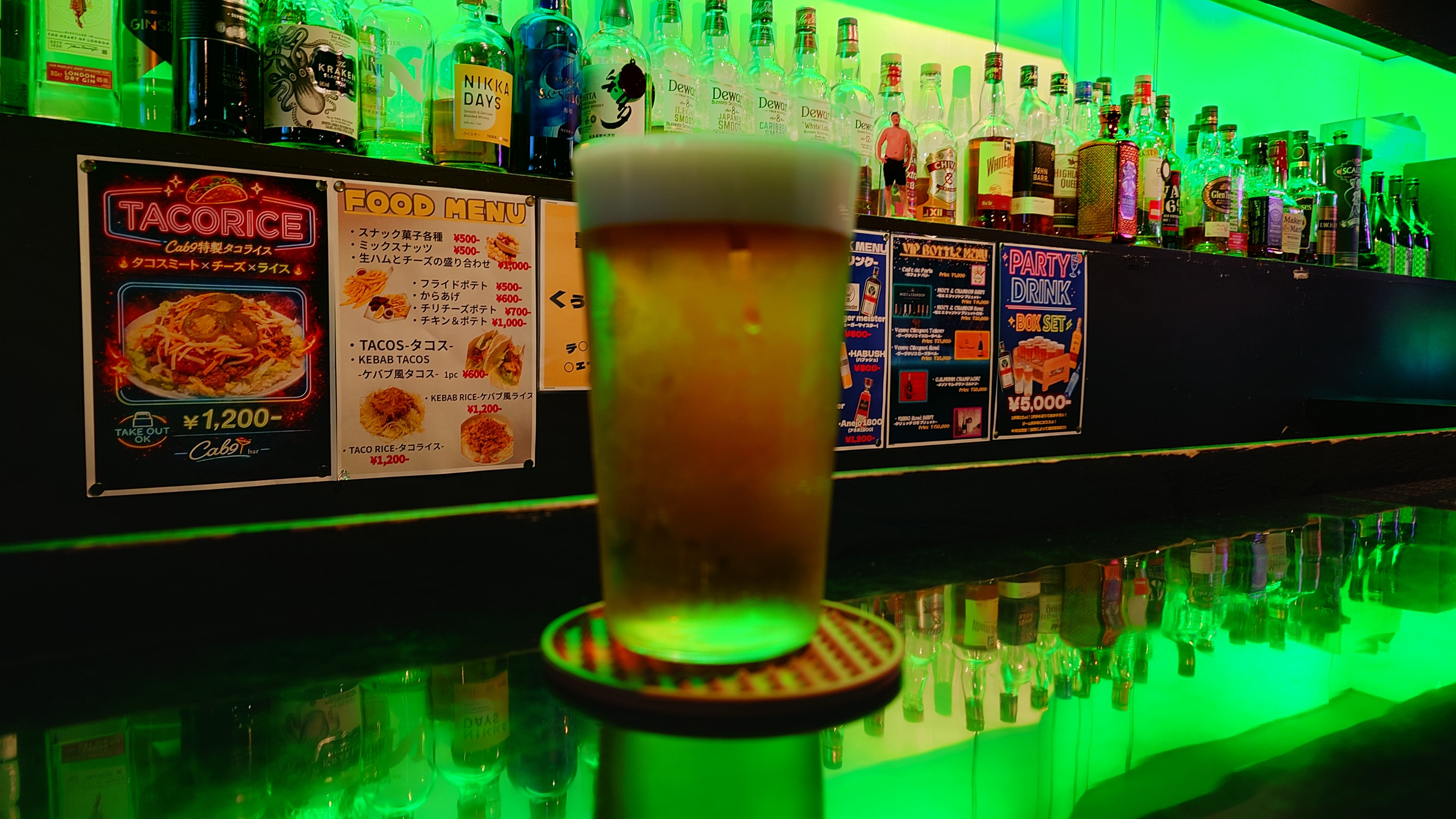 まだアウト零時には時間があるとcab9。ここでも今夜はビール。