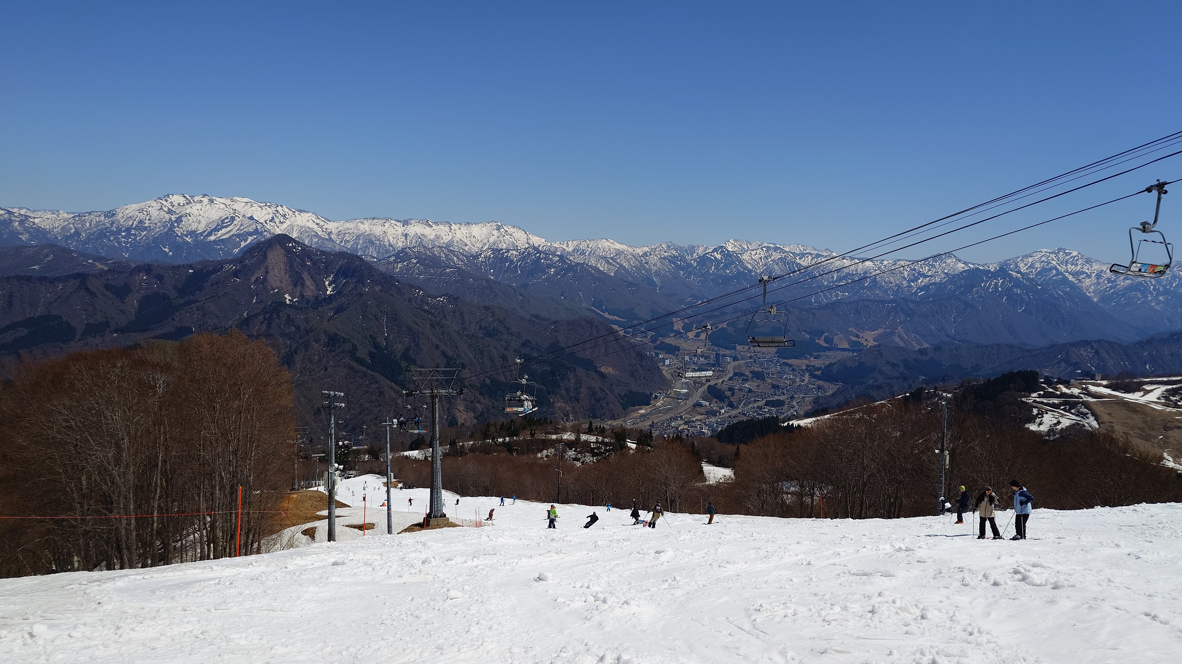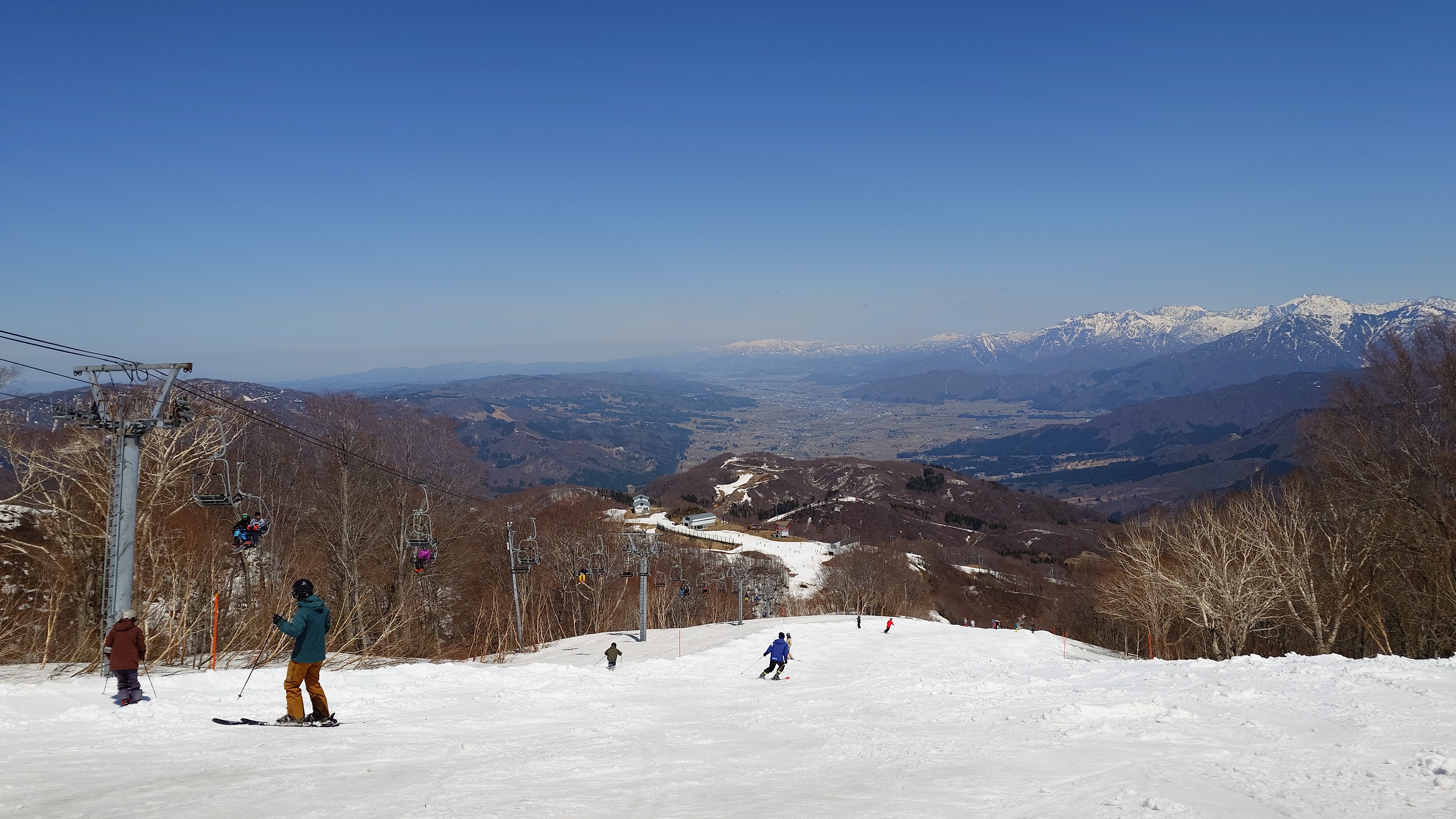 11時便でゆっくりガーラ。昨日とは一転快晴です。まだ湯沢7が8時間も残ってるので、さっさと消化しないと雪が消えてしまいそうです。