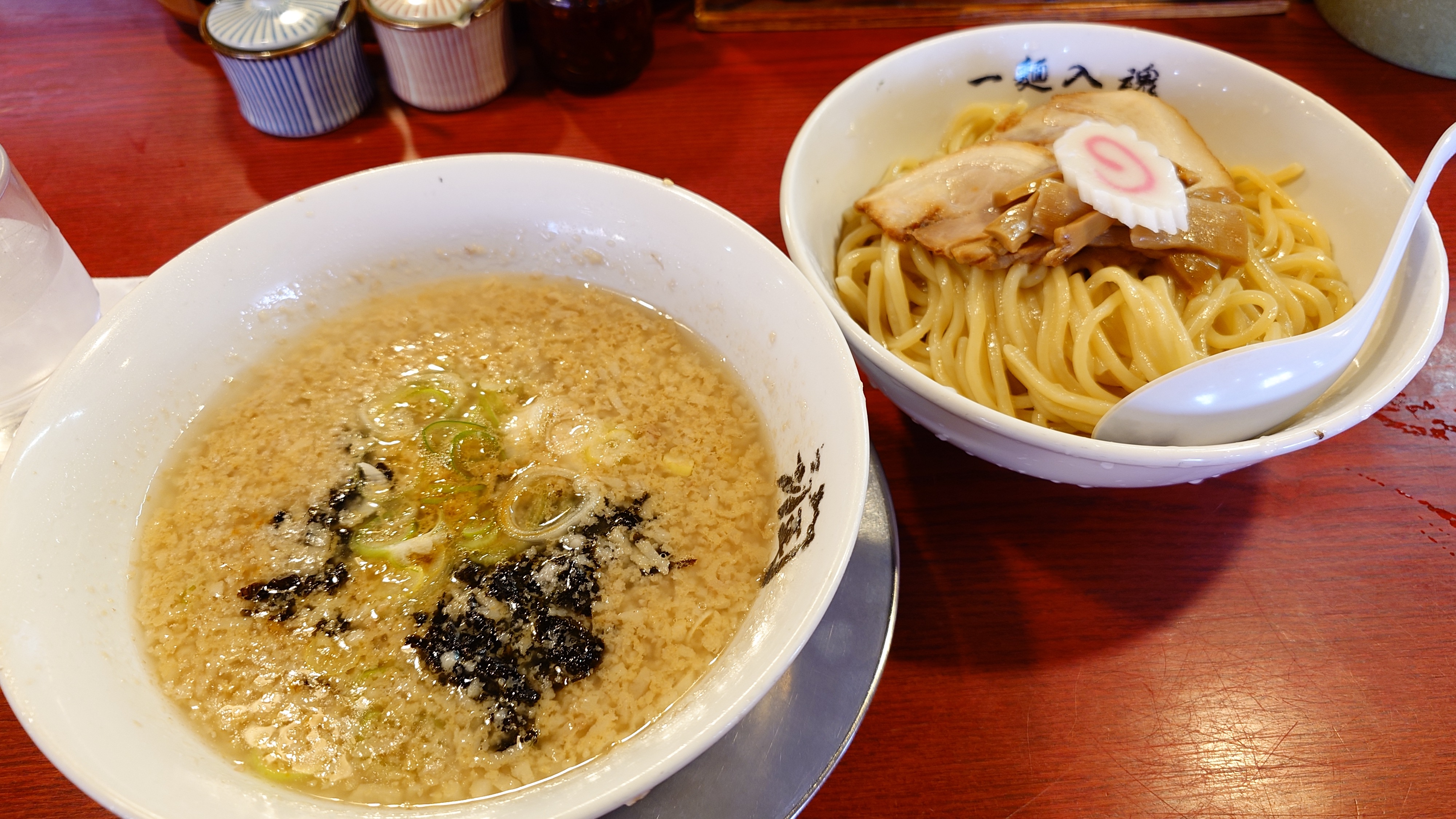 宮内駅。青島食堂の生姜醤油か、潤と土佐屋の背脂か迷いつつ、背脂つけ麺を選択し潤へ。