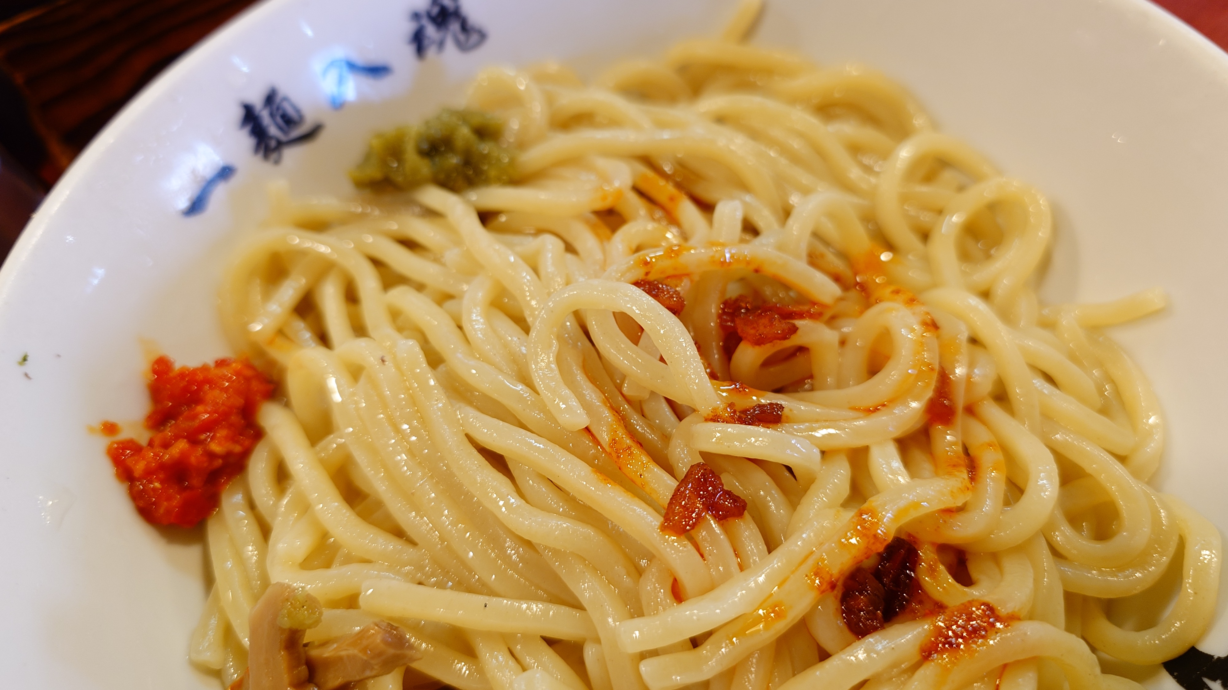 中油で給油です。太ストレート麺が迫力満点です。辣油と柚子胡椒、豆板醤を絡めてそのまま食べてまた旨いです。