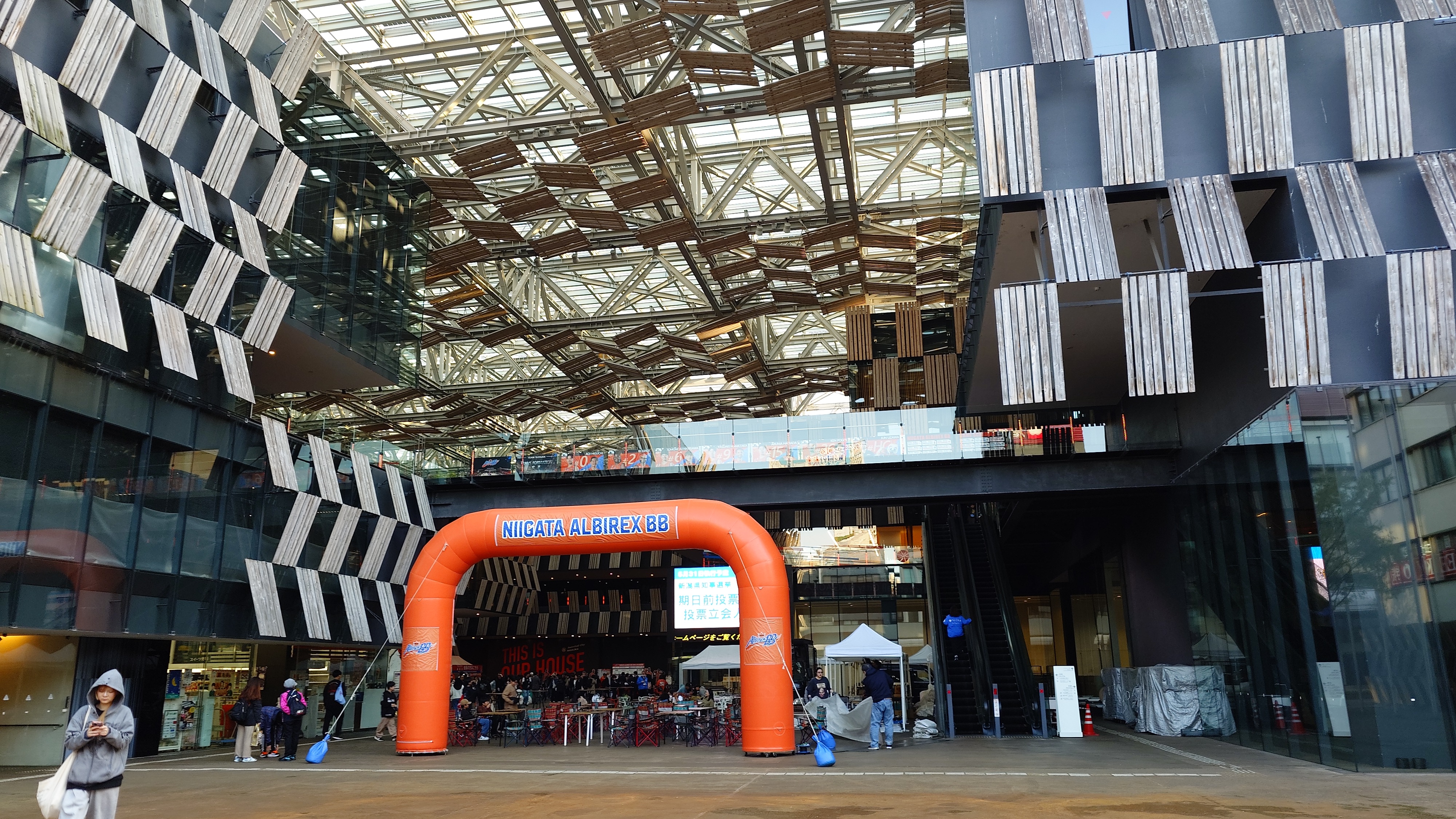 宮内から長岡へ。ちょいと買い物です。アルビBBのバスケ戦が終わったとこで、どわっと人が出て来ました。