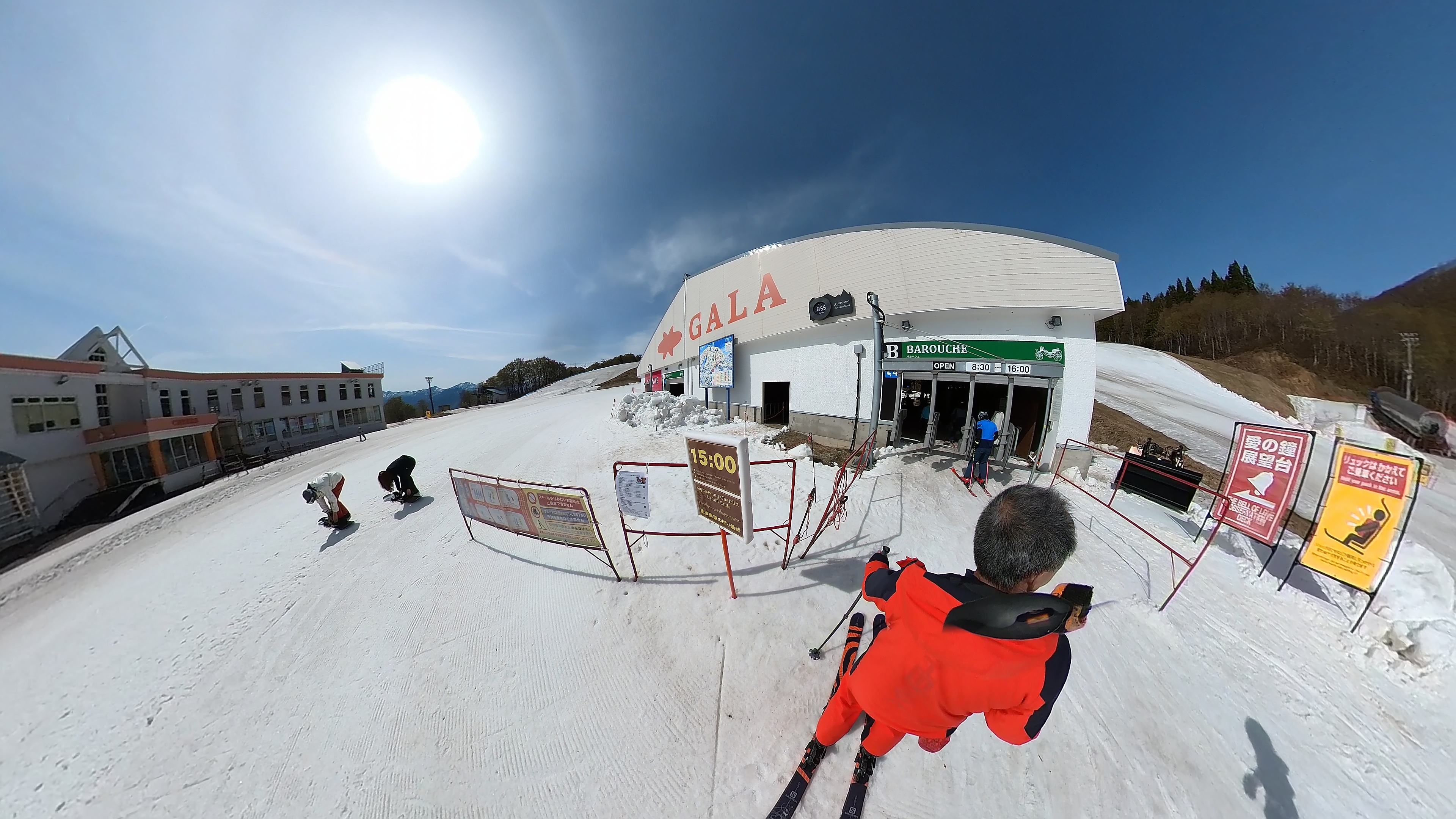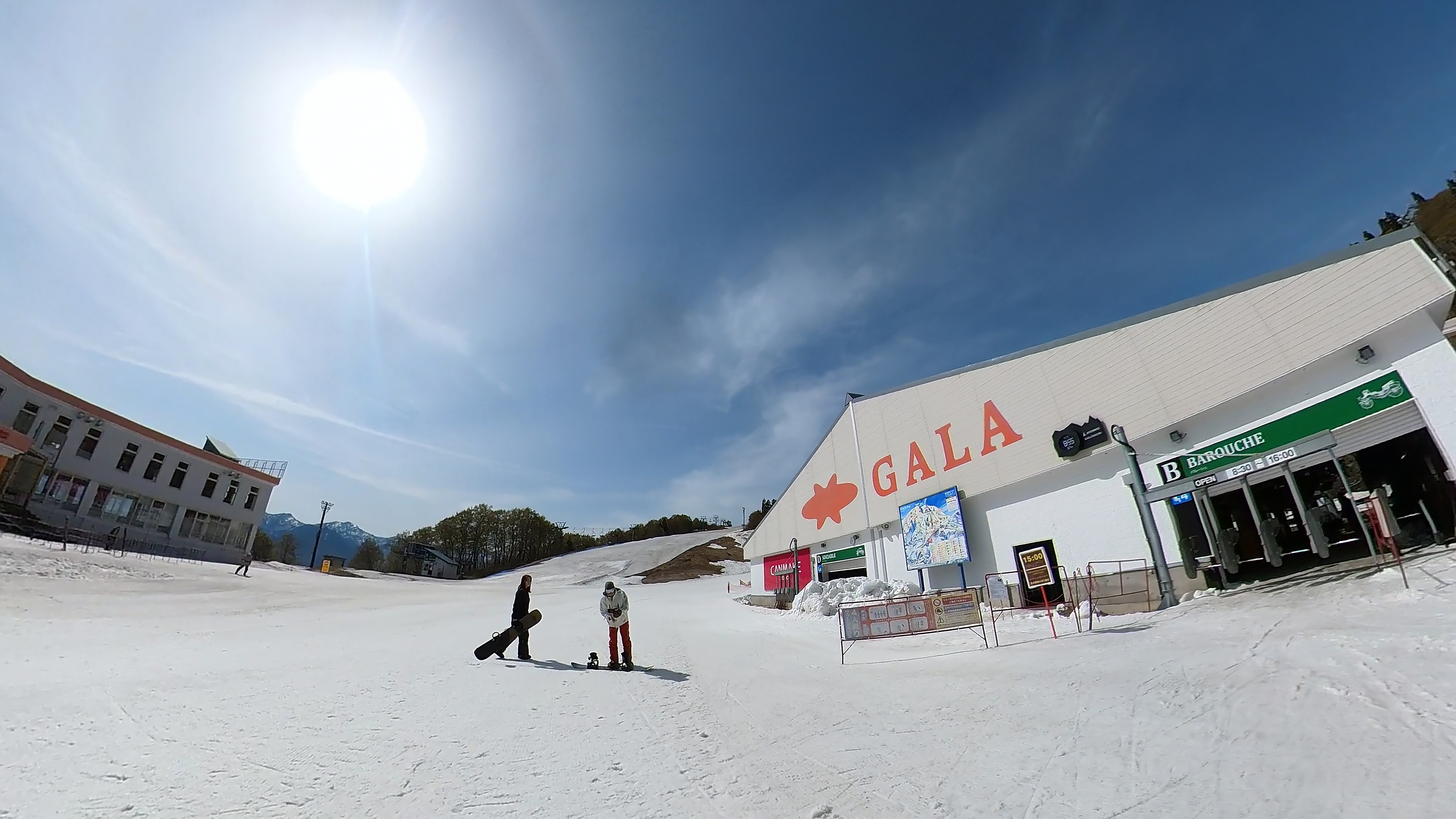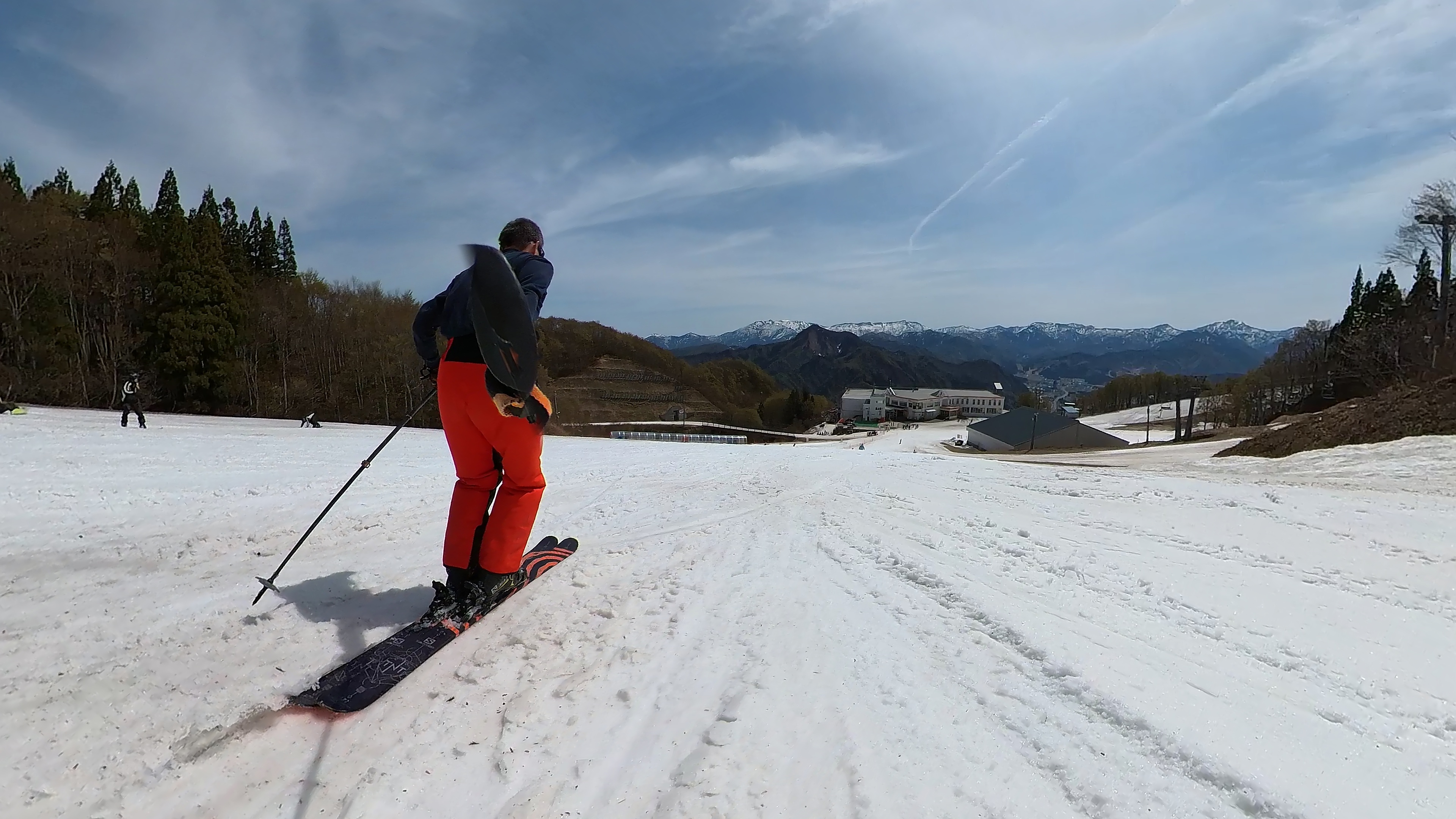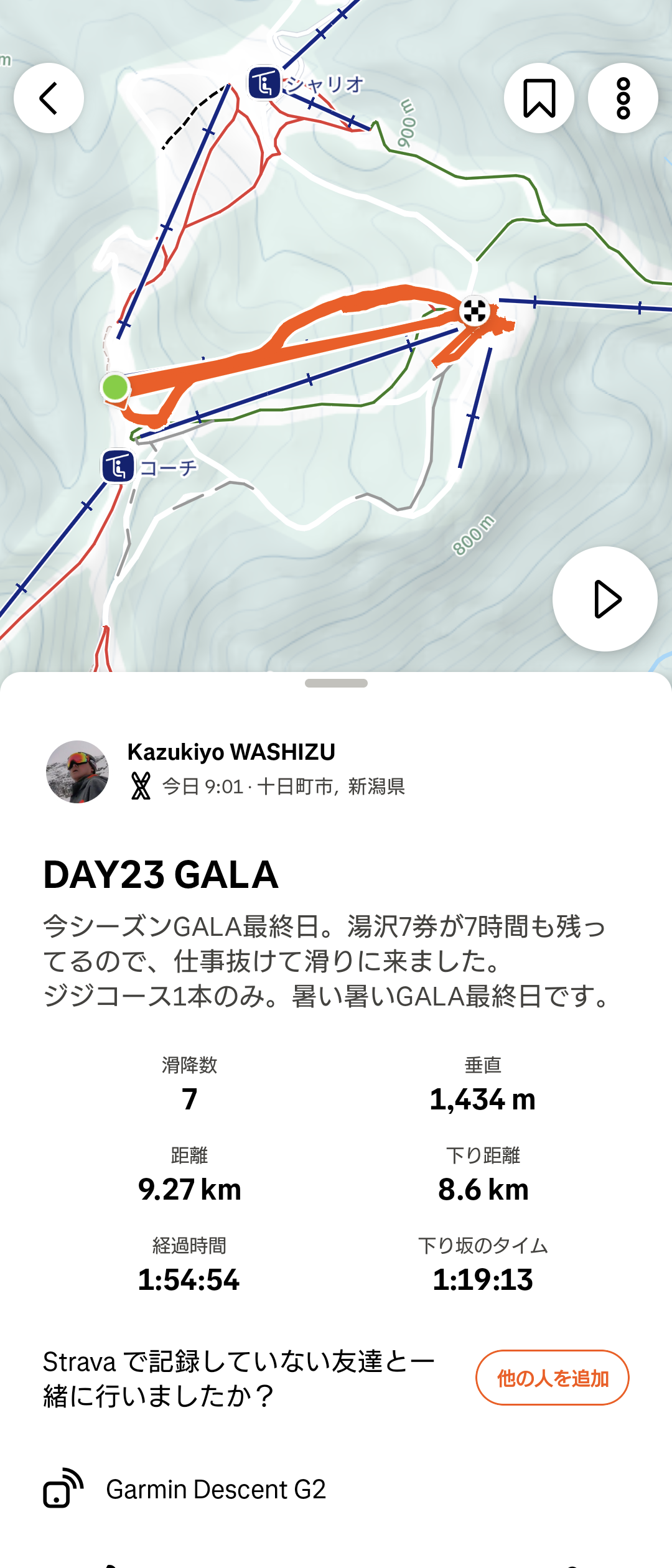 ジジをひたすらリピート。暑い暑い。所々に妖怪板つかみが出て来ました。雪も緩んで来てます。水分補給とトイレ休憩にチアーズに寄ったら、スクールに @yuka____okmr がいたです。