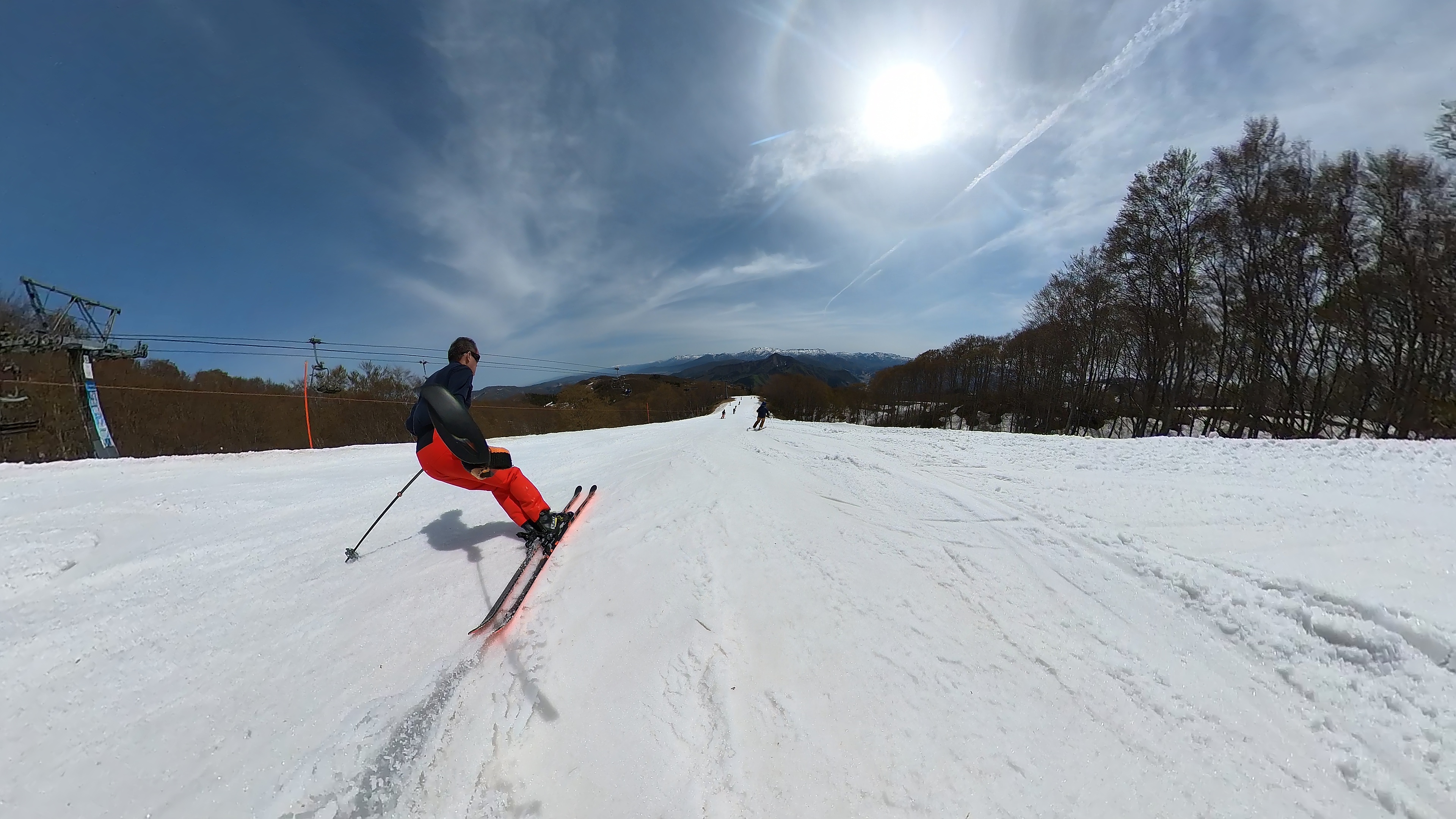 気温もぐんぐん上がって20℃。もはやゲレンデの気温ではありませんが、滑る分には暑くても気持ちのいいものです。